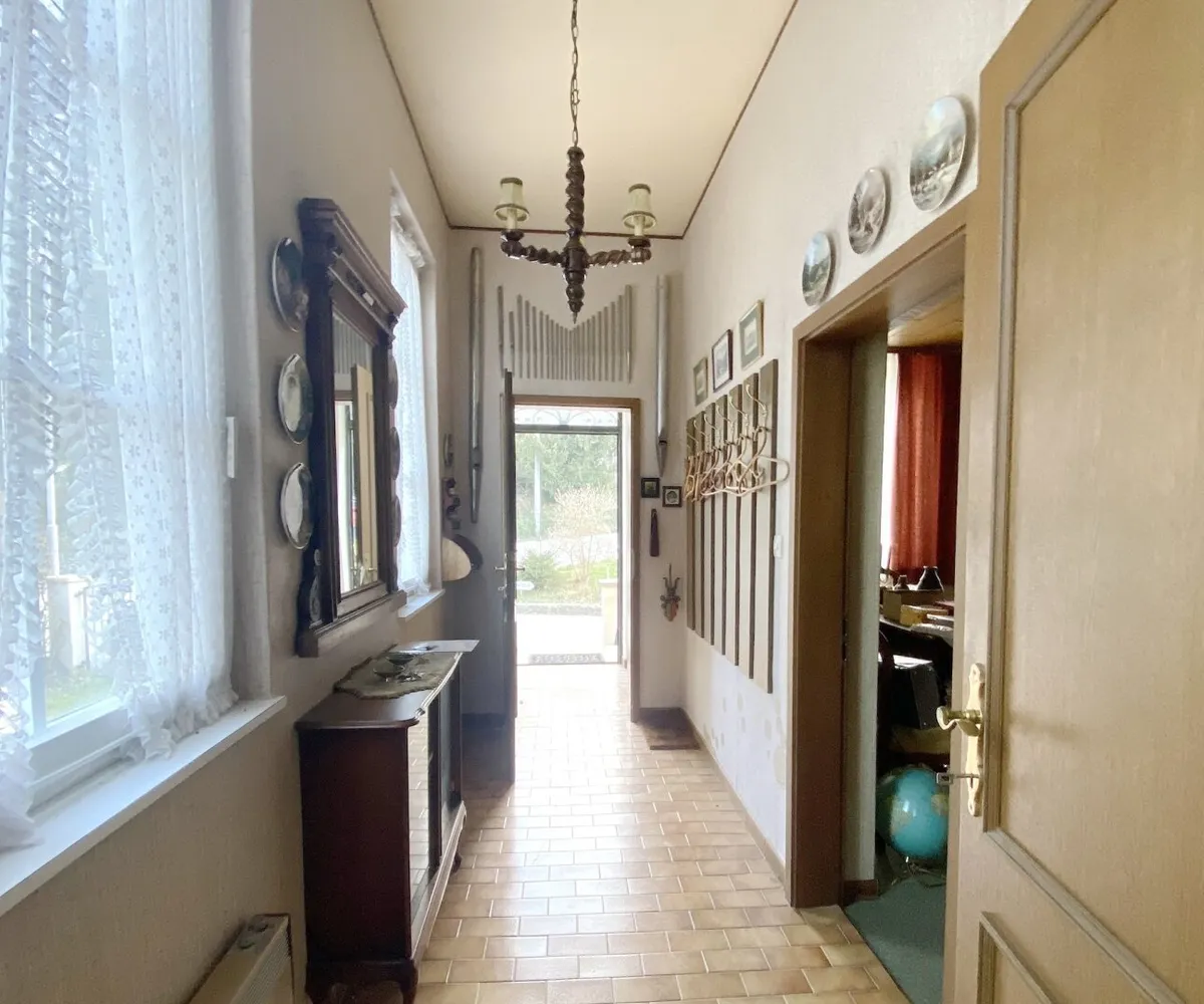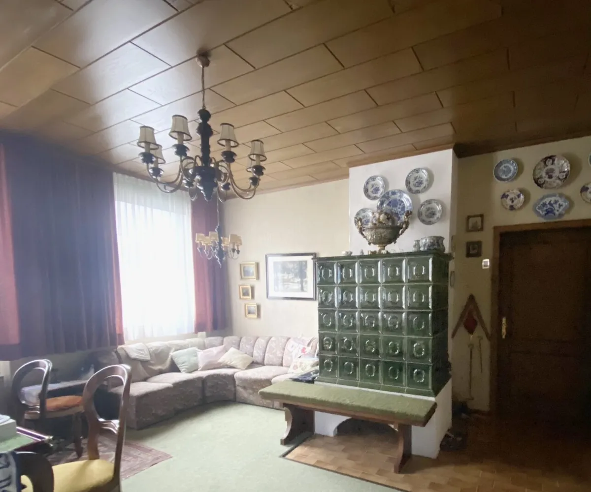 Zum Verkauf gelangt ein sehr gepflegtes und solides Einfamilienhaus mit 5 Zimmern und ca. 154 qm Wohnfläche auf 2 Ebenen mit einem ca. 74 qm großen Keller und mit einem ca. 541 qm großen Garten. Das Haus wird mit jeweils einem Kachelofen in jeder Ebene und / oder einer Elektroheizung beheizt. Es gliedert sich in: