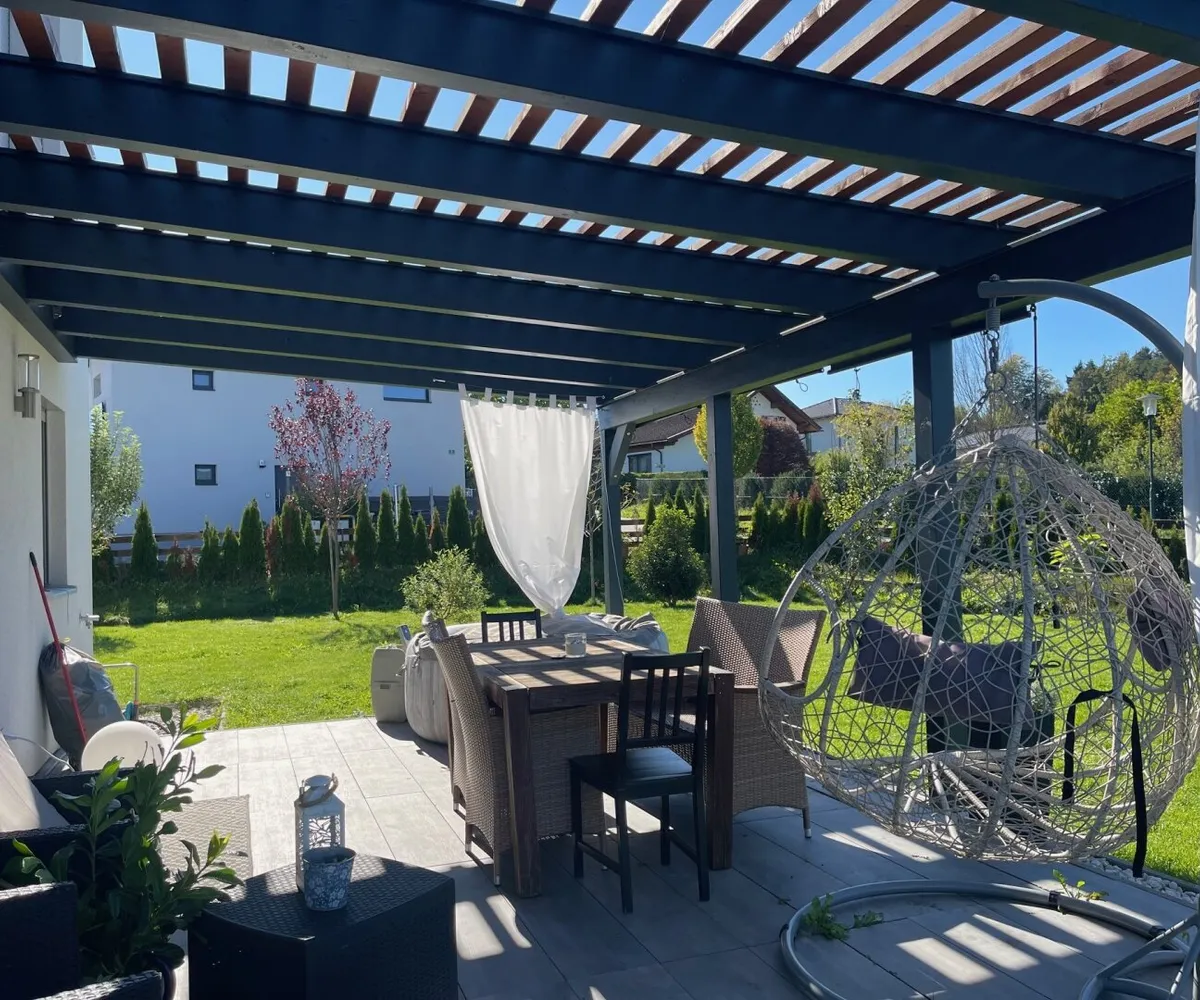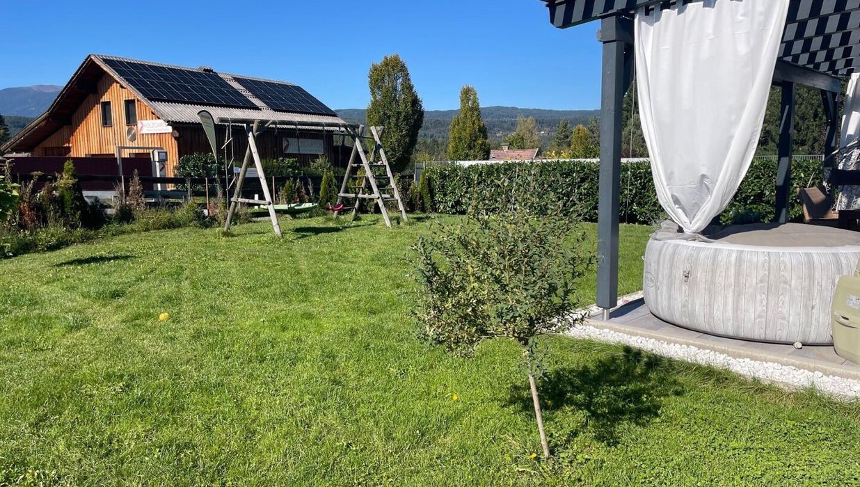 Um das Haus befindet sich ein schön angelegter Garten mit verschiedensten Pflanzen und Bäumen. Ein Gartenhäuschen mit einer gemütlichen Aussichtsterrasse dient im Sommer als Wohnzimmer im Freien und zum Grillen.