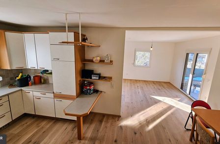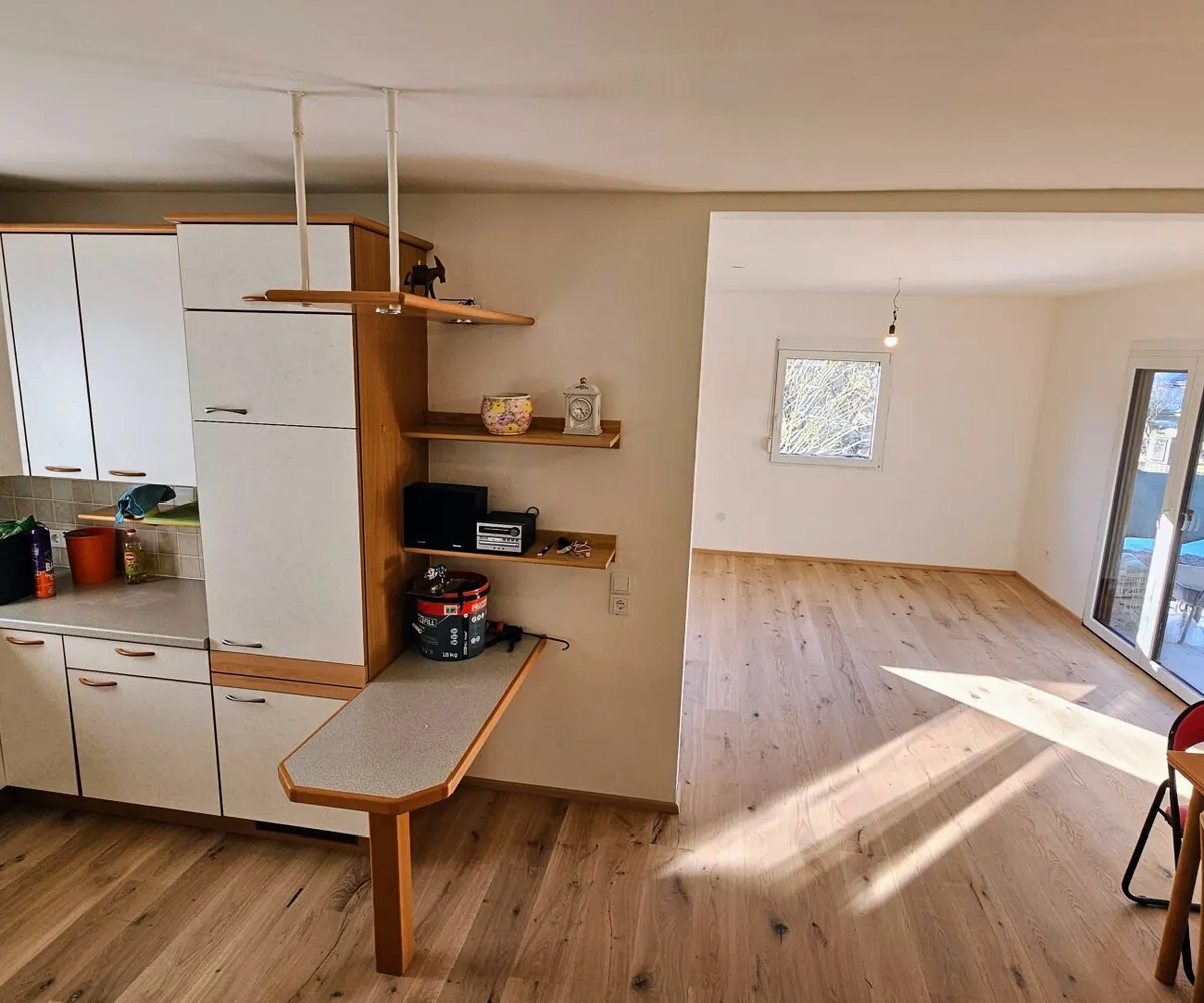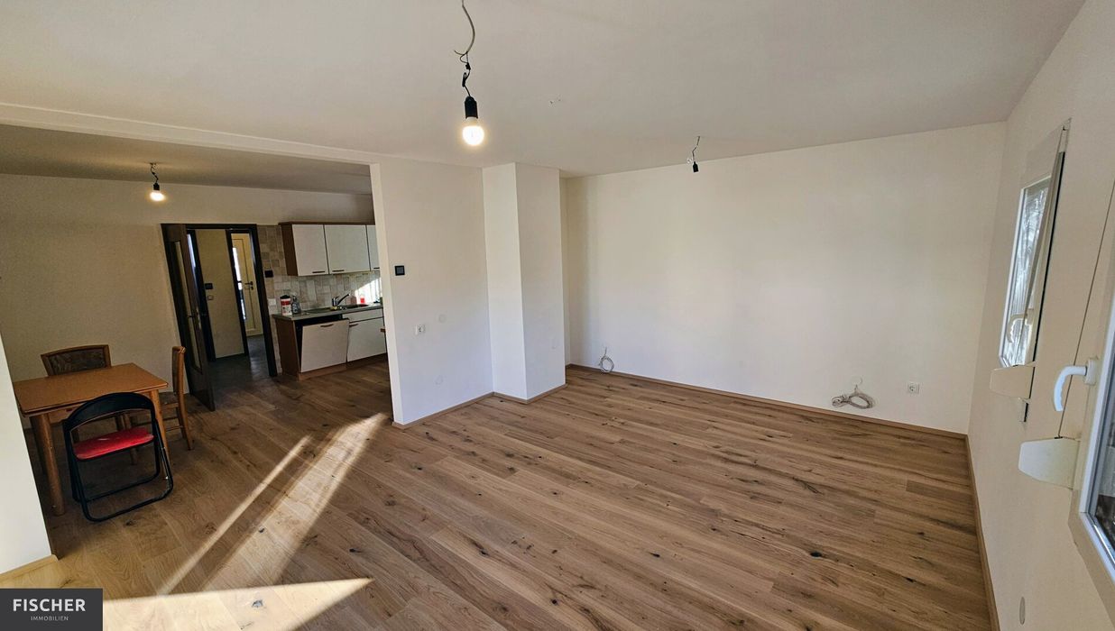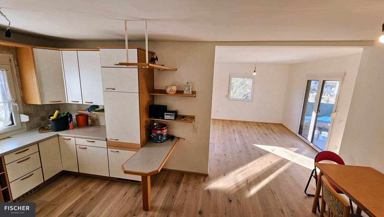 Im Innenbereich präsentiert sich die Immobilie in modernisiertem Zustand mit praktischer 3-Zimmer-Aufteilung: Hochwertige, schöne Holzböden verleihen den Räumen eine gemütliche und einladende Atmosphäre. Das stilvoll gestaltete Badezimmer punktet mit einer modernen Glasdusche und sorgt für einen angenehmen Wohnkomfort. Die Küche samt Einbauküche inkl. Geräten ist offen in Richtung Wohnraum, wo u.a. auch ein Kaminanschluss für einen Zusatzofen zur Verfügung steht.