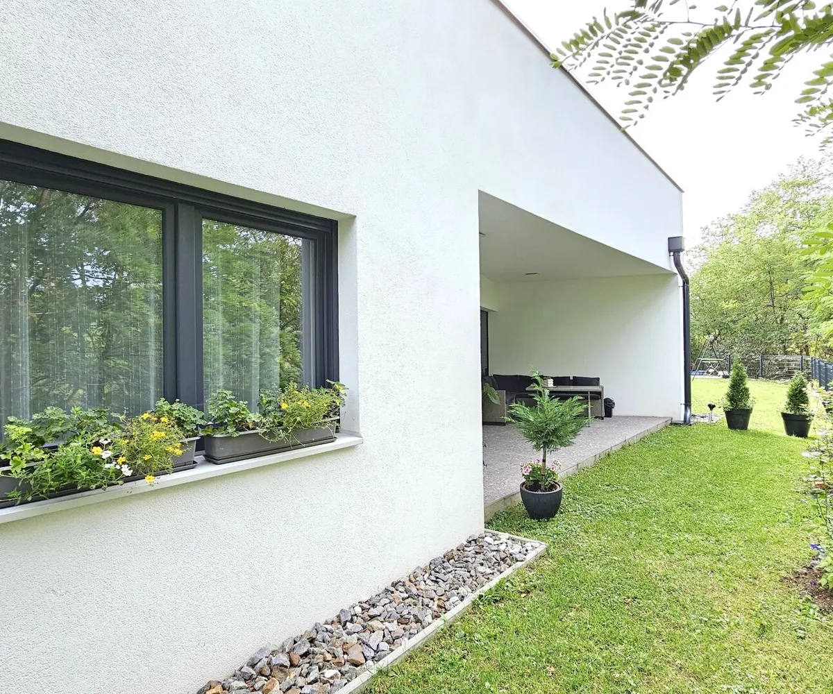 Das Haus ist in einem TOP Zustand und wurde mit hochwertigen Materialien erbaut . Die moderne Architektur und die stilvolle Einrichtung verleihen dem Haus ein elegantes und zeitloses Erscheinungsbild. Durch die großen Fensterfronten fällt viel natürliches Licht in die Räume und schafft eine angenehme Atmosphäre.