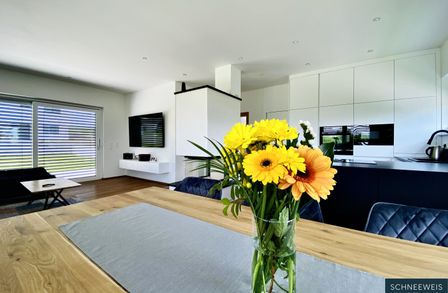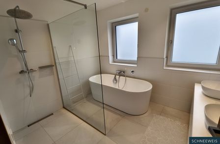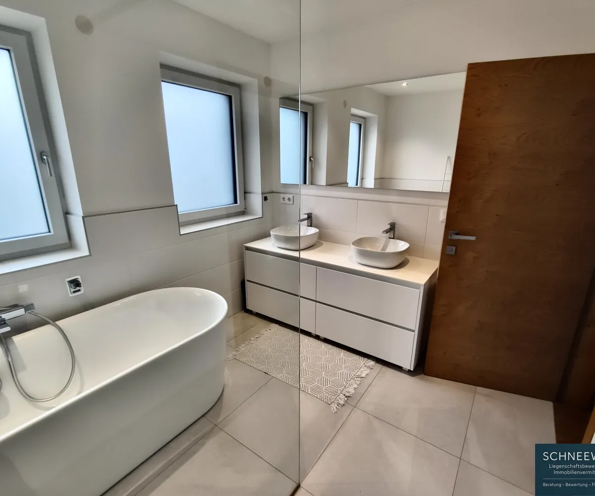 Das neuwertige und sehr hochwertige Einfamilienhaus besticht bereits auf der ersten Wohnebene durch einen äußerst durchdachten Grundriss. Hier steht Ihnen unter anderem ein Gästezimmer mit zusätzlichem Badezimmer zur Verfügung. Gerade im fortgeschrittenen Alter lässt sich die Liegenschaft dadurch auch weiterhin unkompliziert bewohnen.