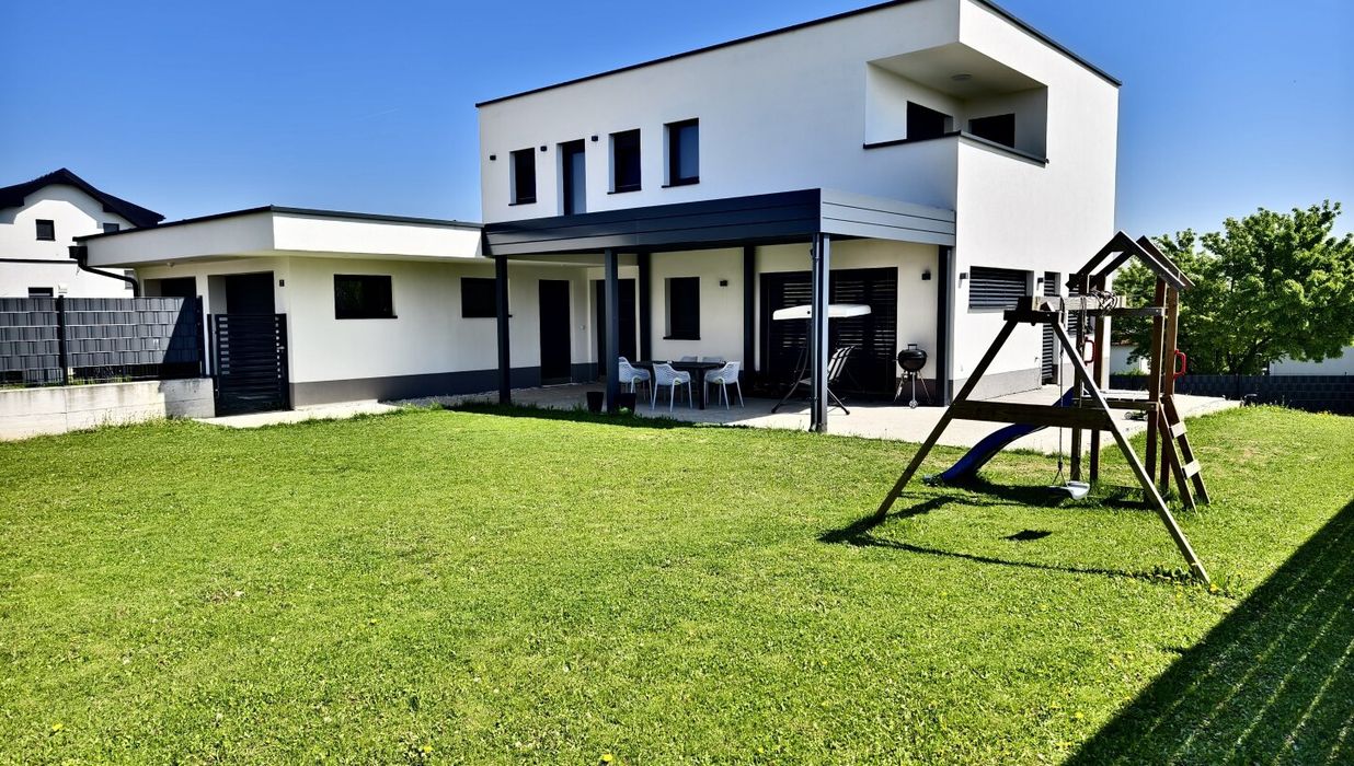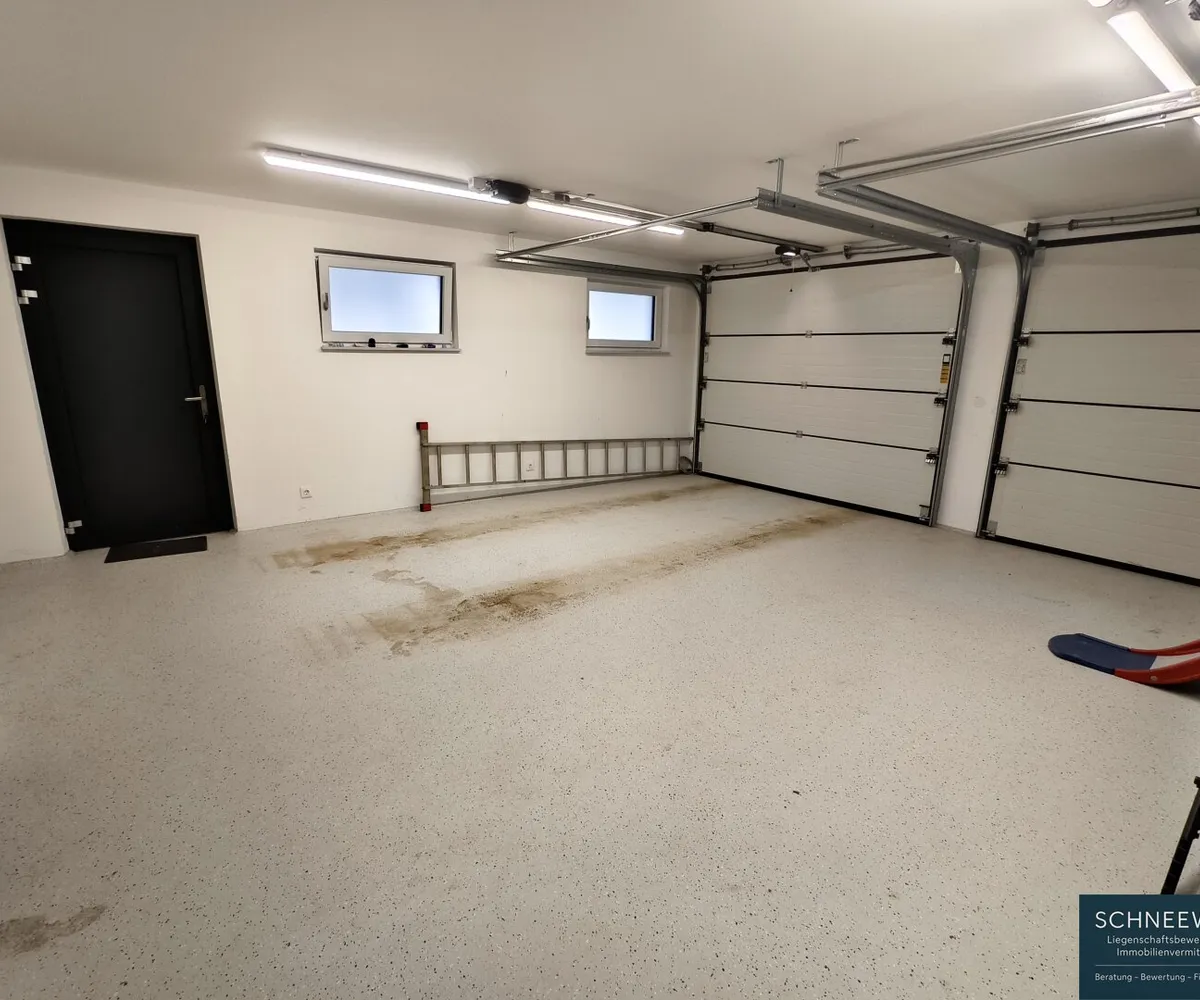 Der Außenbereich (Zufahrt-Pflasterung, Terrassenbeläge etc.) erfordert noch eine Fertigstellung und ist daher weiterhin individuell planbar. Ob Sie das Grundstück mit diversen Bepflanzungen und Baumbestand optimieren möchten oder beispielsweise um einen Swimmingpool ergänzen – hier stehen Ihnen vielfältige Gestaltungsmöglichkeiten offen. Eine großzügige Doppelgarage sowie ausreichend KFZ Abstellplätze vor der Liegenschaft (für rund vier PKW) gewährleisten eine komfortable Parksituation.