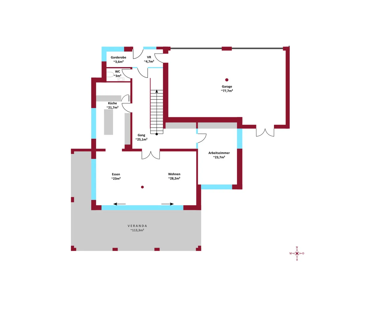 Die Wohnfläche mit ca. 446 m², verteilt auf drei Ebenen, bietet viel Platz für Familie, Gäste und kreative Ideen: