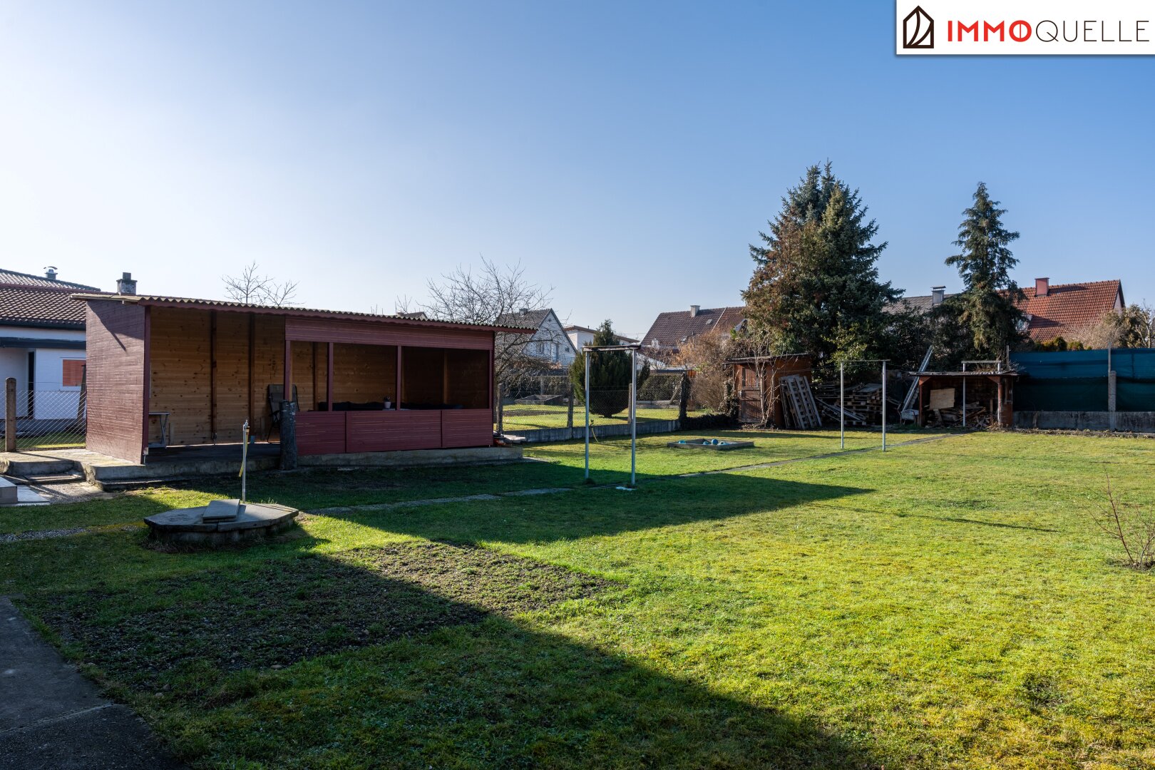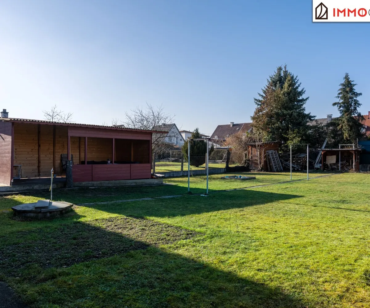 Der Garten selbst umfasst rund 509 m² und bietet viel Potenzial zur individuellen Gestaltung. Eine Pergola lädt dazu ein, entspannte Stunden im Freien zu verbringen und den Blick ins Grüne zu genießen. Dank der westlichen Ausrichtung können Sie hier wunderschöne Sonnenuntergänge genießen und den Tag in angenehmer Abendstimmung ausklingen lassen. Ob Spielbereich für Kinder, Gemüsegarten oder grüne Oase - dieser Außenbereich eröffnet zahlreiche Möglichkeiten.