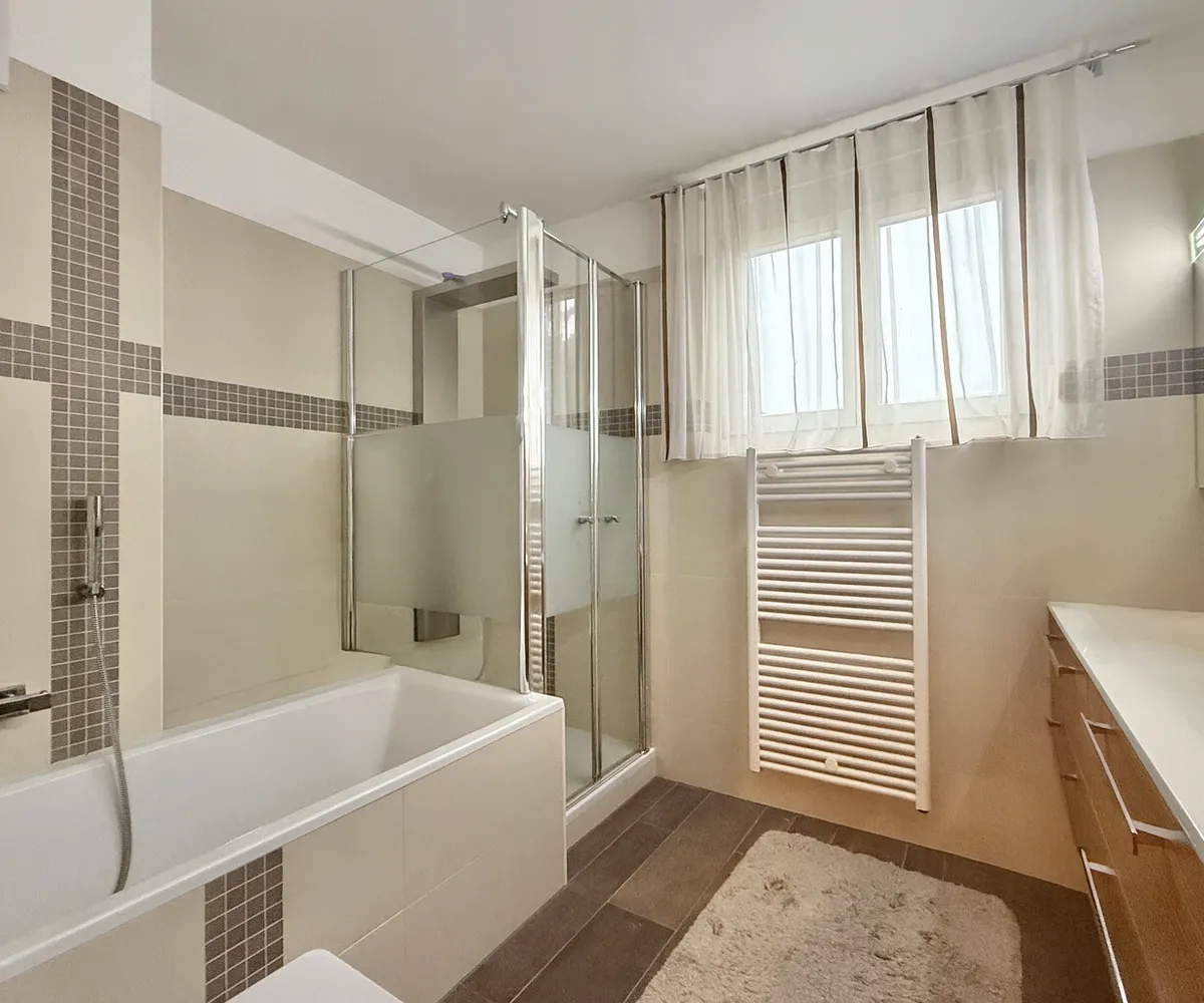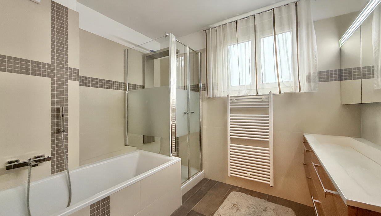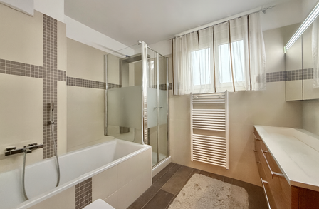 Bad mit Dusche und Wanne.
