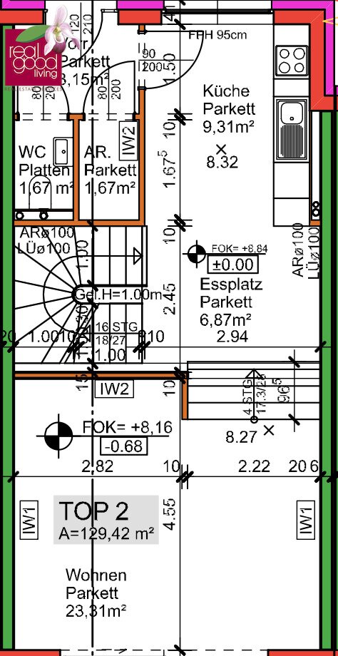 Die angeführten Flächen ergeben rund 154,85 m² Wohnnutzfläche ohne Kellergeschoss , ca. 61,20 m² Kellergeschoss sowie insgesamt ca. 29,03 m² Balkon- und Terrassenflächen .