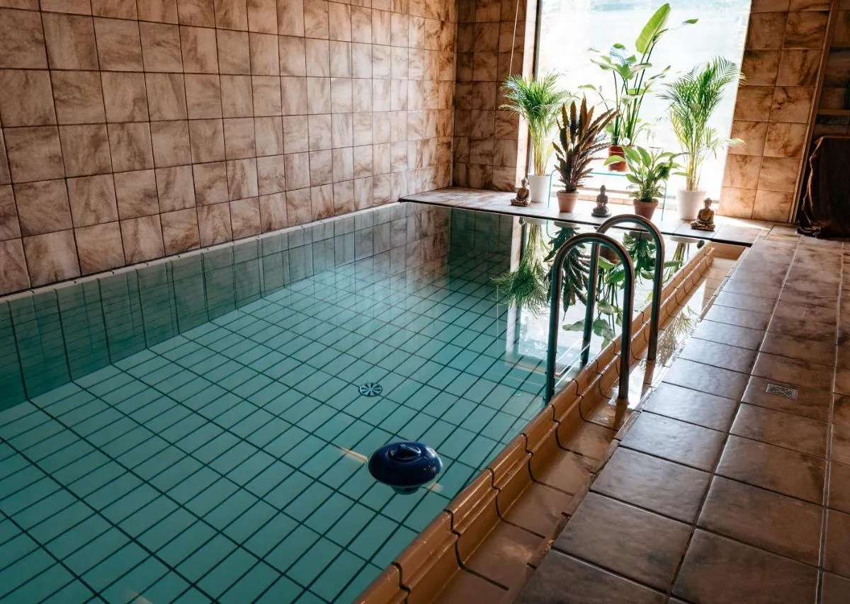Im Untergeschoss befindet sich die Haustechnik, ein Atomschutzbunker, Hobbyraum, Stüberl, ein Indoor-Pool, Sauna und der Ausgang auf die Terrasse und den Garten.