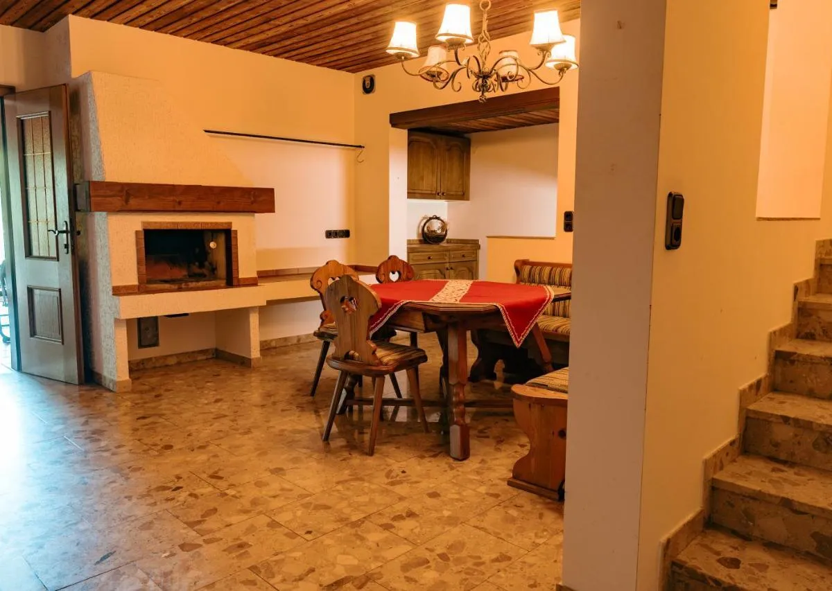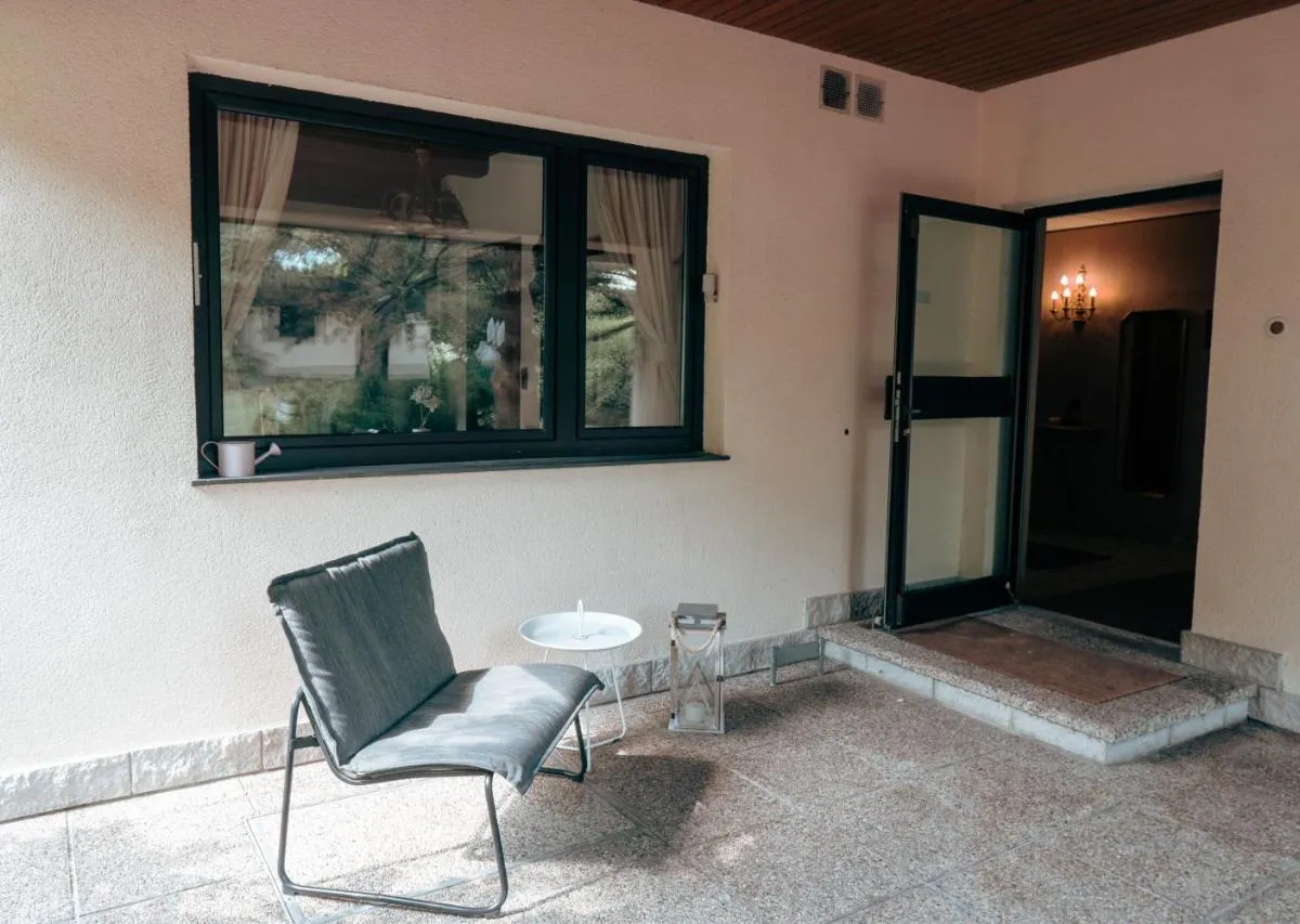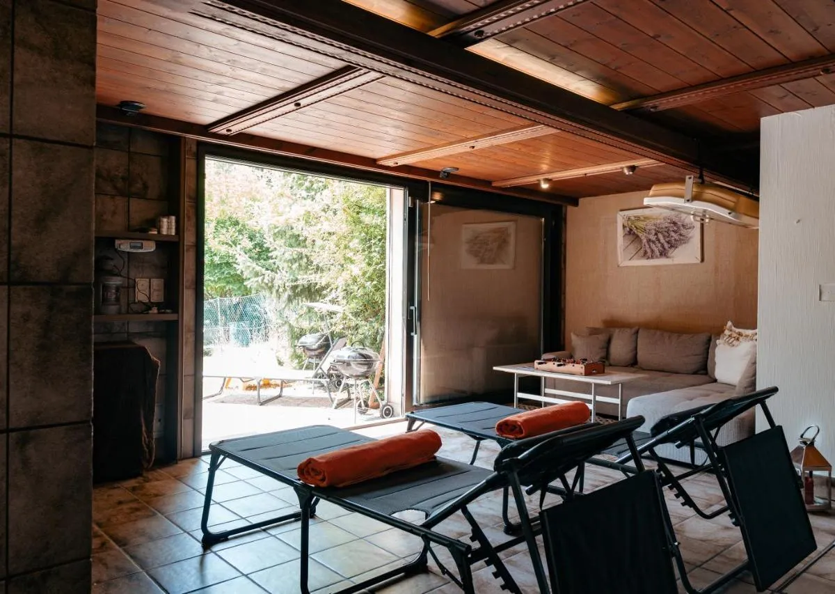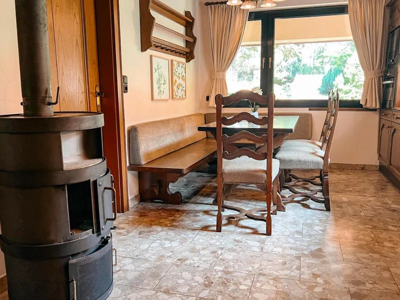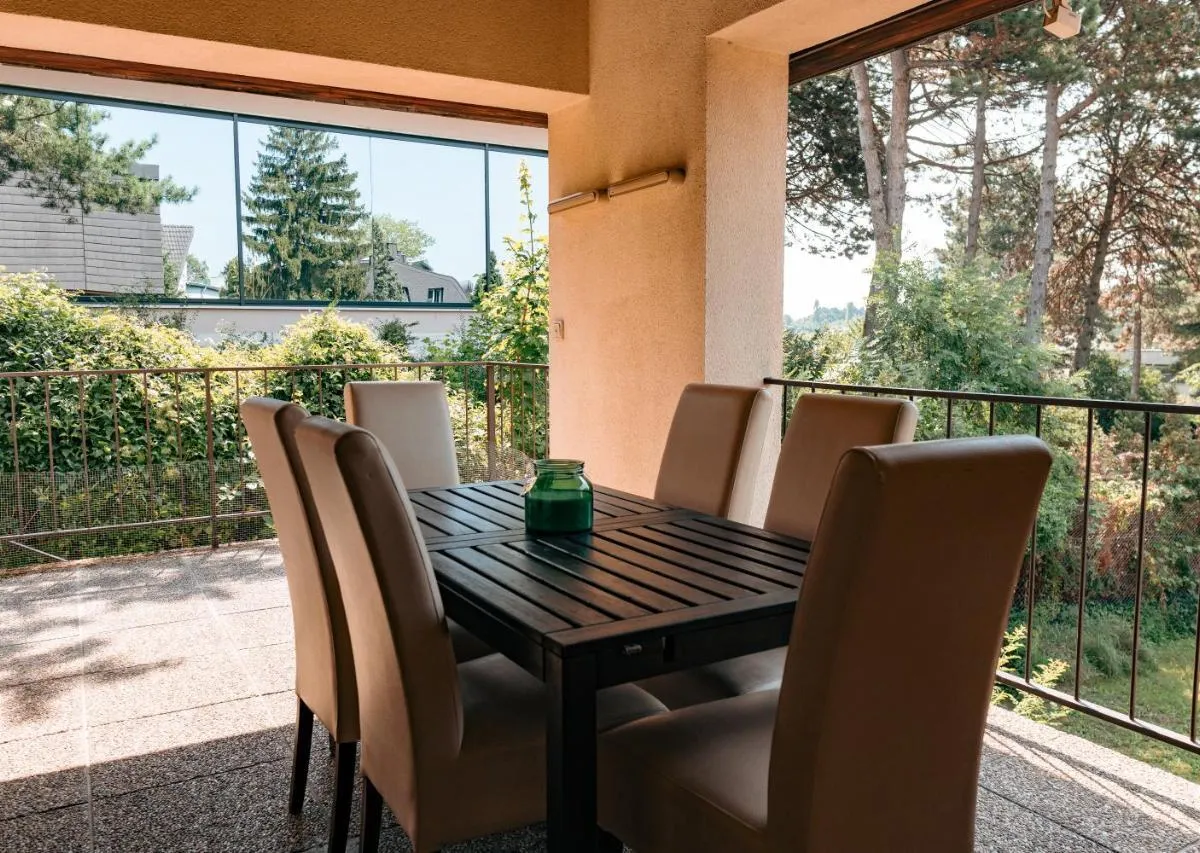 Von Essbereich gibt es einen direkten Zugang auf die überdachte Terrasse und den Garten.