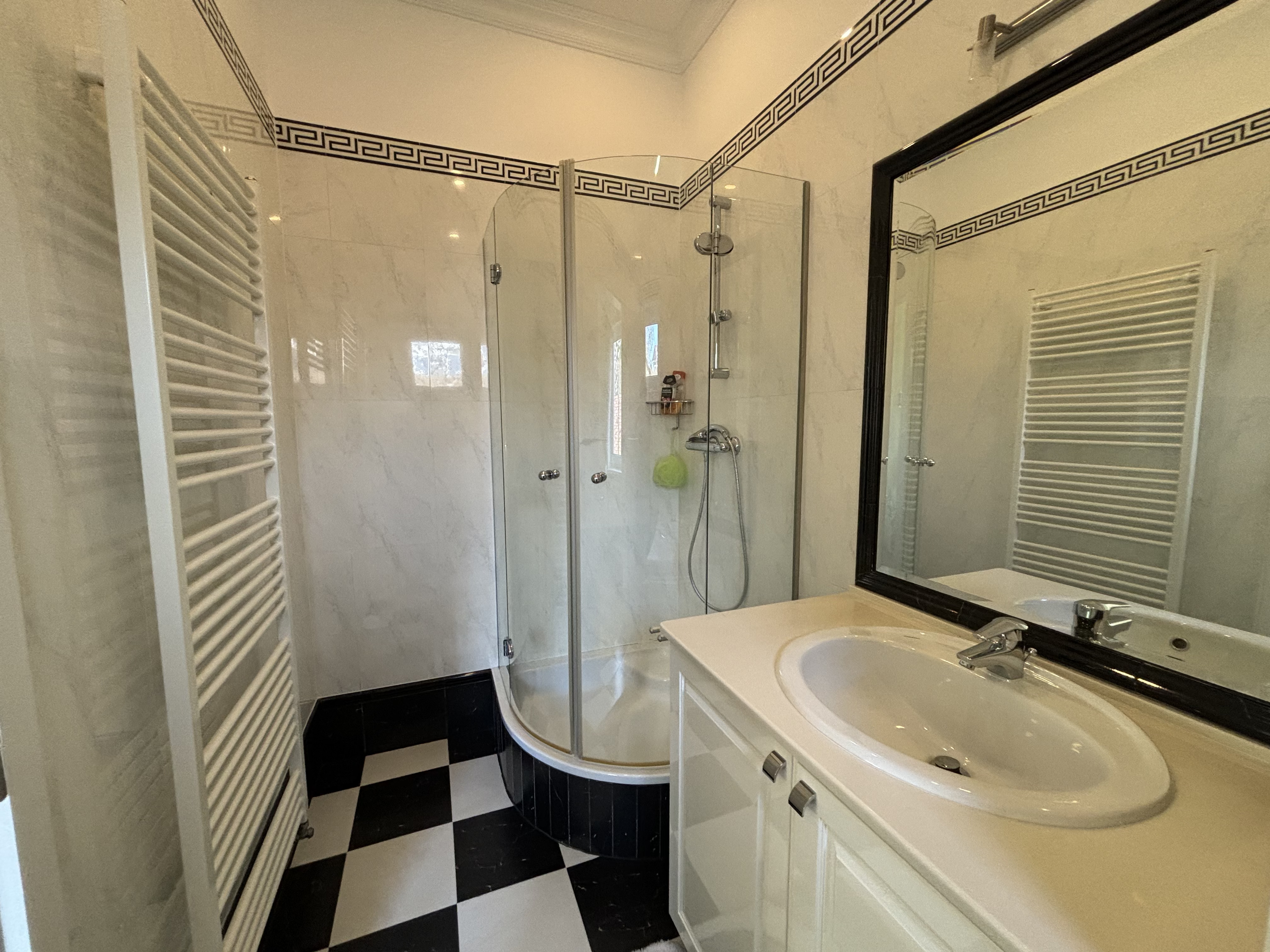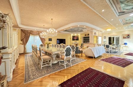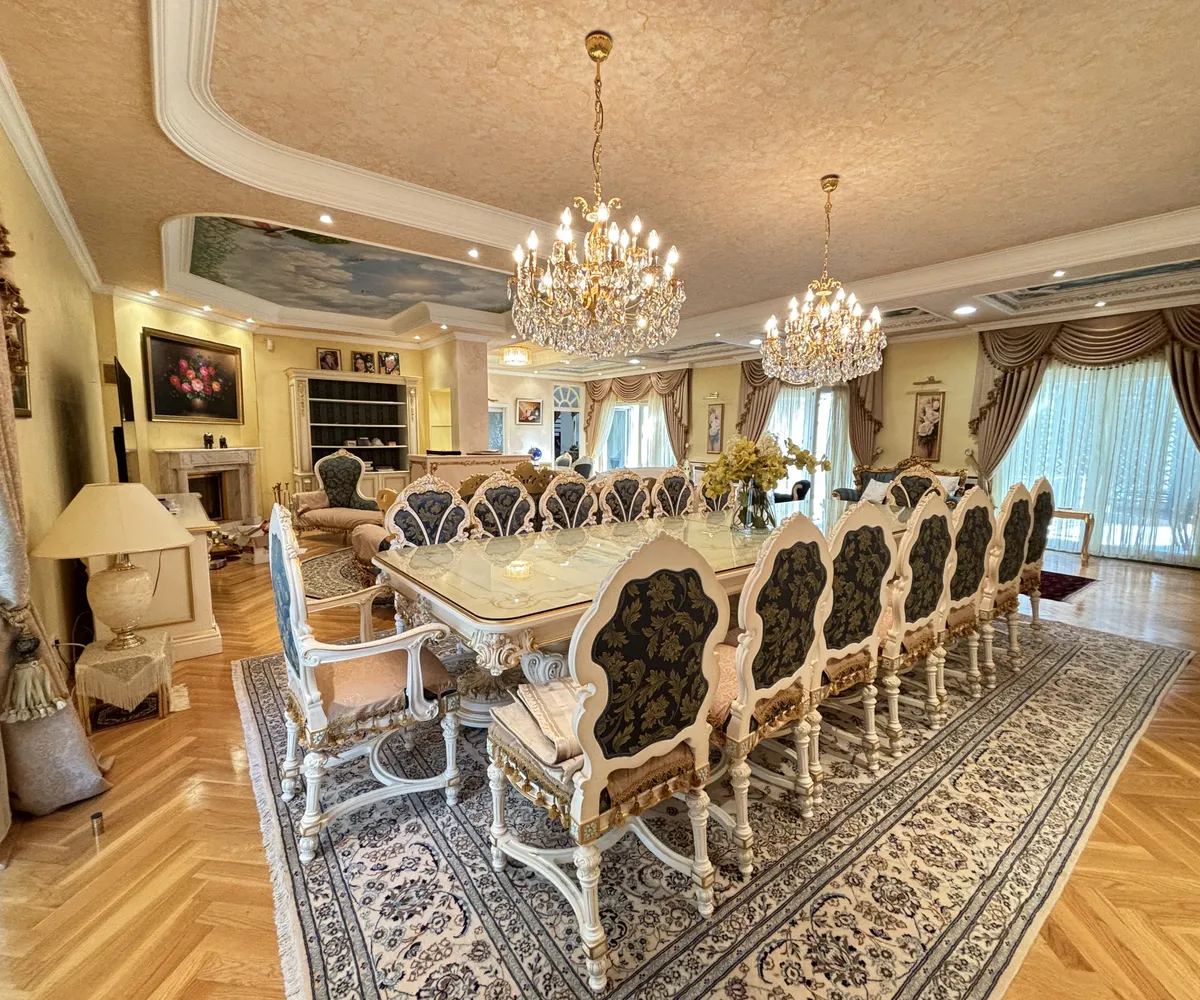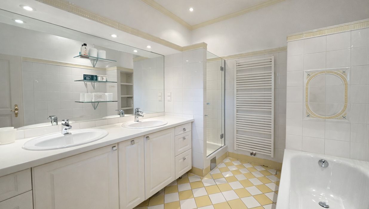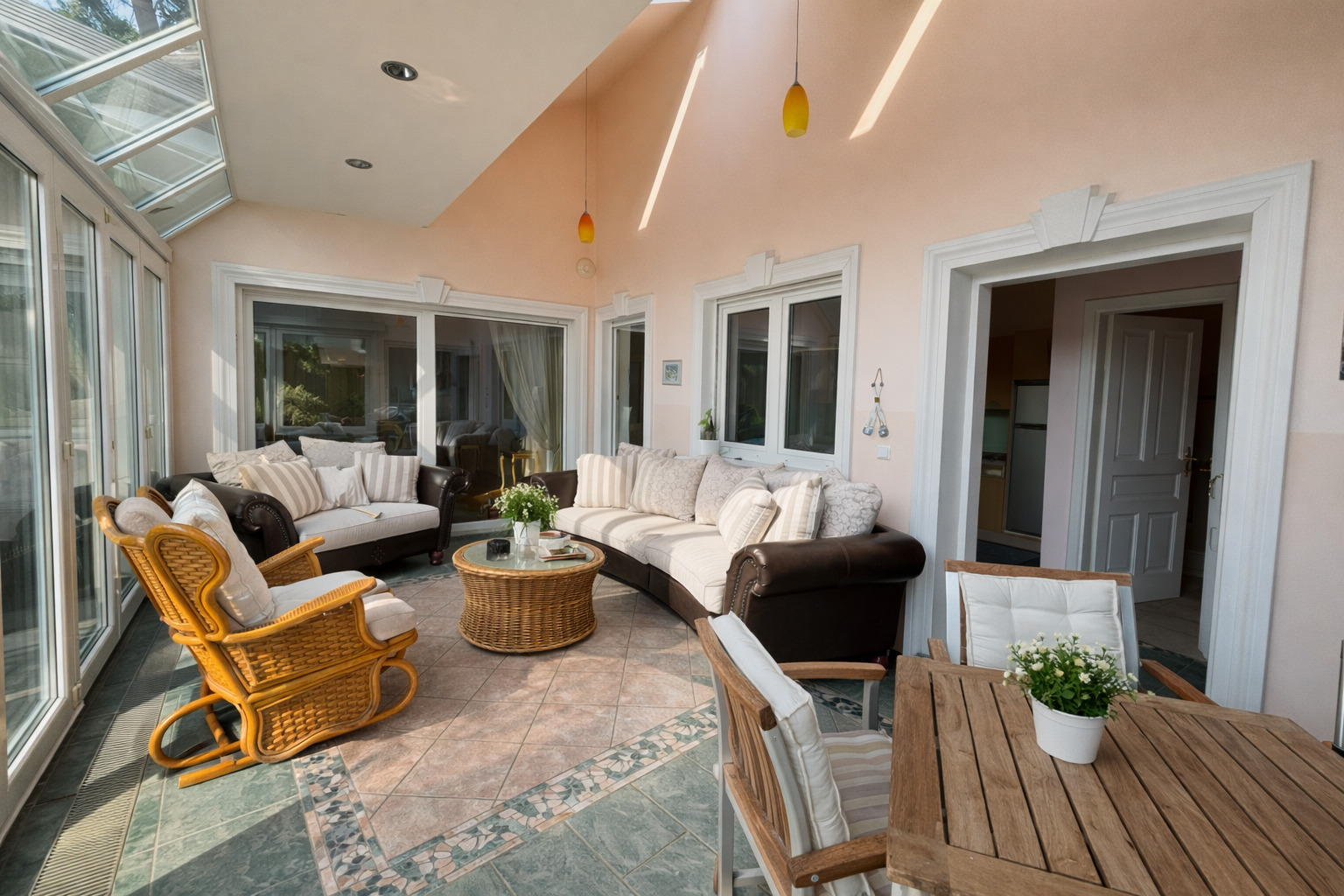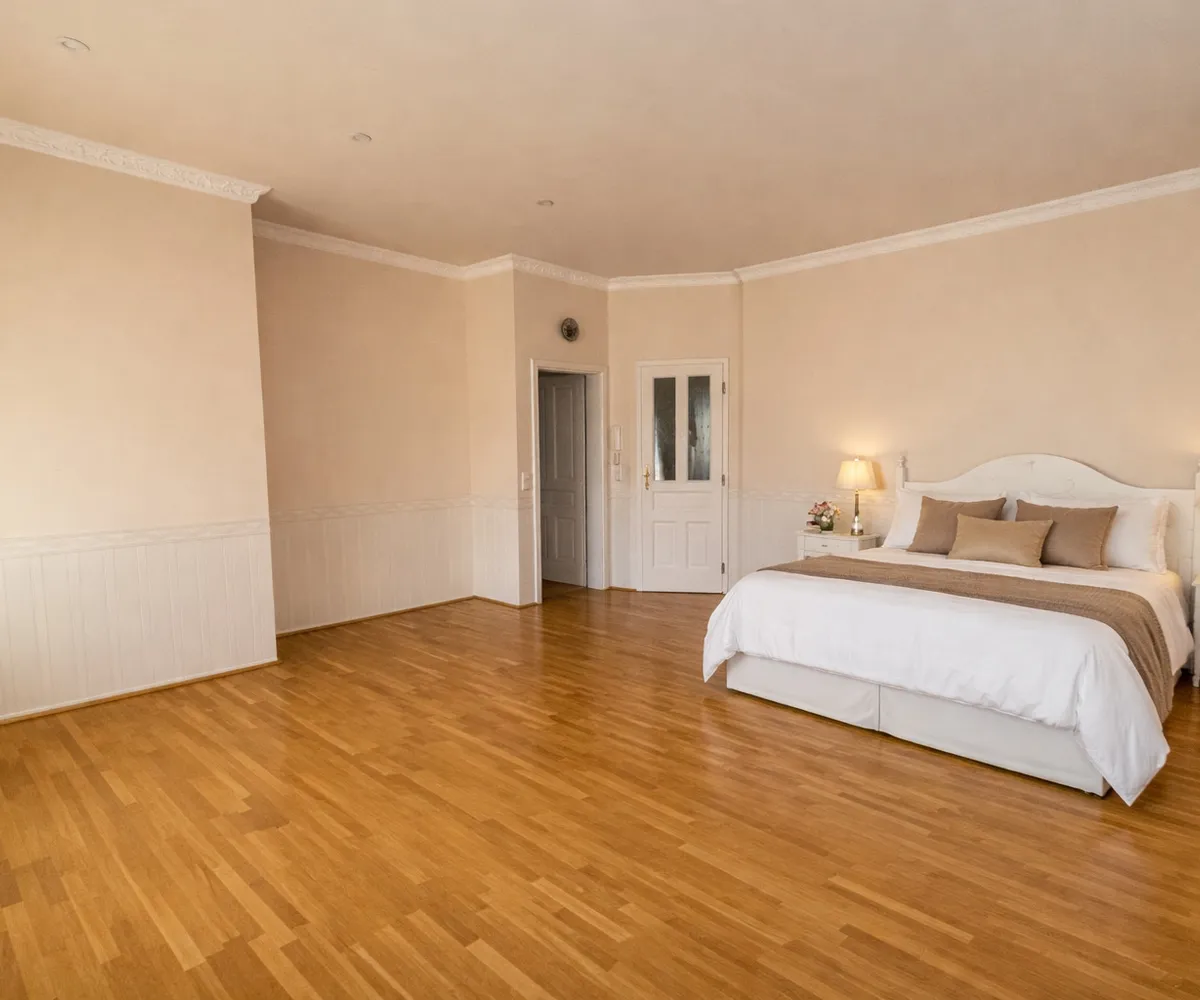 Im Inneren eröffnet sich ein Wohnkonzept für höchste Ansprüche: Edle Massivparkettböden im Fischgrätmuster , hochwertige Naturmaterialien wie Marmor und Granit , kunstvolle Details und großzügige Raumhöhen schaffen eine Atmosphäre zeitloser Eleganz. Das Herzstück des Hauses bildet der lichtdurchflutete Wohnbereich mit offenem Kamin , angrenzendem Wintergarten und direktem Zugang zur Terrasse.