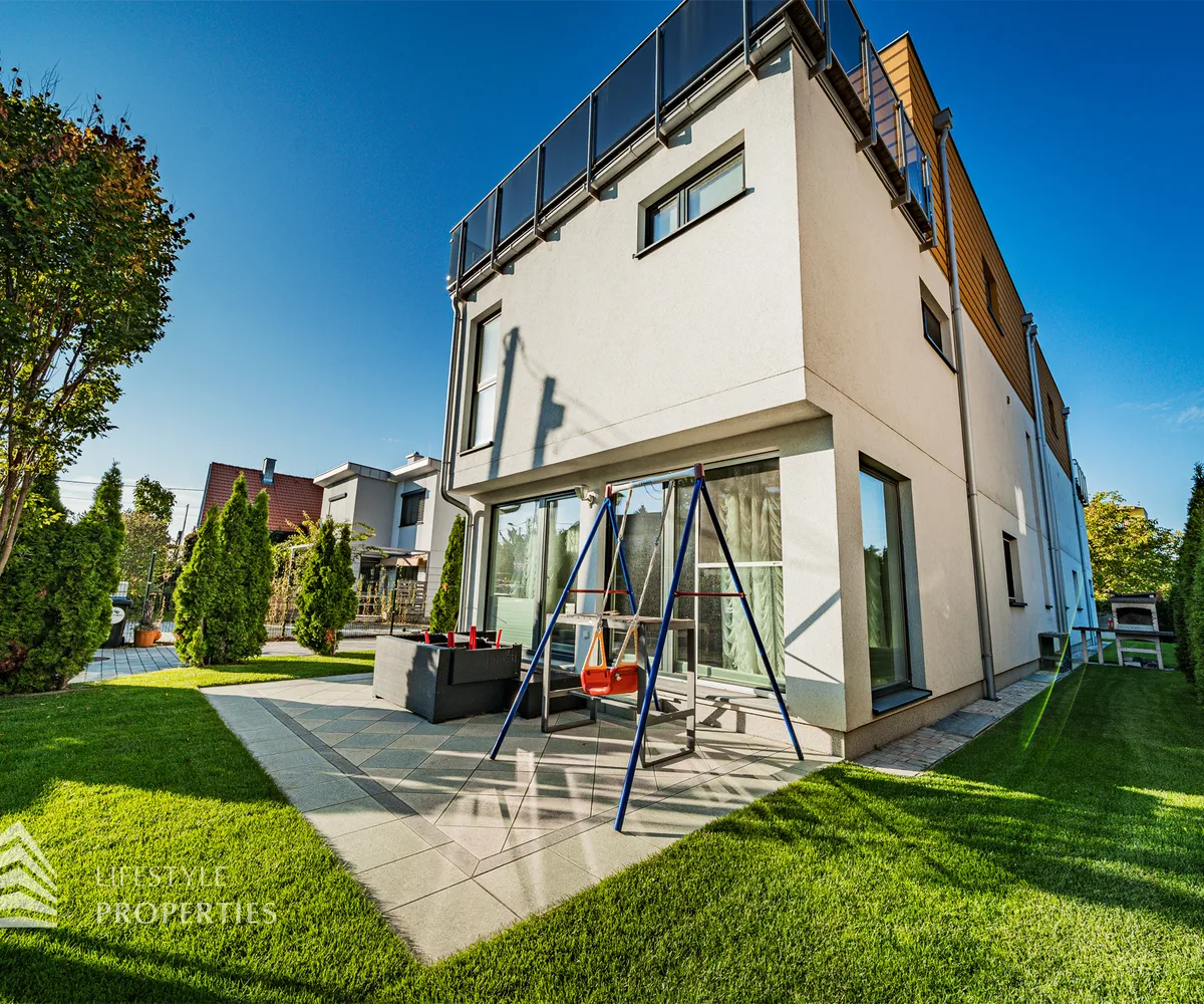 Die Immobilie wurde im Jahre 2013 erbaut und erstreckt sich über eine Wohnfläche von ca. 177,95 m², welche auf drei Stockwerke aufgeteilt ist. Zusätzlich verfügt sie über einen traumhaften Garten mit einer Fläche von ca. 195 m². Das Objekt teilt sich auf in einen Vorraum, ein Wohnzimmer, ein Esszimmer mit Küche, drei Zimmer, drei Bäder, vier Toiletten, einen Schrankraum, einen Abstellraum sowie einen ca. 67,17 m² großen Keller. Das Objekt wird mit hochwertigen Möbel verkauft. Das Highlight dieser Traumimmobilie ist zweifelsohne der wunderschöne Garten sowie die beiden Terrassen, welche zum Verweilen an der frischen Luft einladen. Beheizt wird das Objekt mittels Gas-Zentralheizung. Zusätzlich verfügt es über eine Klimaanlage.
