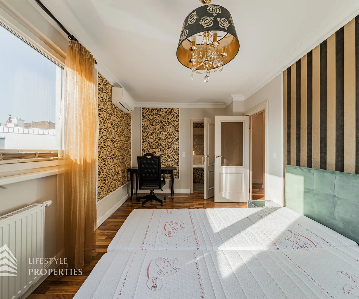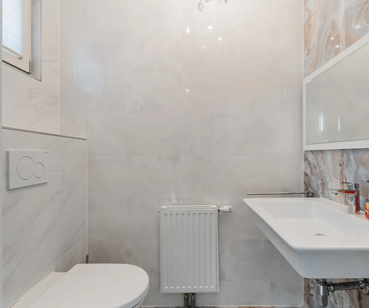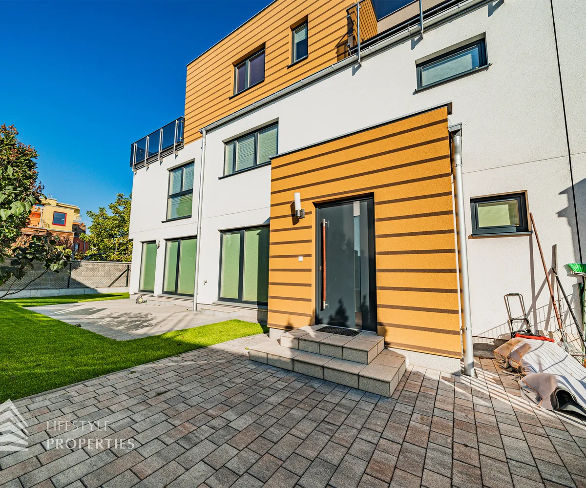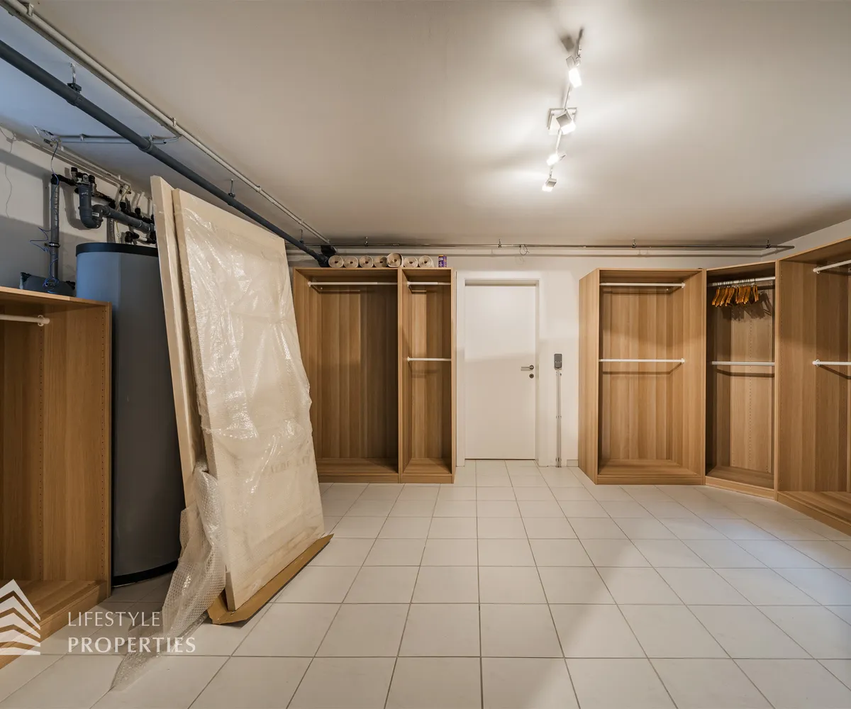 Über die Treppe hinauf gelangen Sie nun ins Dachgeschoss, wo sich auch das wunderschöne, ca. 28,78 m² große Schlafzimmer befindet. Wenn Sie das Zimmer betreten, werden Sie vom Charme dieses Zimmers begeistert sein. Der Raum hat einen direkten Zugang auf die ca. 23,58 m² große Terrasse. Die traumhafte Terrasse ist mit wunderschönen Terrassendielen verlegt worden und bietet viel Platz für eine gemütliche Sitzgelegenheit. Hier können Sie die frische Luft genießen und vom Alltag abschalten. Das Schlafzimmer verfügt über ein Doppelbett, einem eleganten Couchsessel und diverse andere Möbel. Der Raum ist angenehm lichtdurchflutet und bietet einen traumhaften Ausblick. Das Schlafzimmer besitzt außerdem auch über ein eigenes, wunderschönes Badezimmer. Dieses ist mit wunderschönen, dunklen Marmorfliesen ausgekleidet und besitzt eine Toilette, eine große Dusche, und ein stilvolles Waschbecken. Außerdem befindet sich im Dachgeschoss eine weitere Terrasse mit ca. 8,06 m². Im Keller angelangt, treffen Sie auf eine große Waschküche. Hier haben Sie genügend Platz, um diverse Dinge verstauen zu können. Die Lage und die Infrastruktur dieses Hauses könnten nicht besser sein! Die Alte Donau befindet sich nur wenige Minuten von Ihnen entfernt. Dort befinden sich wunderschöne Badestrände und Freibäder. Auch die sportlichen Aktivitäten kommen nicht zu kurz: Stand Up Paddling, Boot fahren, Surfen, Segeln usw. Auch die Anbindung an den öffentlichen Verkehr ist hervorragend. Die Bushaltestelle „Friedstraße“ (20 A), die U-Bahn-Station „Neue Donau“ (U6) und sämtliche Straßenbahnlinien befinden sich in unmittelbarer Nähe. Auch Volksschulen, Mittelschulen und Gymnasien sind in der Nähe auffindbar.