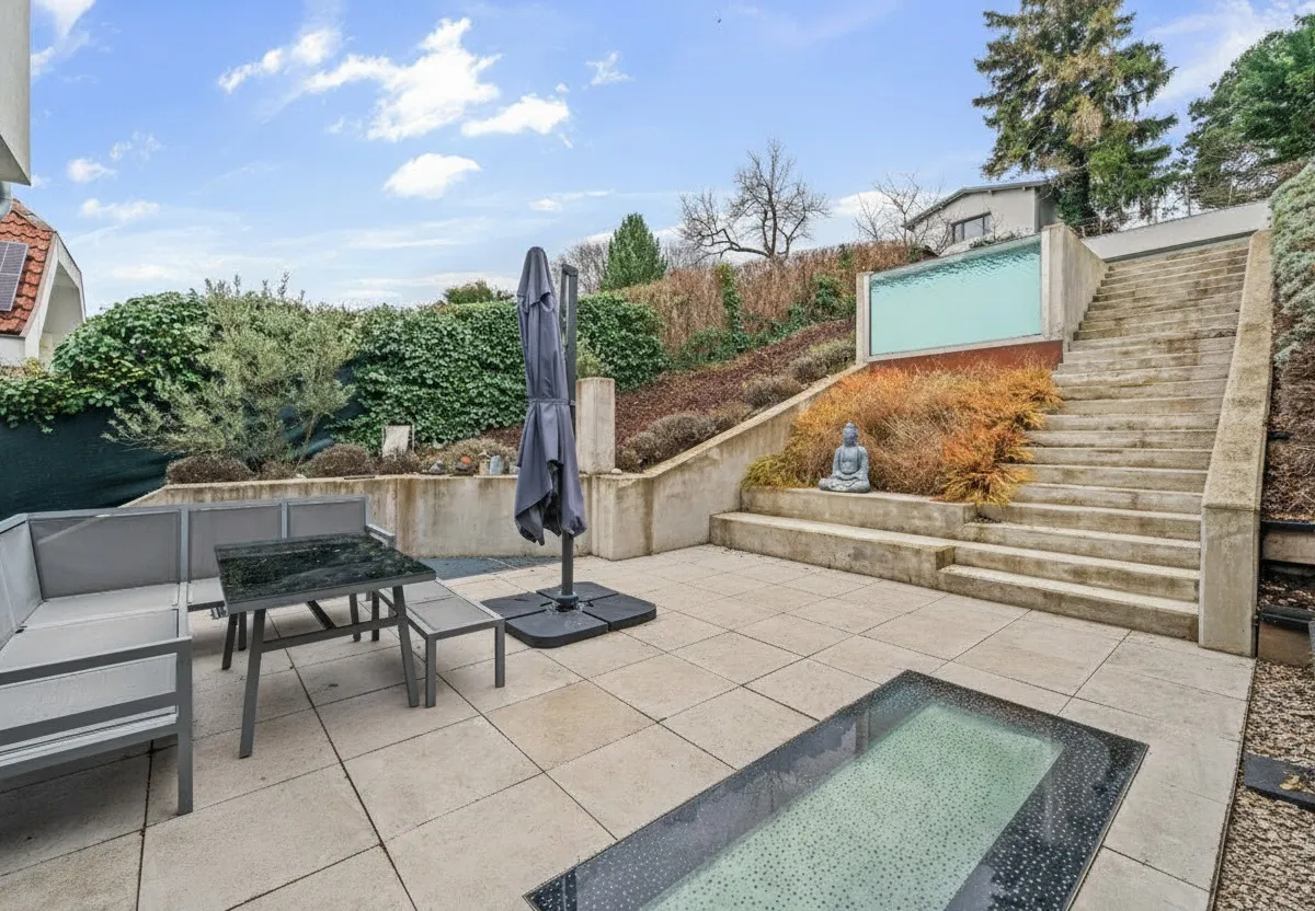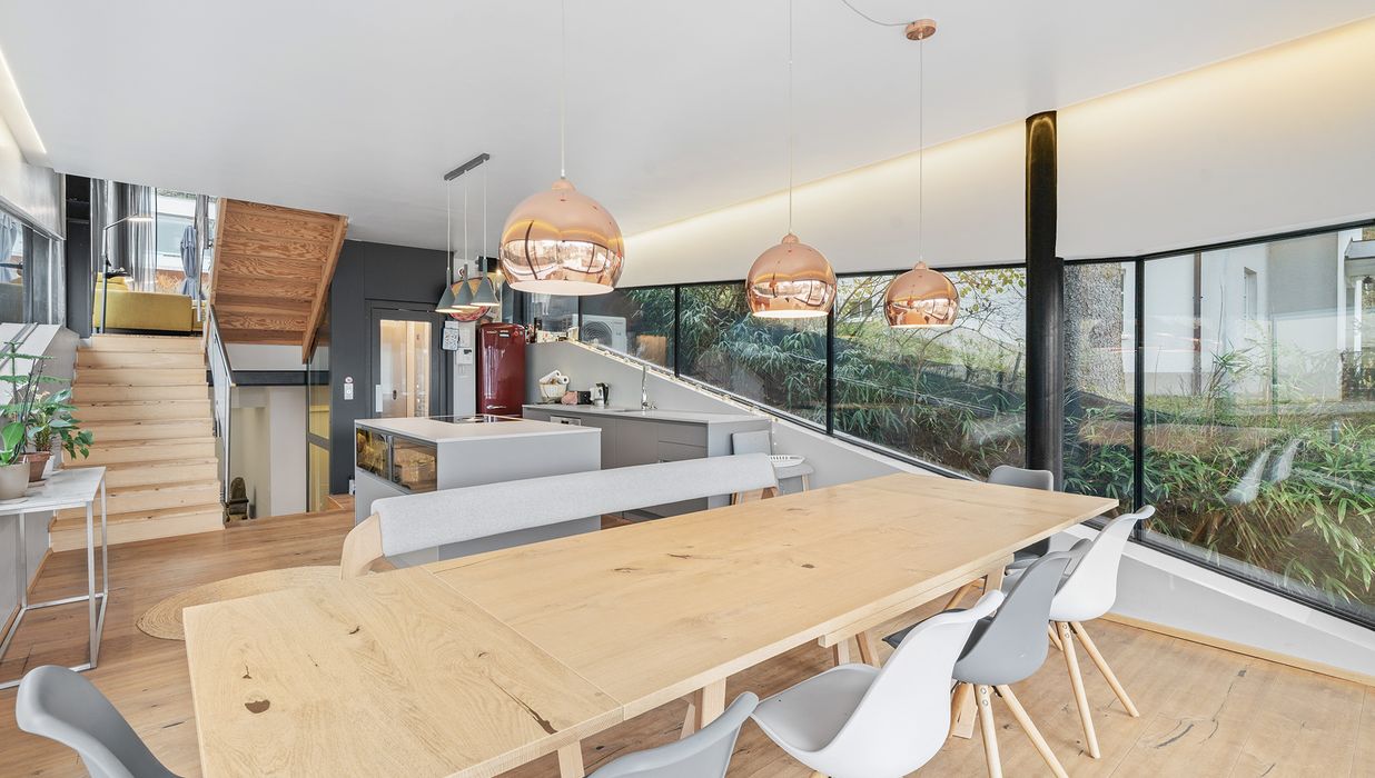 Dieses einzigartige Architektenhaus wurde mit Liebe zum Detail und höchsten Ansprüchen entworfen und 2017 fertiggestellt. Die schlanke vertikale Bauweise nutzt den Grundriss optimal aus und schafft eine beeindruckende Raumkomposition mit lichtdurchfluteten Ebenen, großzügigen Glasflächen und einem unverwechselbaren Wohnambiente.