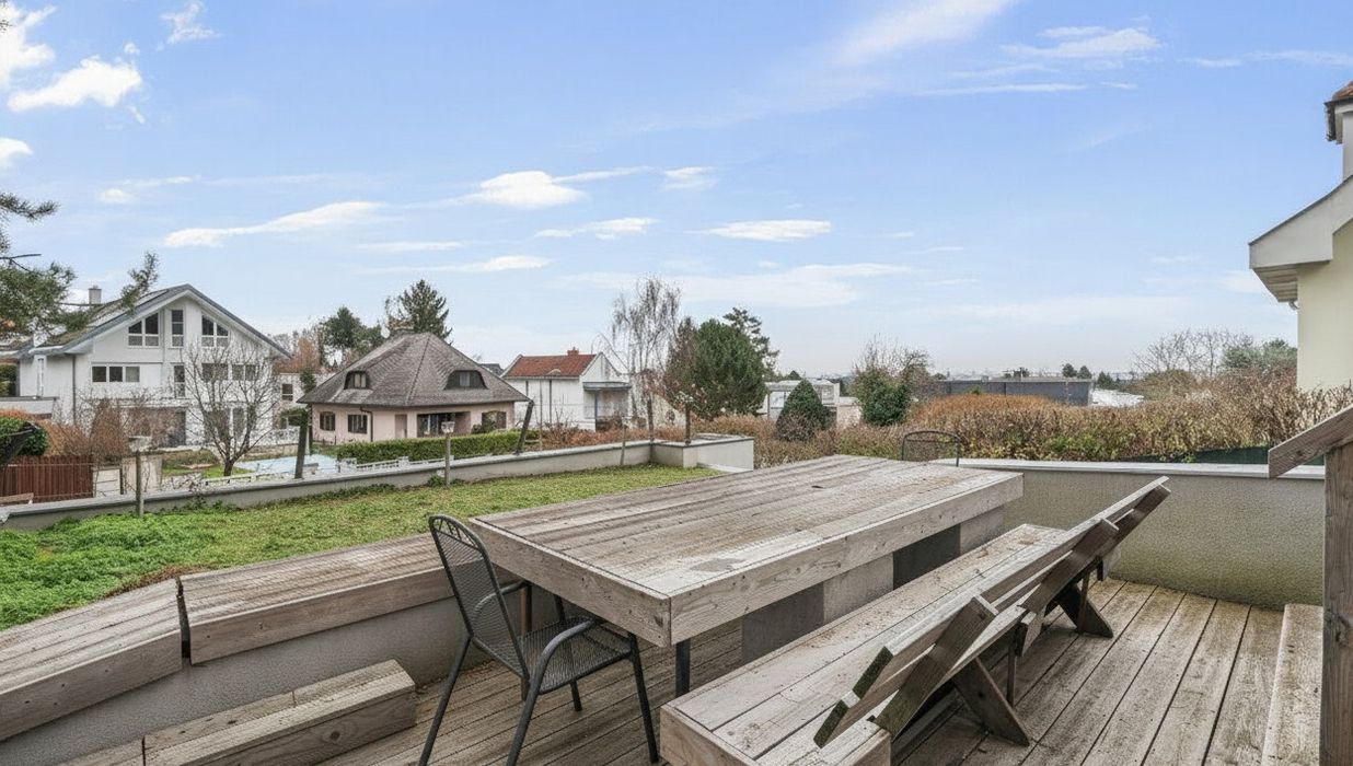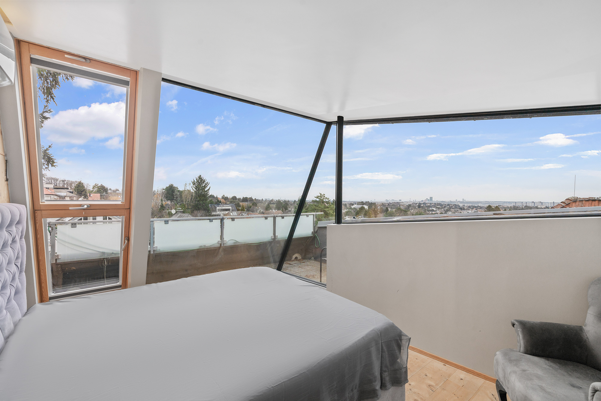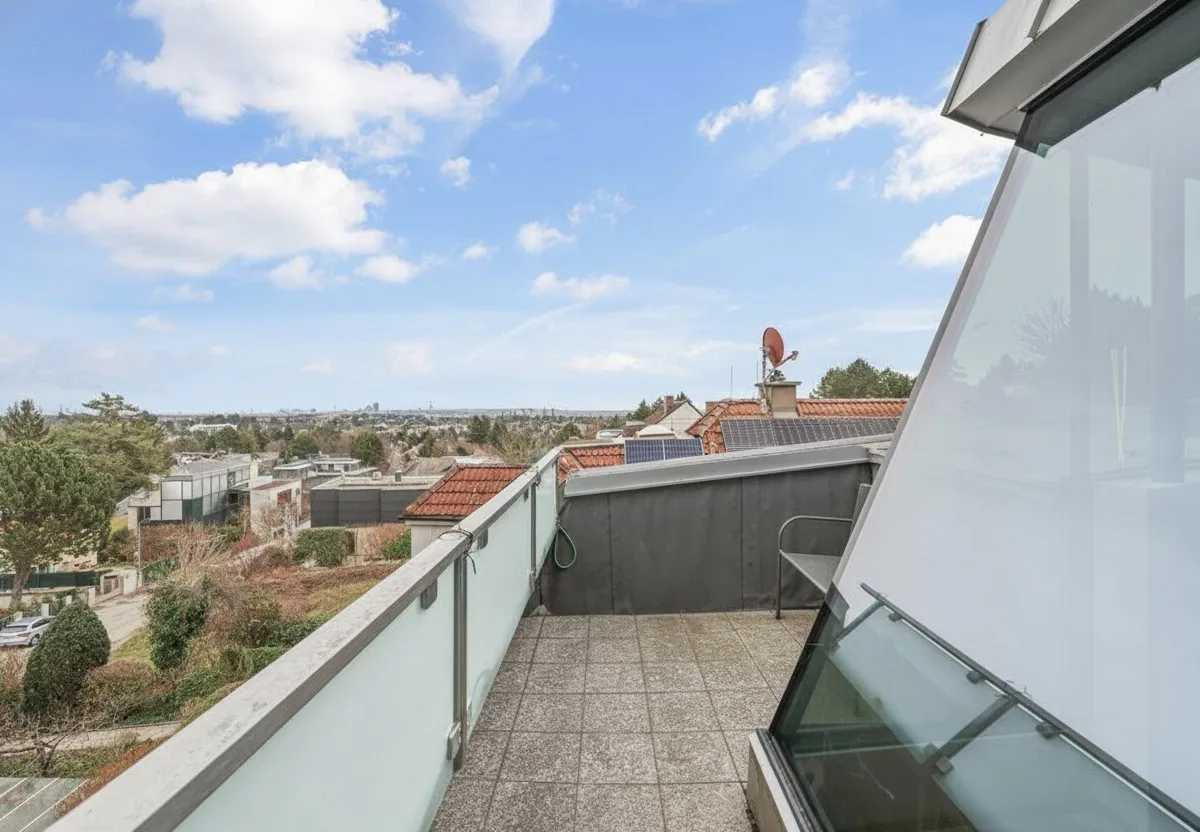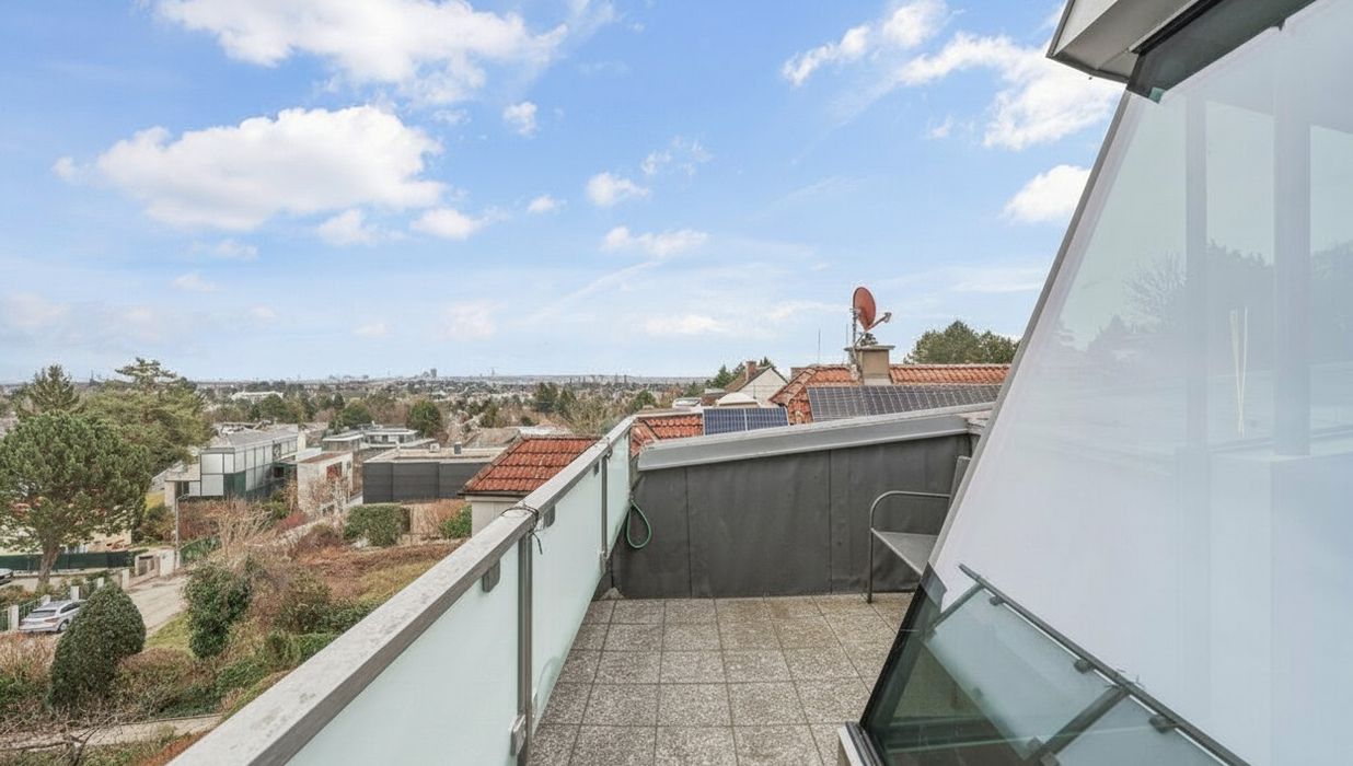 die 5 m² große Terrasse mit Ausblick über Wien – ein außergewöhnlicher Platz für Ruhe oder kreatives Arbeiten.