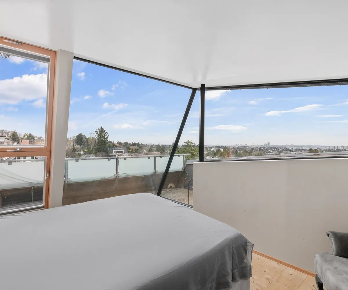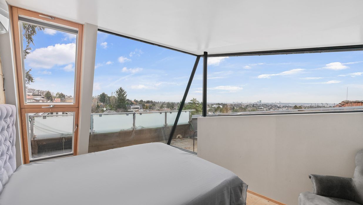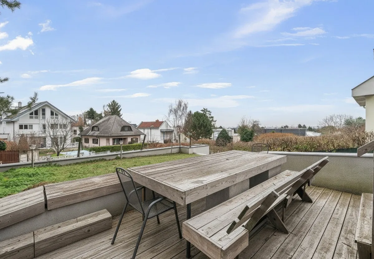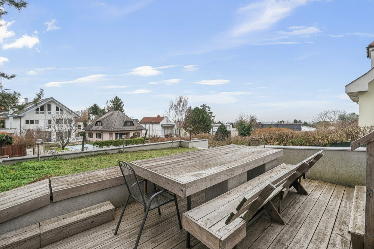 die 5 m² große Terrasse mit Ausblick über Wien – ein außergewöhnlicher Platz für Ruhe oder kreatives Arbeiten.
