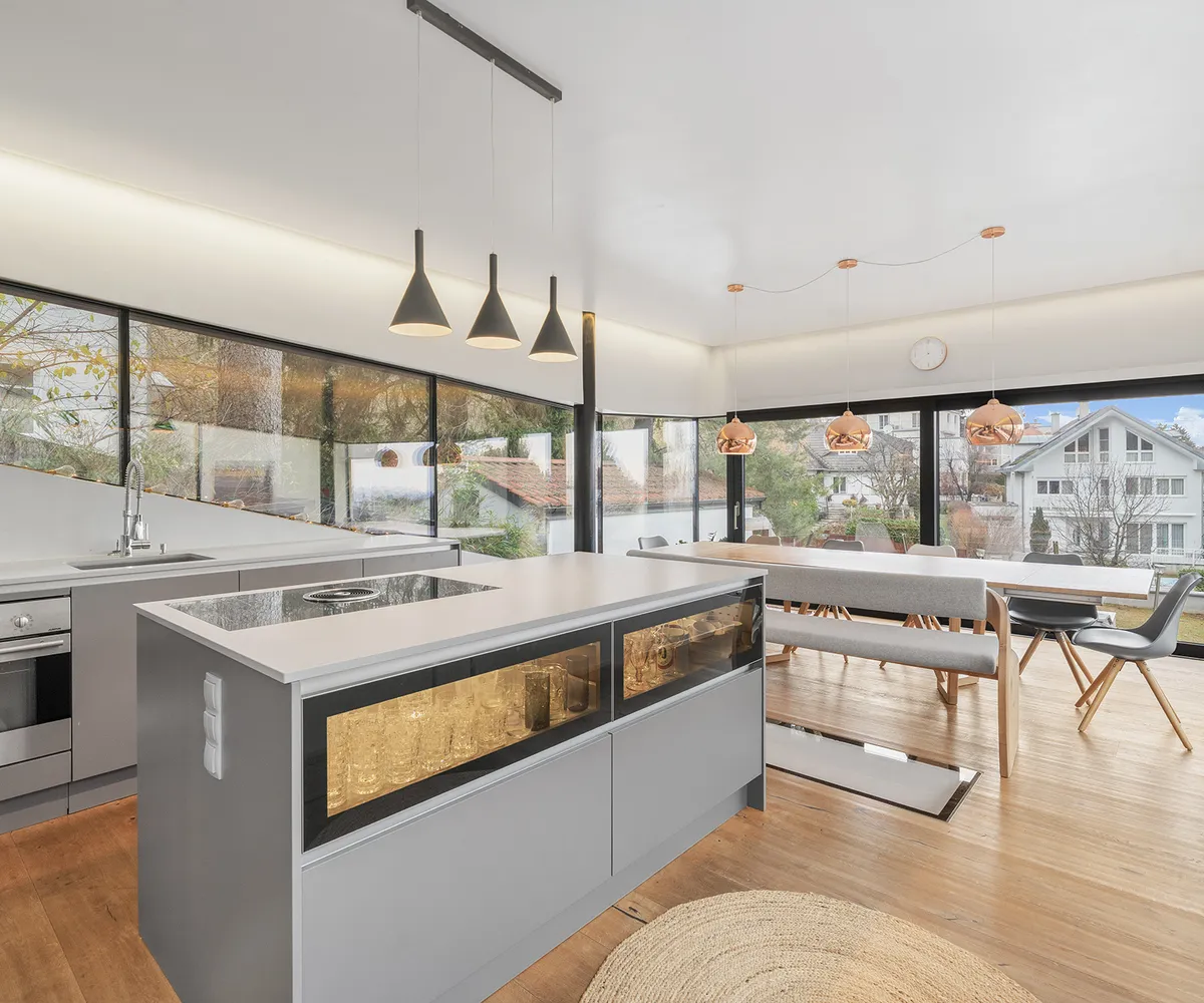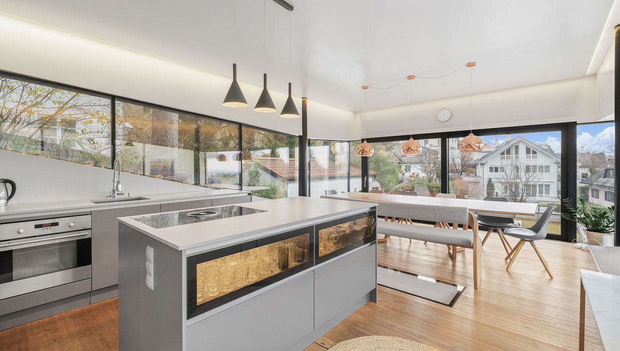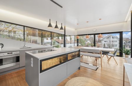Die Transparenz und Helligkeit dieser Etage erzeugen eine besonders einladende Wohnatmosphäre.