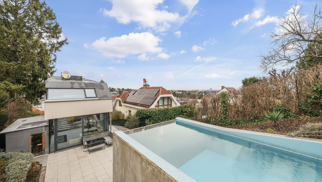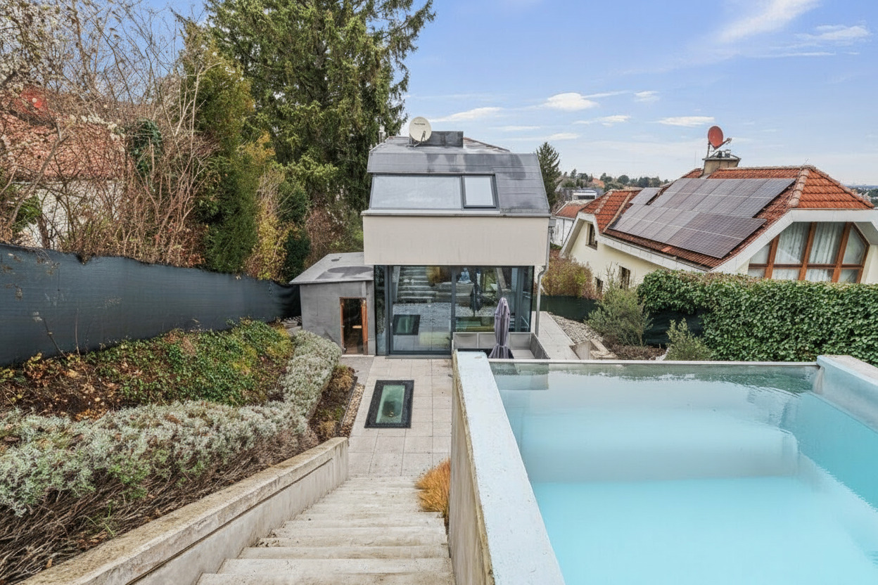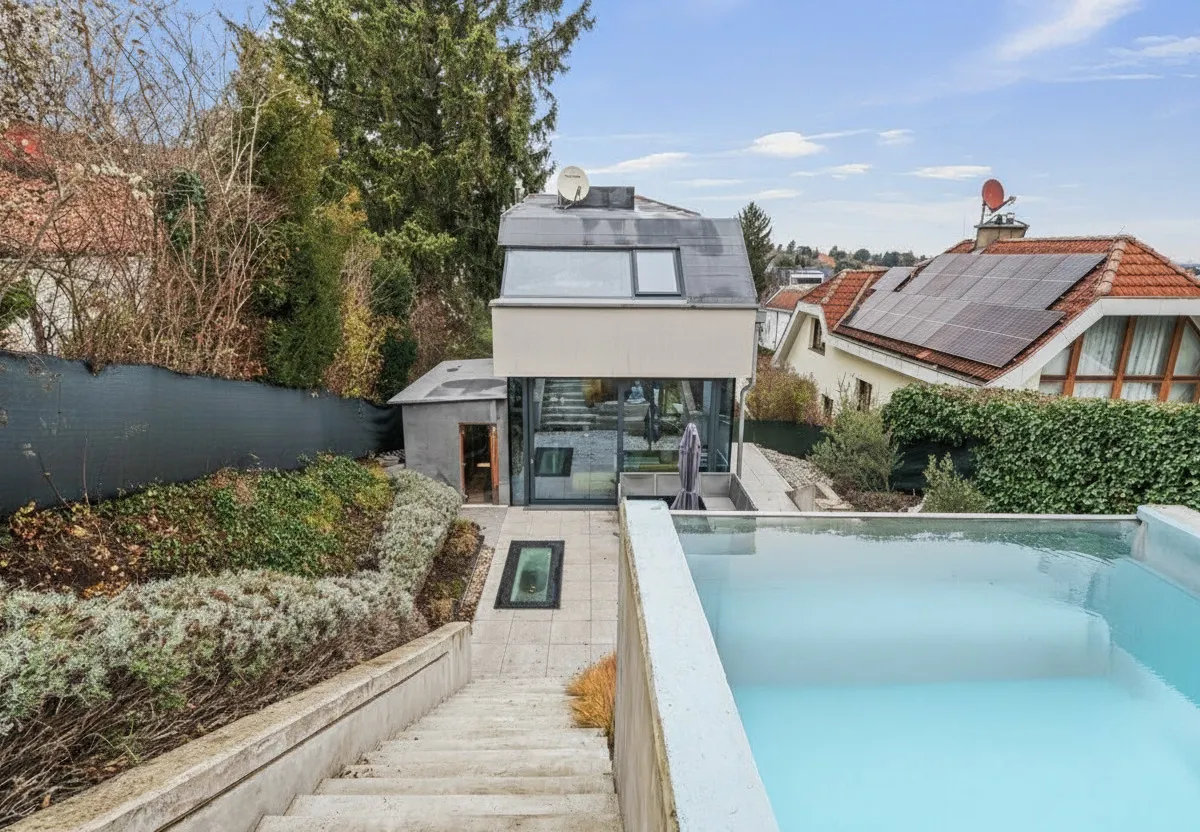 Willkommen in Ihrem neuen Zuhause – einer außergewöhnlichen Architektenvilla in einer ruhigen Sackgasse des begehrten Stadtteils Mauer im 23. Bezirk Wiens . Diese exklusive Immobilie vereint modernste Architektur und ein unvergleichliches Wohngefühl auf beeindruckenden 7 Ebenen . Die Grundstücksfläche beträgt knapp 700 m².