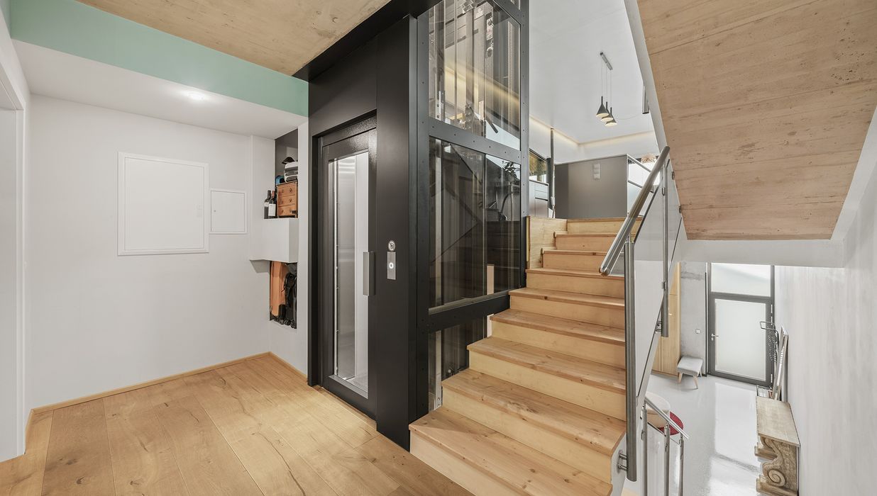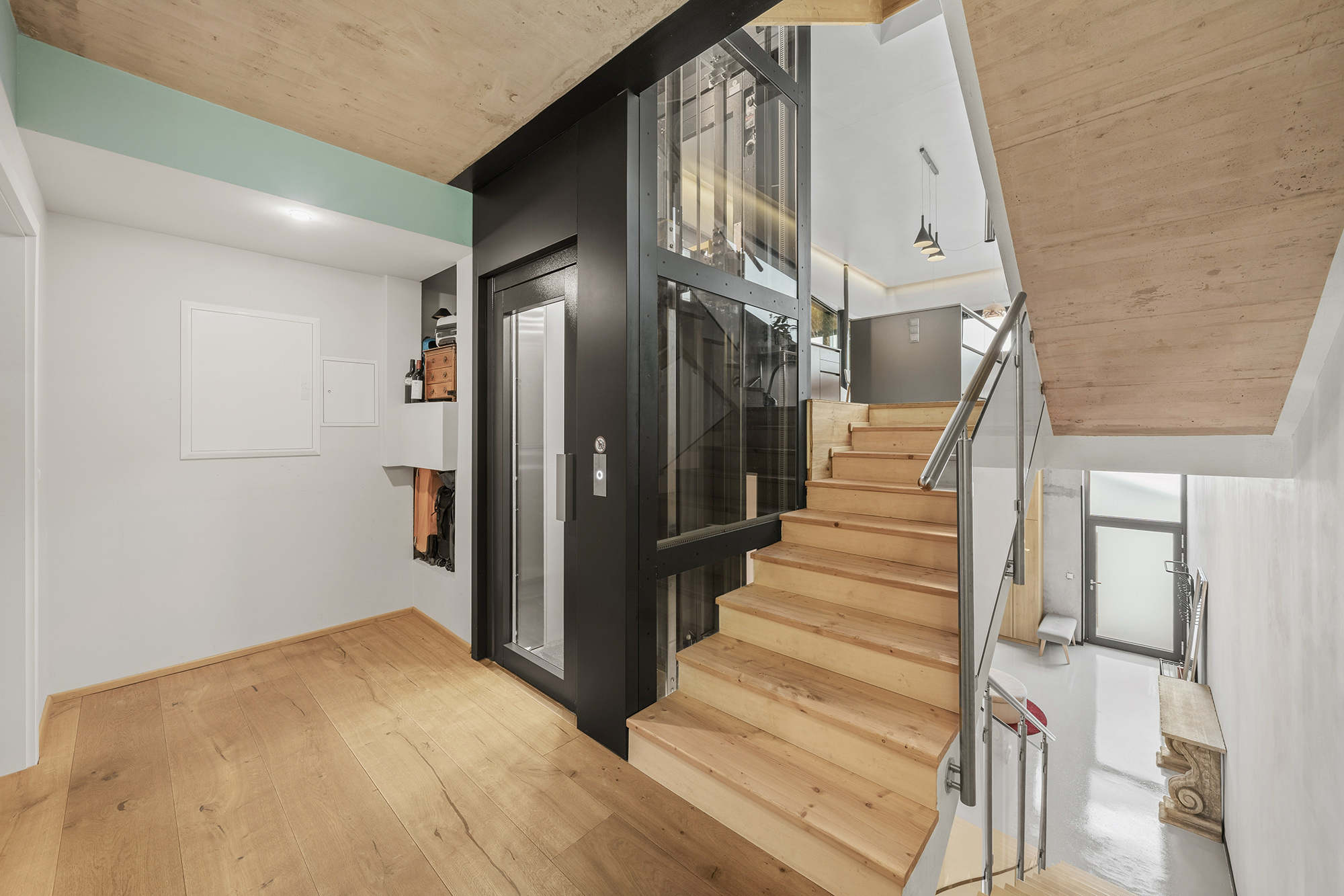 der Zugang zum Lift , der die zentralen Wohnebenen komfortabel verbindet