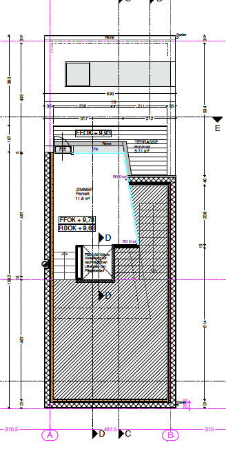 Über eine Treppe erreicht man die erste obere Ebene, auf der sich der Technikraum sowie ein ca. 30 m² großer Raum befinden