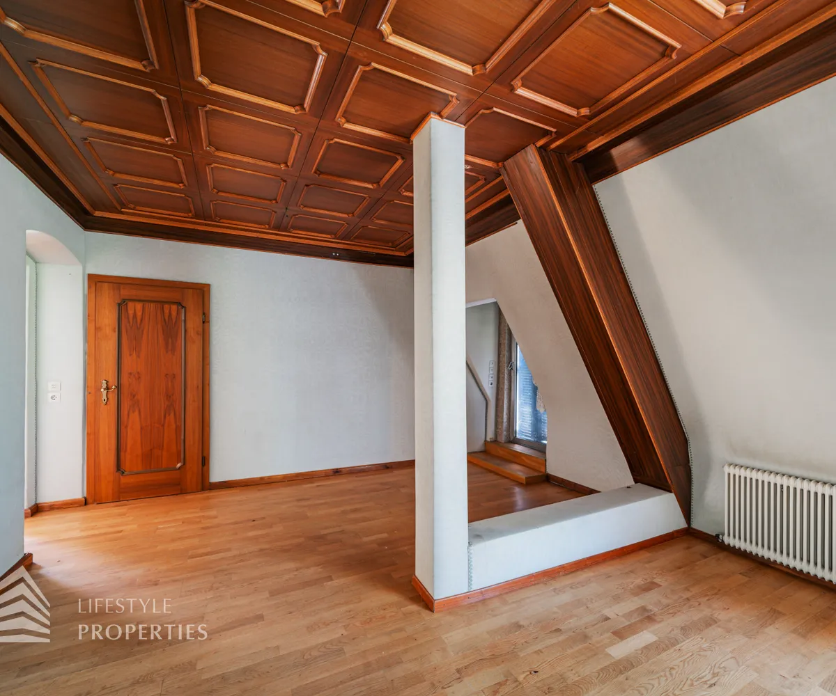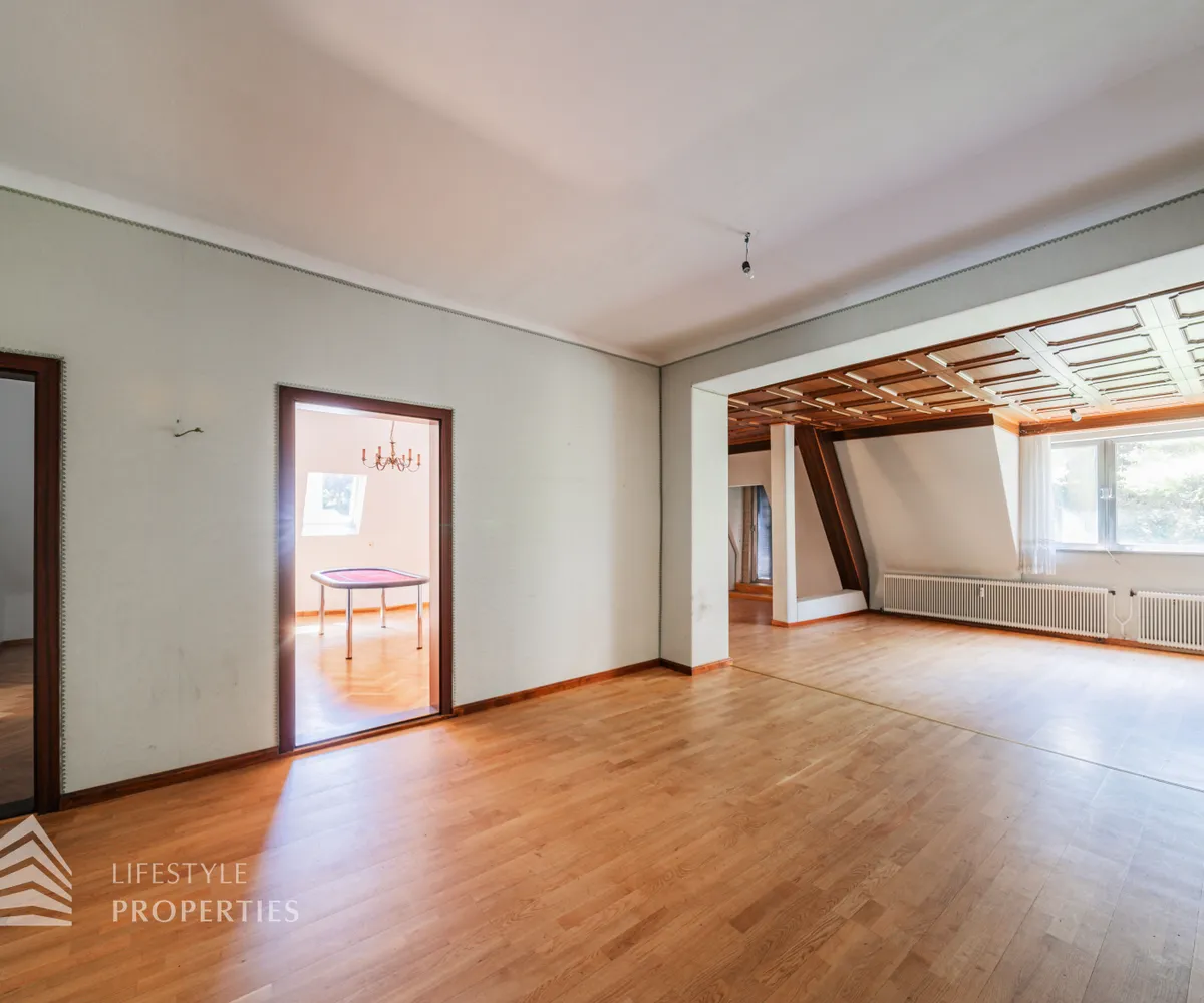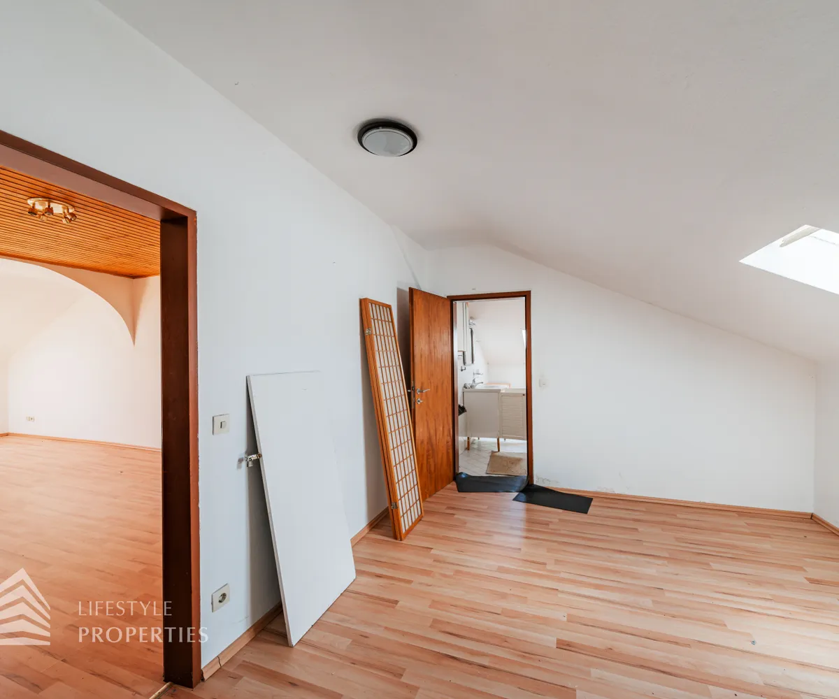 Das ca. 192 m² große Dachgeschoss ist ebenfalls über eine Treppe erreichbar. In diesem haben Sie Zugang zu zwei Einheiten. Hier befindet sich die größte der sieben Einheiten. Auf einer unglaublichen Fläche von ca. 170 m² bleiben hier keine Wünsche mehr offen. Diese Einheit bietet Ihnen fünf großflächige Zimmer, eine Küche, ein Badezimmer, eine separate Toilette und zwei Abstellräume. Zusätzlichen haben Sie Zugang zu einem charmanten Balkon und einer unglaublichen ca. 70 m großen Terrasse, auf welcher Sie im Schatten des Altbaumbestandes entspannen können. Die zweite Einheit erstreckt sich über das 1. und 2. Dachgeschoss und bietet eine Wohnfläche von ca. 116 m². Sie betreten die Wohnung im 1. Dachgeschoss und finden hier einen großzügigen Eingangsbereich mit einer Treppe und einen Abstellraum. Die Treppe führt Sie in das nächste Geschoss, in welchem Sie drei Zimmer, eine Küche, ein Badezimmer, einen Vorraum sowie einen Abstellraum finden.