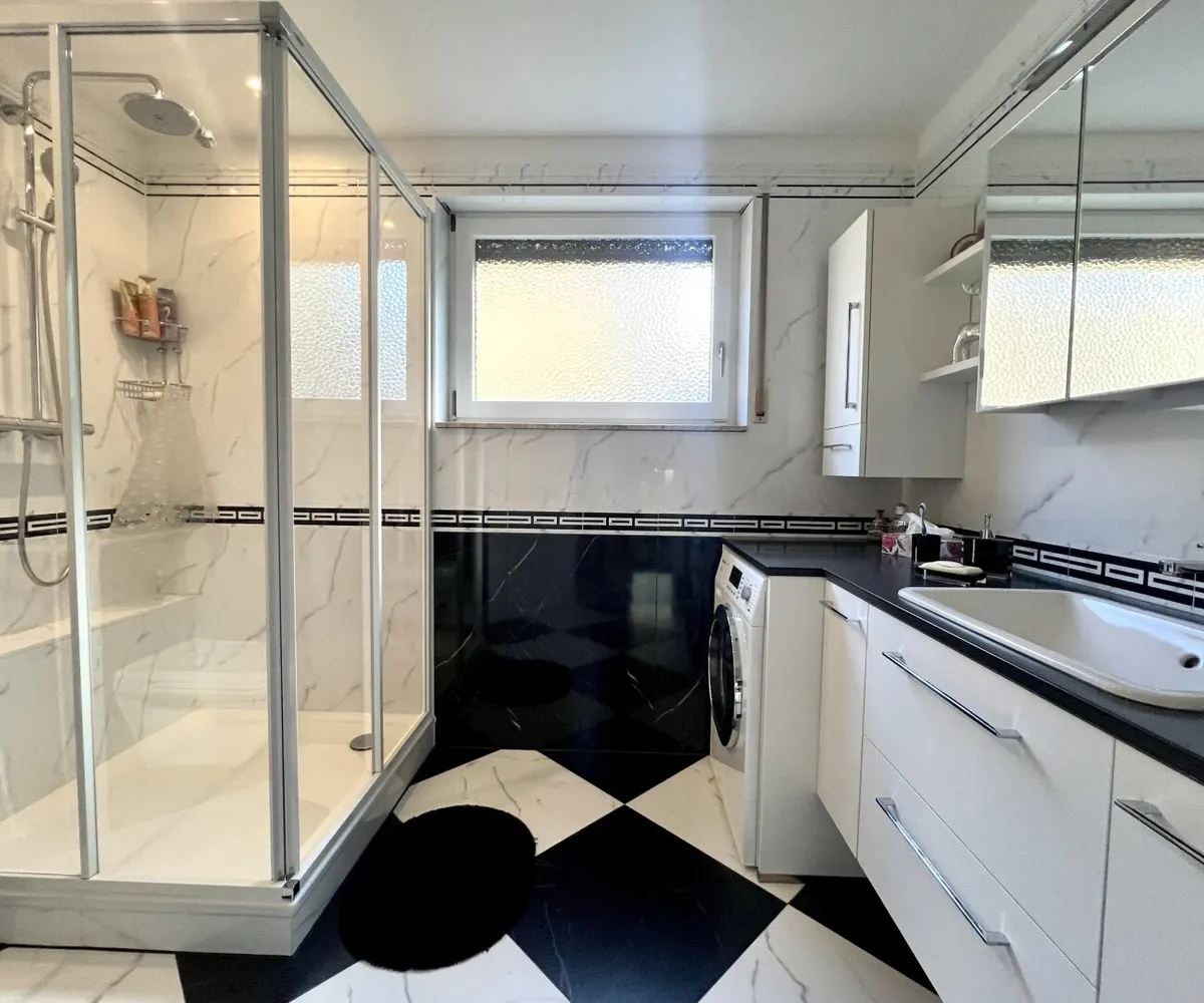 erwarten Sie vier geräumige Zimmer, die zentral begehbar sind und vielseitige Nutzungsmöglichkeiten bieten – ob als Schlafzimmer, Kinderzimmer oder Homeoffice. Das Badezimmer ist mit einer Badewanne, WC und einem Bidet ausgestattet.