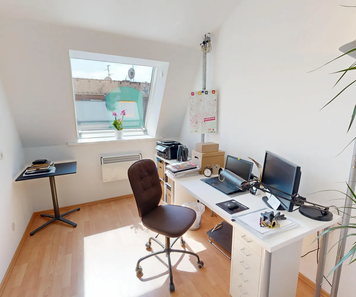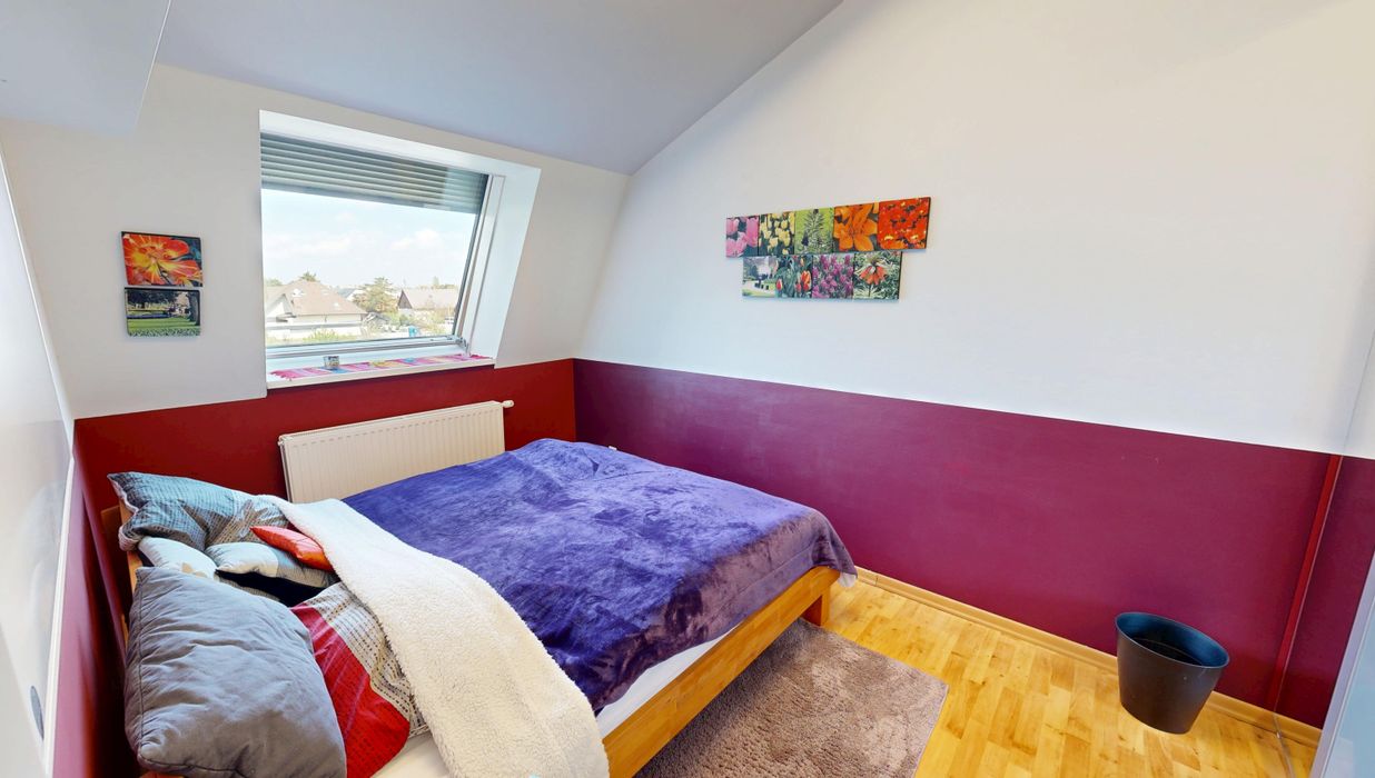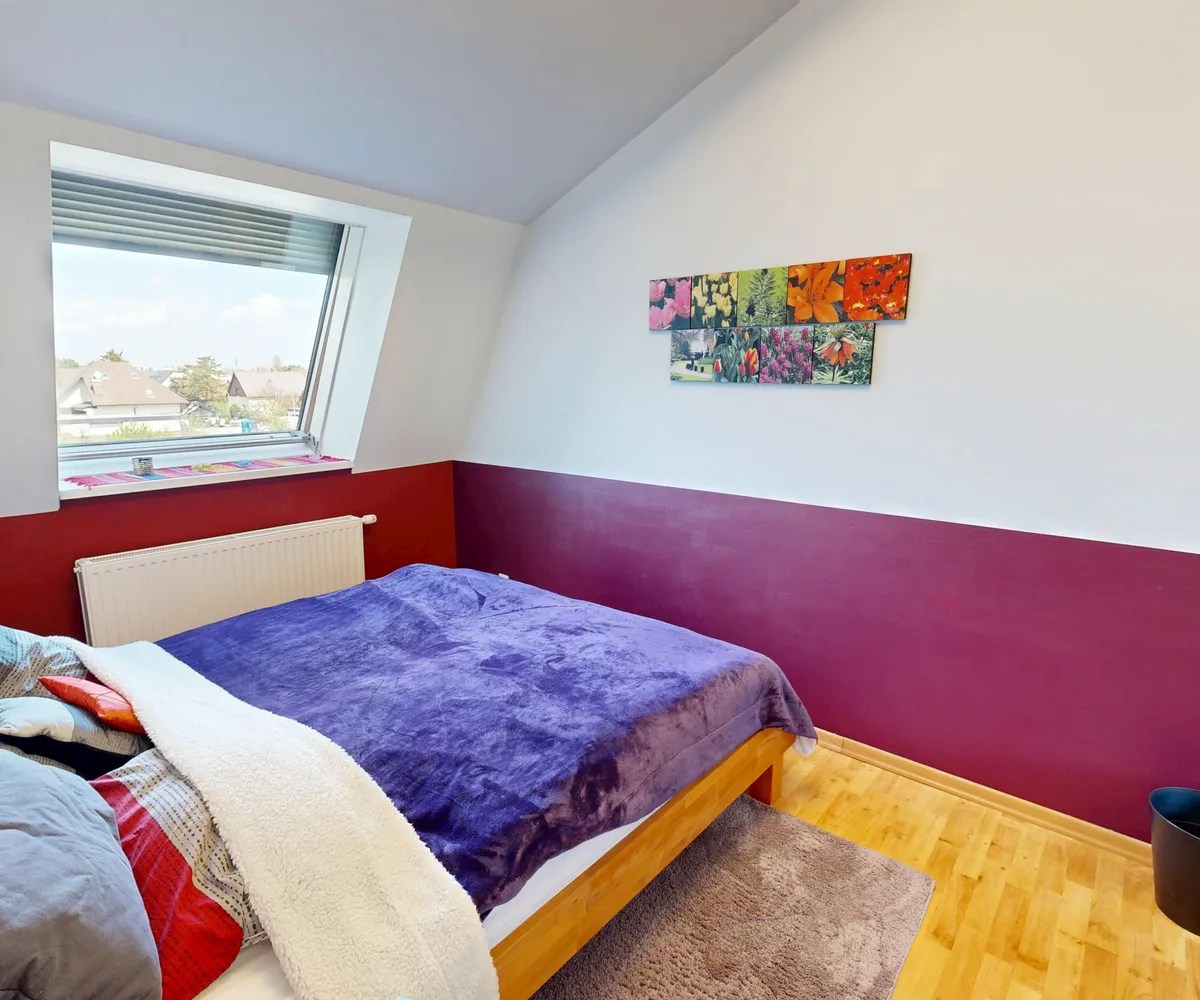 Der ausgebaute Dachbodenraum erweitert die Wohnfläche und schafft zusätzlichen Raum, der flexibel genutzt werden kann – etwa als Arbeitszimmer, Gästezimmer oder Rückzugsort.
