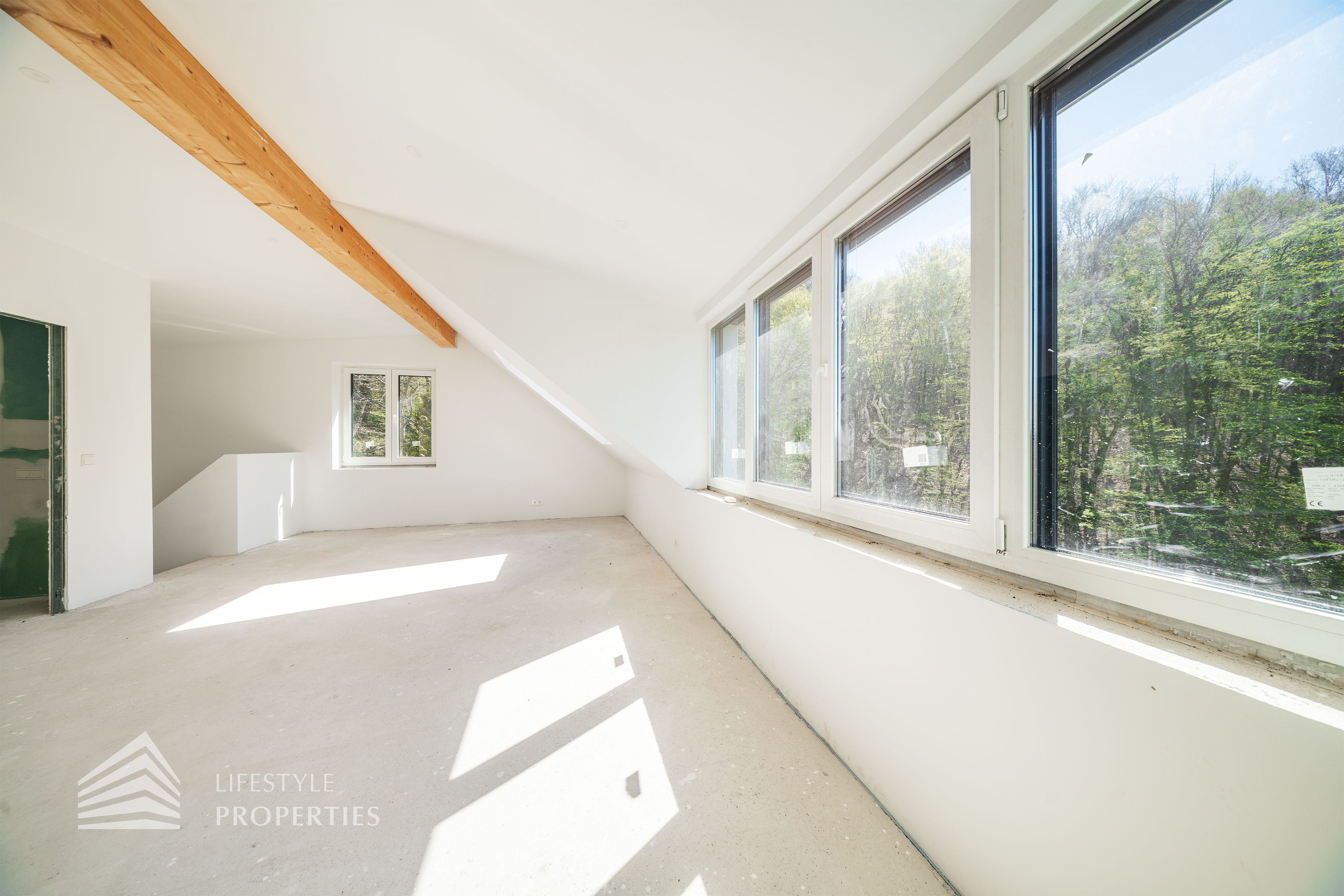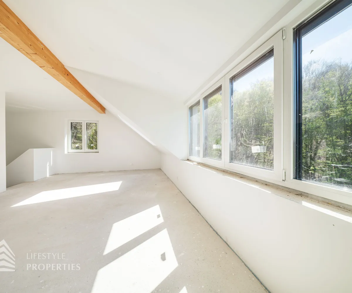 Die Lage am Ende einer Sackgasse bietet ein hohes Maß an Ruhe und Privatsphäre. Der direkte Bezug zur Natur sowie der Blick ins Grüne schaffen eine besondere Wohnqualität. Gleichzeitig ist eine gute Anbindung an die Wiener Innenstadt gegeben, wodurch sich naturnahes Wohnen optimal mit urbaner Infrastruktur verbinden lässt. Die nahegelegen Busstation bringt Sie schnell zur U4 Station Hütteldorf.