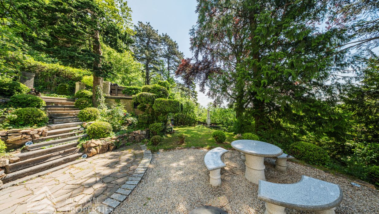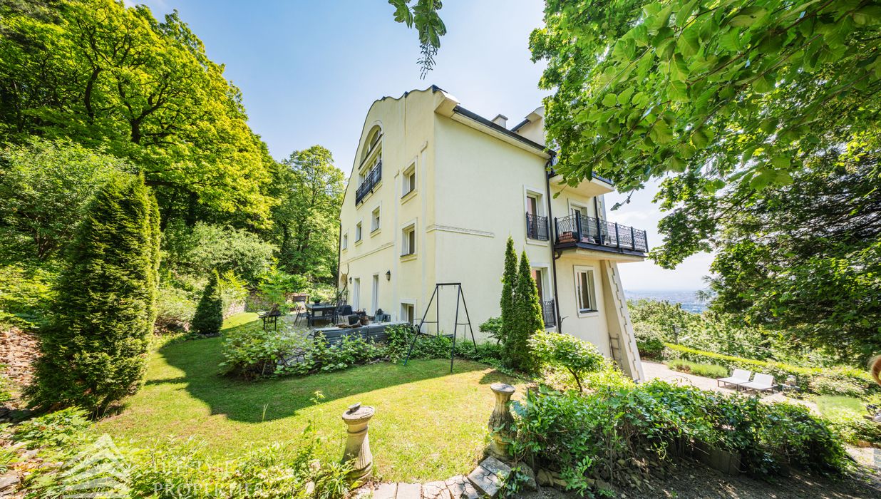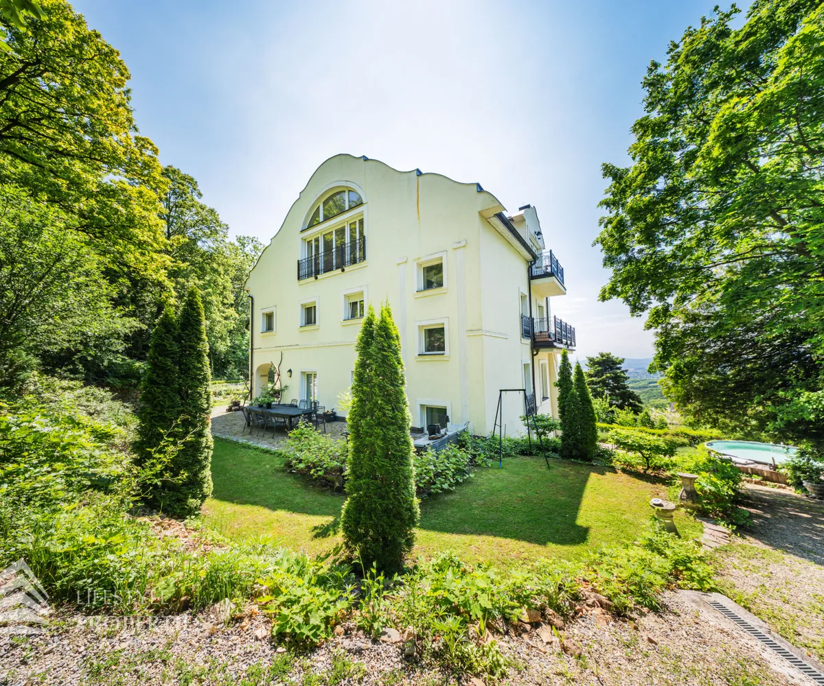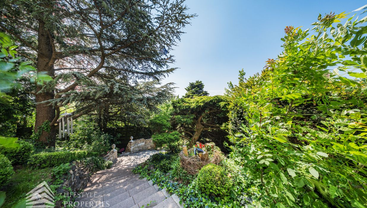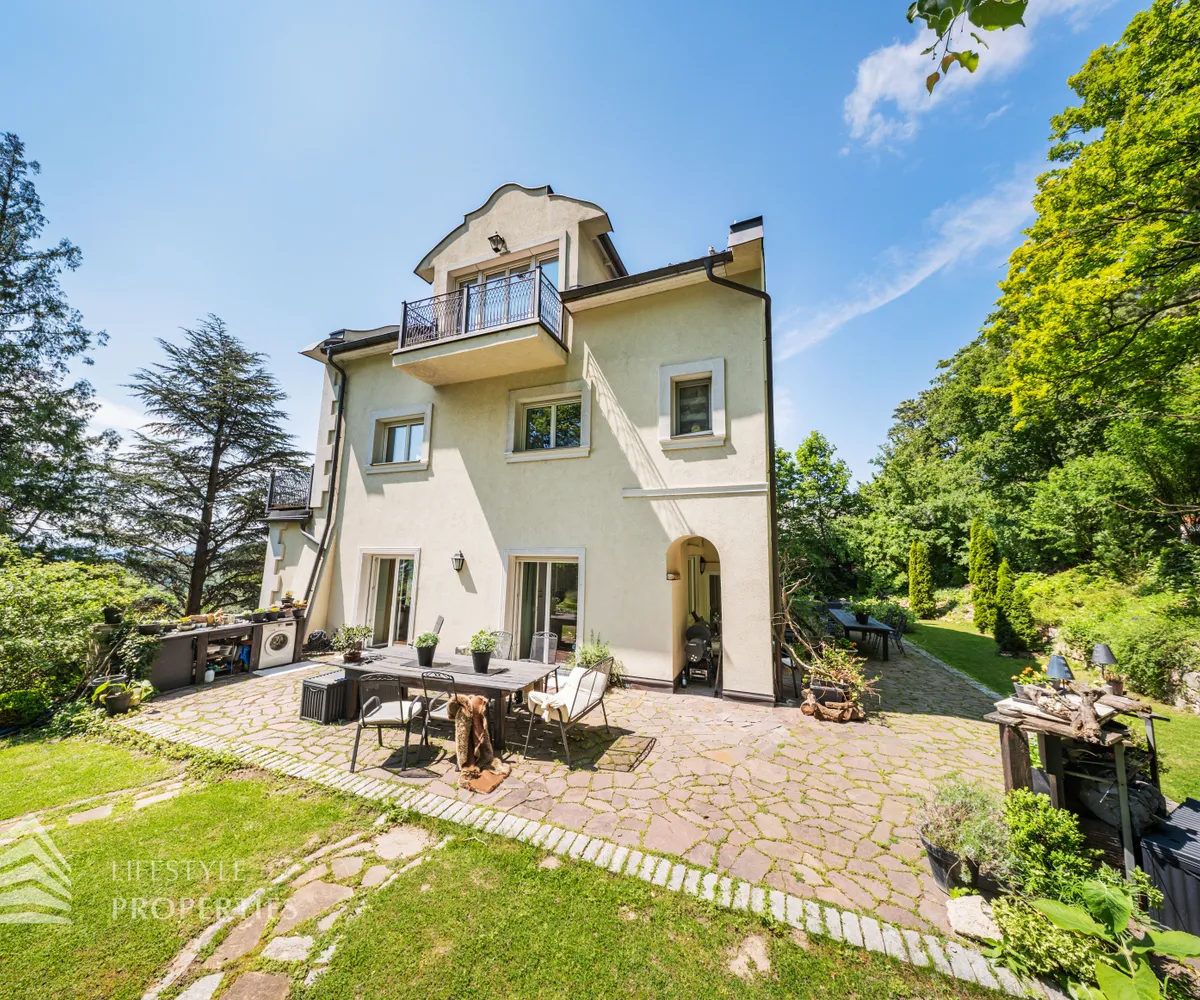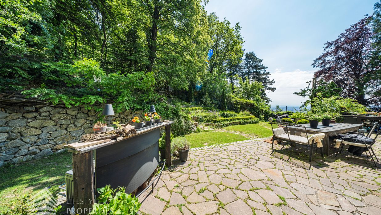 Das traumhafte Anwesen wurde im Jahr 1877 auf einem Grundstück mit einer unglaublichen Fläche von ca. 2.870 m² erbaut und befindet sich in absoluter Toplage von Döbling. Die Immobilie bietet eine Wohnfläche von ca. 327 m² und wurde im Jahr 2010 generalsaniert. Sie erstreckt sich über einen bewohnbaren, ebenerdigen Keller, ein Erdgeschoss, ein Obergeschoss und ein Dachgeschoss und teilt sich auf in acht Zimmer, vier Bäder, einen Fitnessraum, ein Abstellraum, zwei Schrankräume und ein Gäste-WC. In den Haupträumen treffen Sie auf hochwertigen Parkett sowie Marmor, die Nassräume sind gefliest. Zusätzlich verfügt das Anwesen über eine Garage mit Platz für drei Autos sowie über fünf Außenstellplätze. Die Highlights des Objekts sind zweifelsohne der weitläufige Garten und der atemberaubende Ausblick bis hin zum Schneeberg.