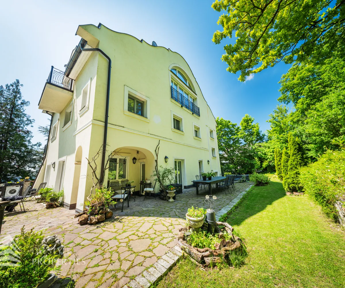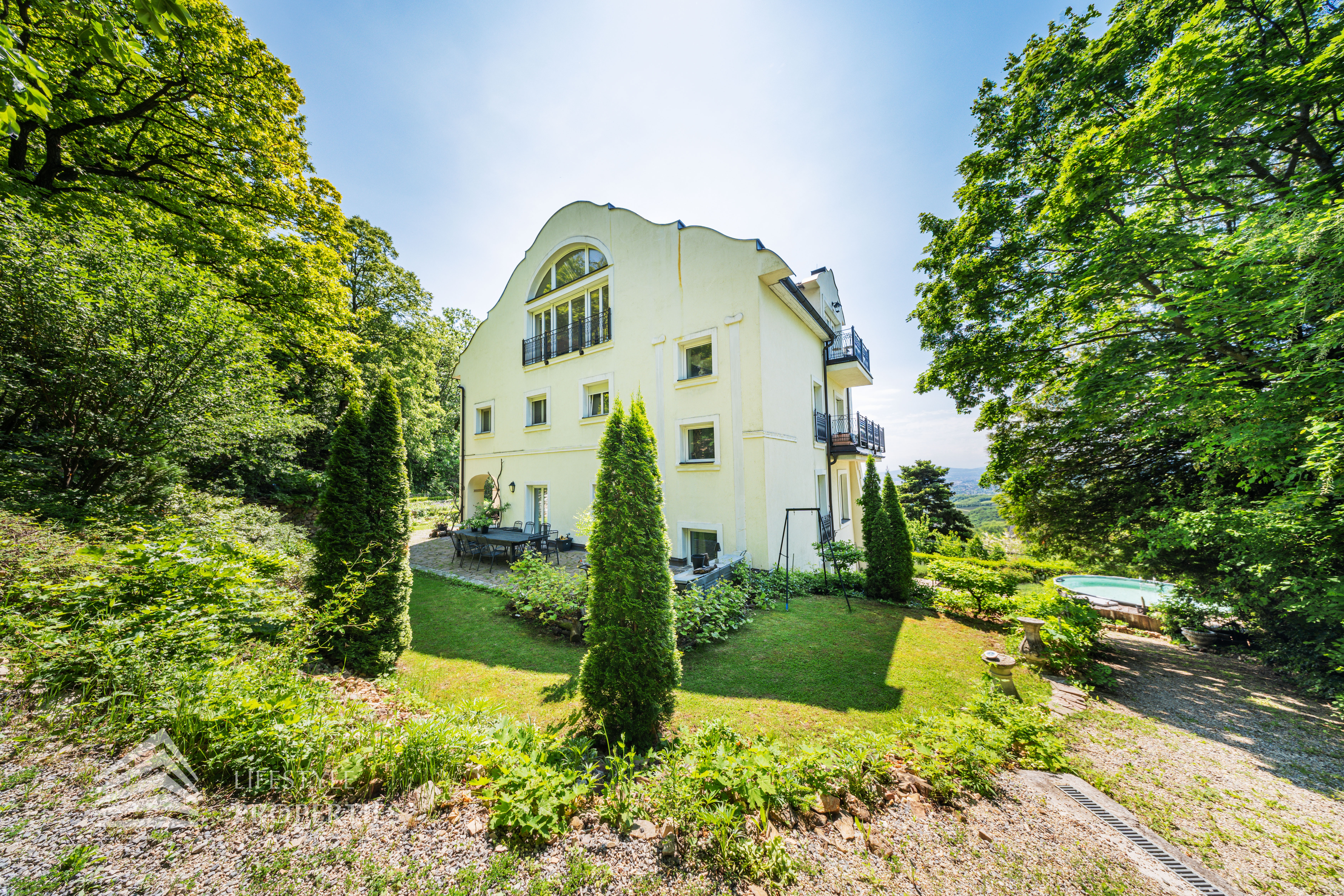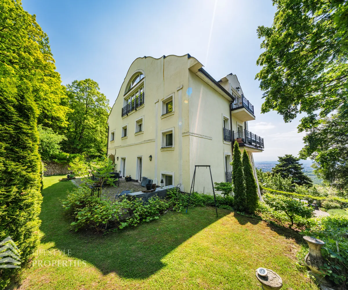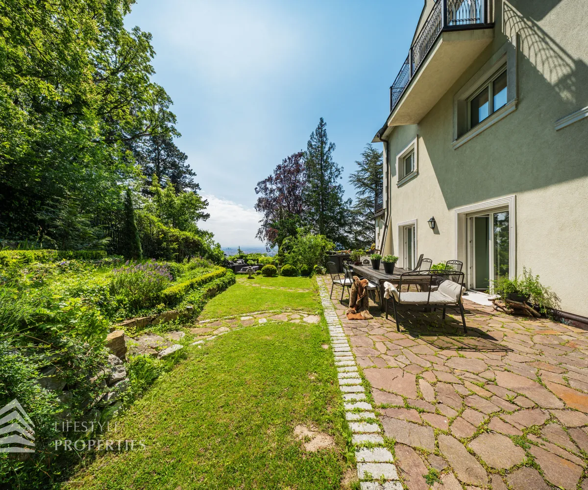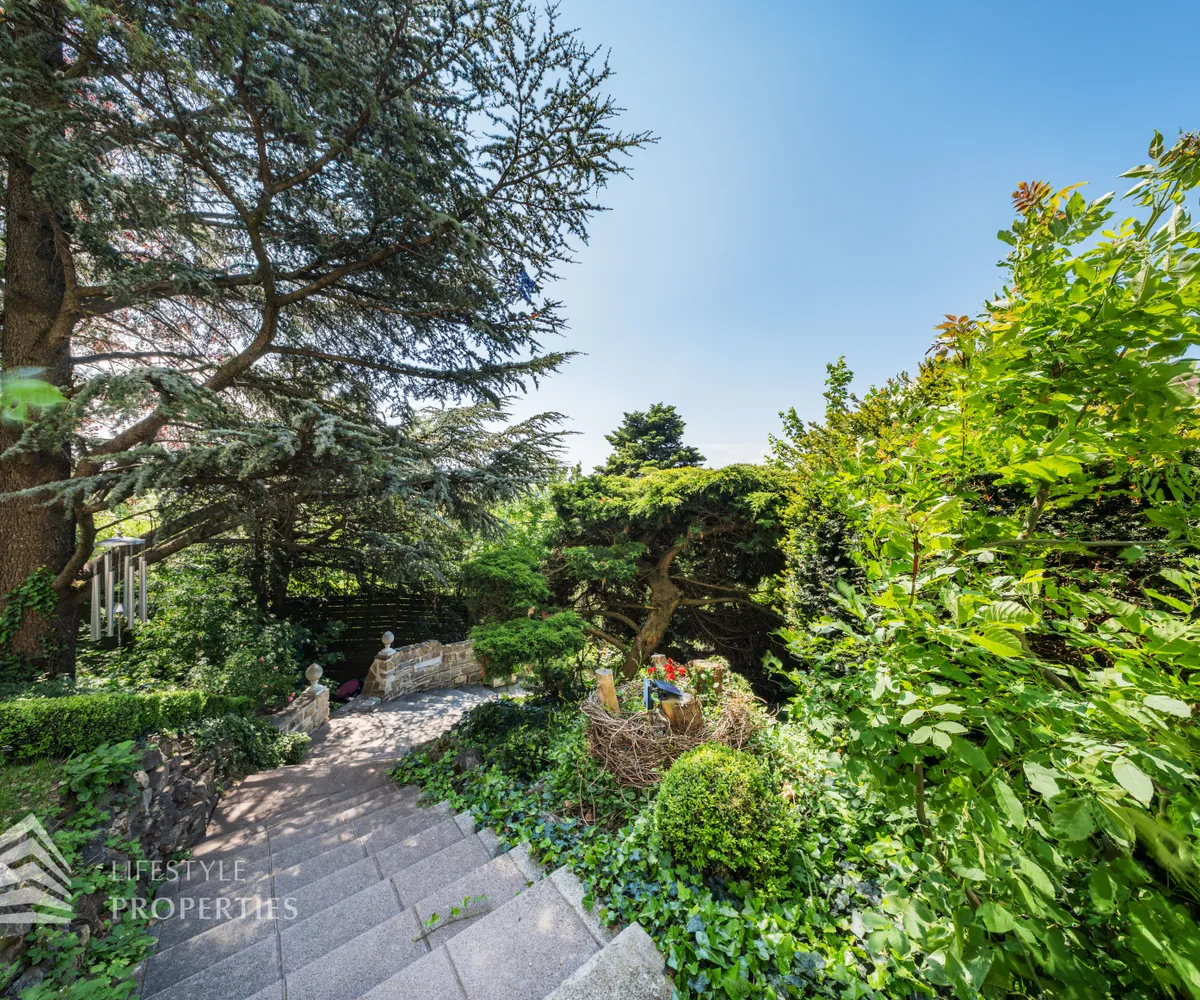 Das traumhafte Anwesen wurde im Jahr 1877 auf einem Grundstück mit einer unglaublichen Fläche von ca. 2.870 m² erbaut und befindet sich in absoluter Toplage von Döbling. Die Immobilie bietet eine Wohnfläche von ca. 327 m² und wurde im Jahr 2010 generalsaniert. Sie erstreckt sich über einen bewohnbaren, ebenerdigen Keller, ein Erdgeschoss, ein Obergeschoss und ein Dachgeschoss und teilt sich auf in acht Zimmer, vier Bäder, einen Fitnessraum, ein Abstellraum, zwei Schrankräume und ein Gäste-WC. In den Haupträumen treffen Sie auf hochwertigen Parkett sowie Marmor, die Nassräume sind gefliest. Zusätzlich verfügt das Anwesen über eine Garage mit Platz für drei Autos sowie über fünf Außenstellplätze. Die Highlights des Objekts sind zweifelsohne der weitläufige Garten und der atemberaubende Ausblick bis hin zum Schneeberg.
