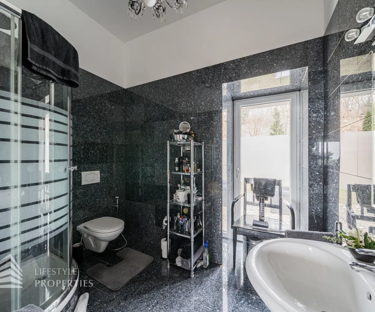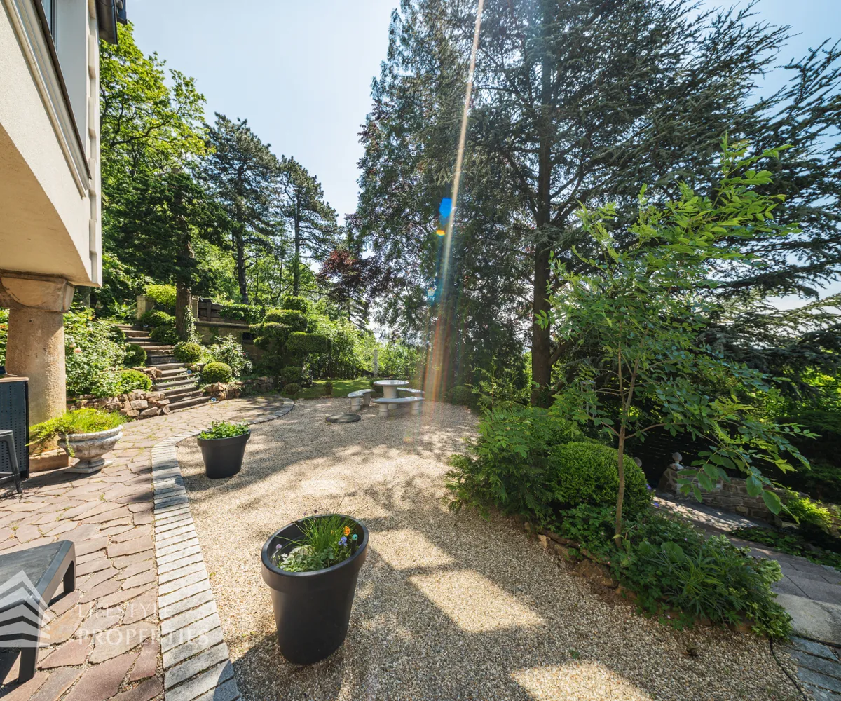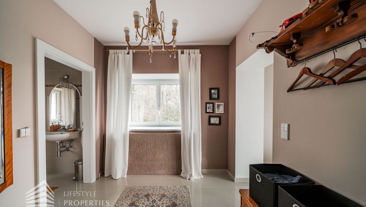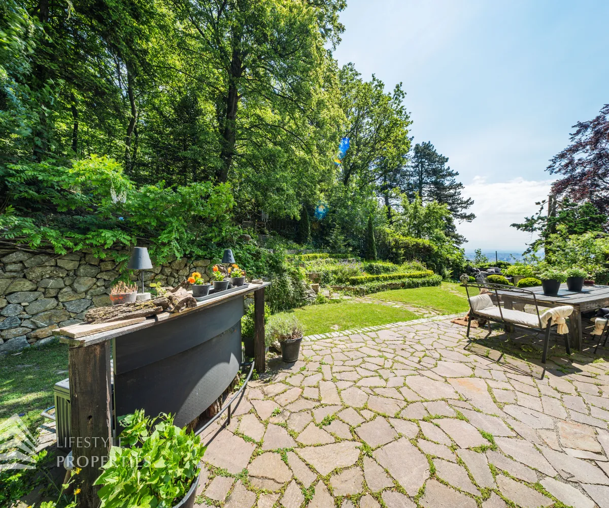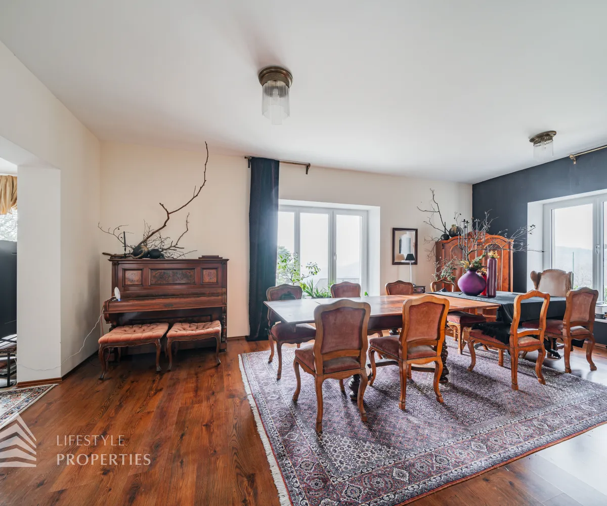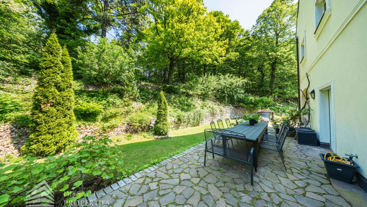 Das traumhafte Anwesen wurde im Jahr 1877 auf einem Grundstück mit einer unglaublichen Fläche von ca. 2.870 m² erbaut und befindet sich in absoluter Toplage von Döbling. Die Immobilie bietet eine Wohnfläche von ca. 327 m² und wurde im Jahr 2010 generalsaniert. Sie erstreckt sich über einen bewohnbaren, ebenerdigen Keller, ein Erdgeschoss, ein Obergeschoss und ein Dachgeschoss und teilt sich auf in acht Zimmer, vier Bäder, einen Fitnessraum, ein Abstellraum, zwei Schrankräume und ein Gäste-WC. In den Haupträumen treffen Sie auf hochwertigen Parkett sowie Marmor, die Nassräume sind gefliest. Zusätzlich verfügt das Anwesen über eine Garage mit Platz für drei Autos sowie über fünf Außenstellplätze. Die Highlights des Objekts sind zweifelsohne der weitläufige Garten und der atemberaubende Ausblick bis hin zum Schneeberg.