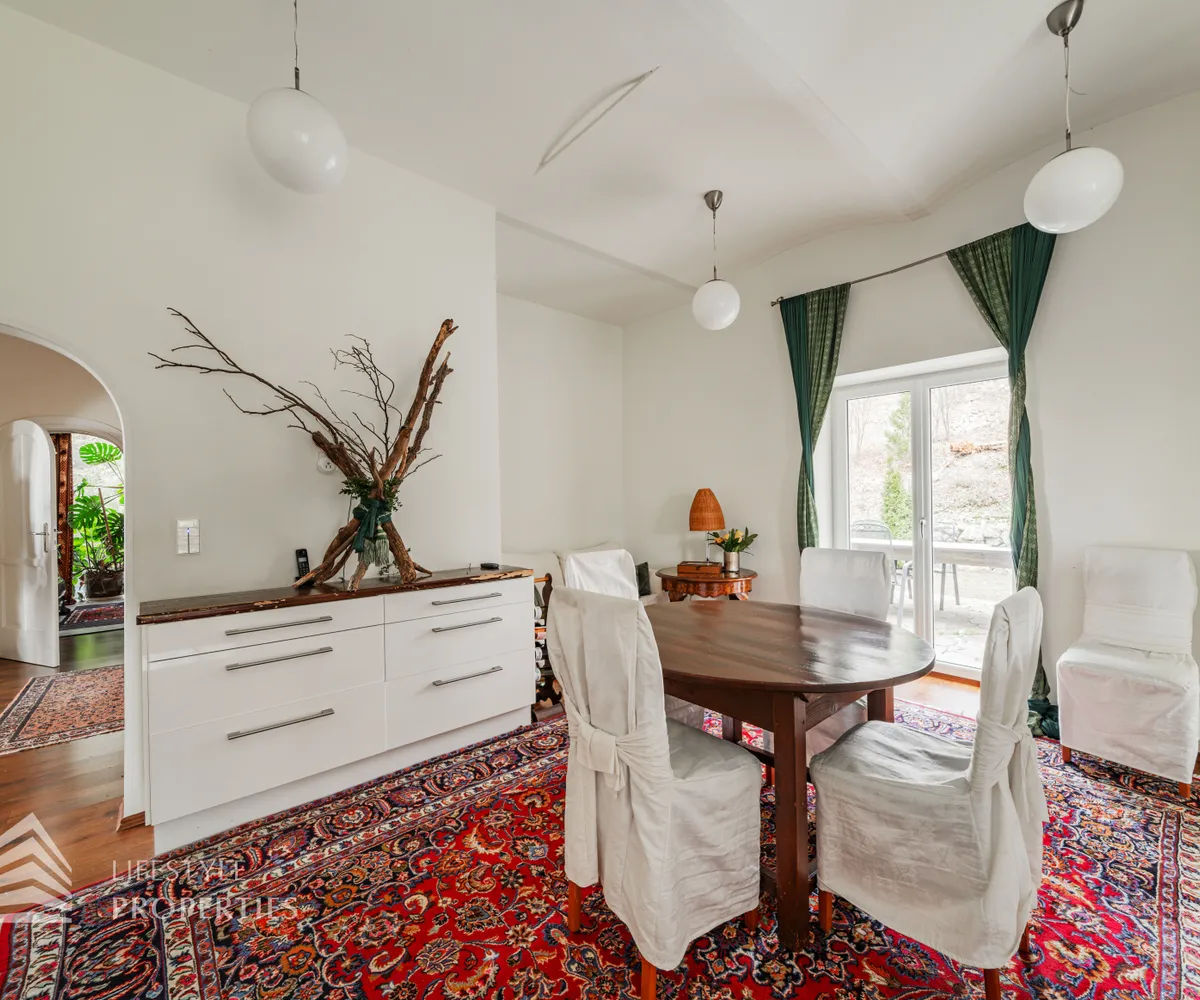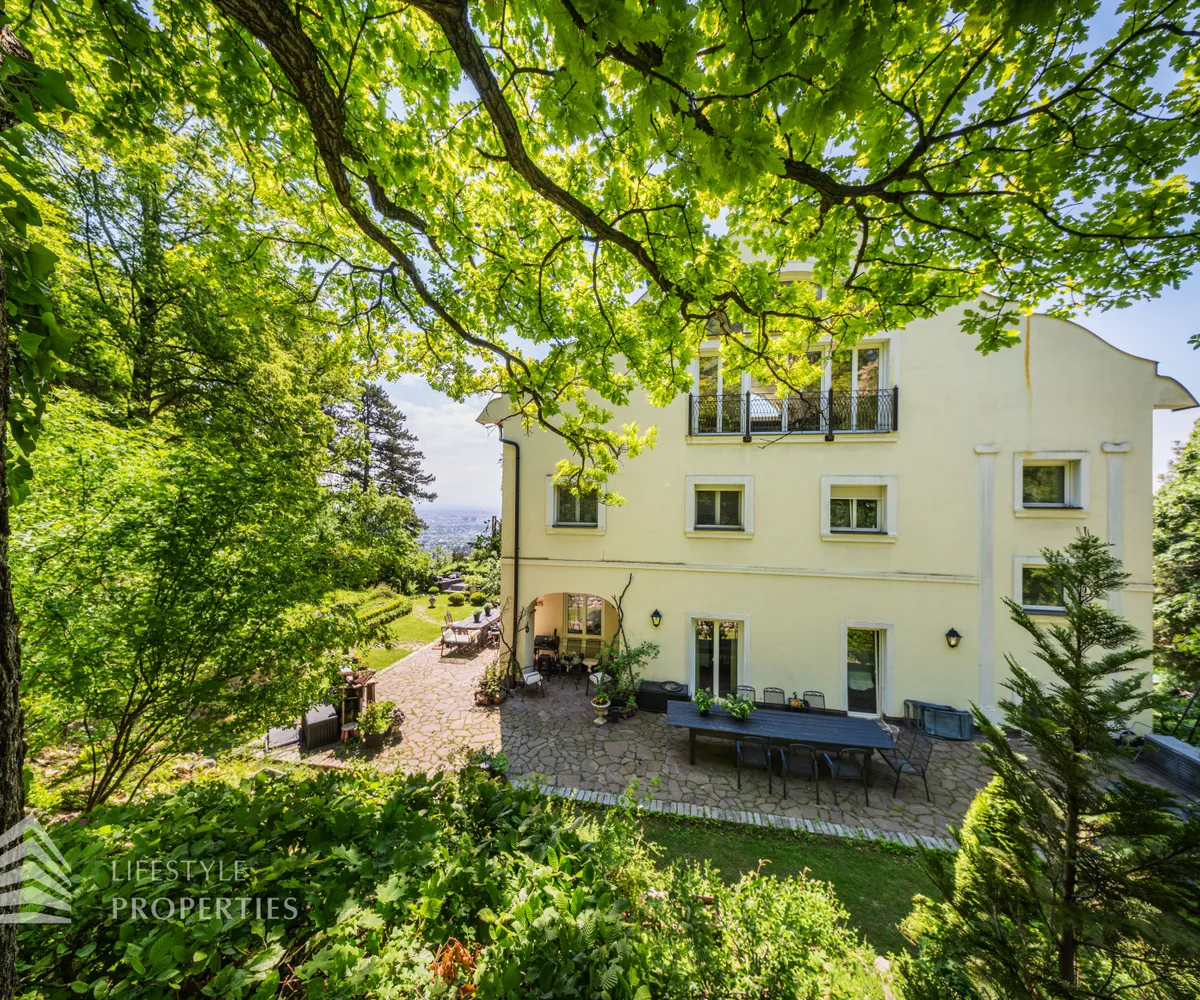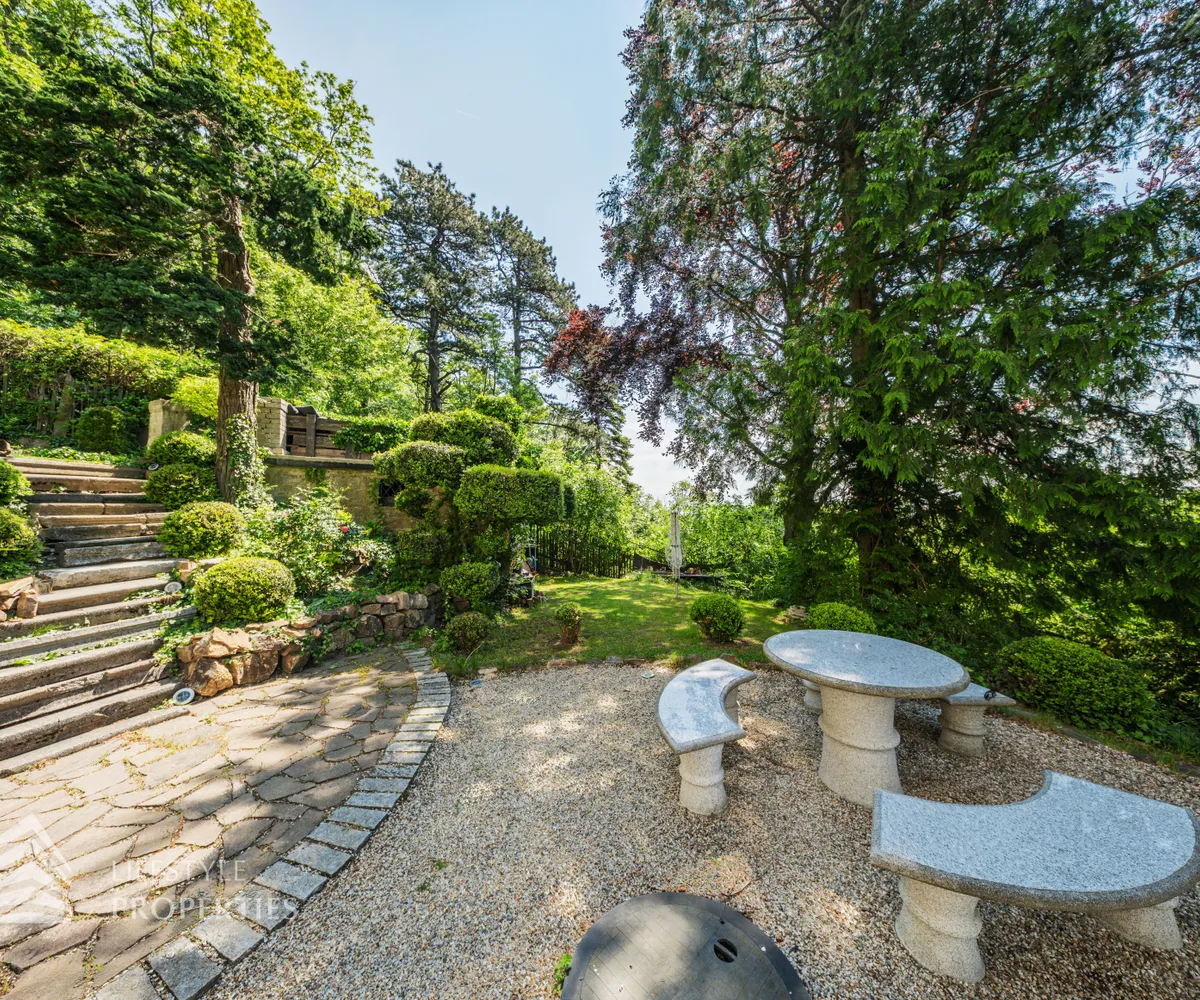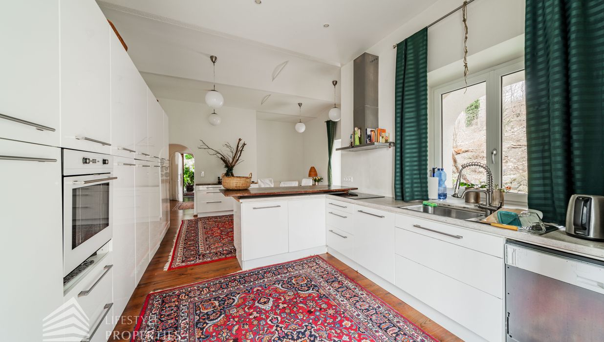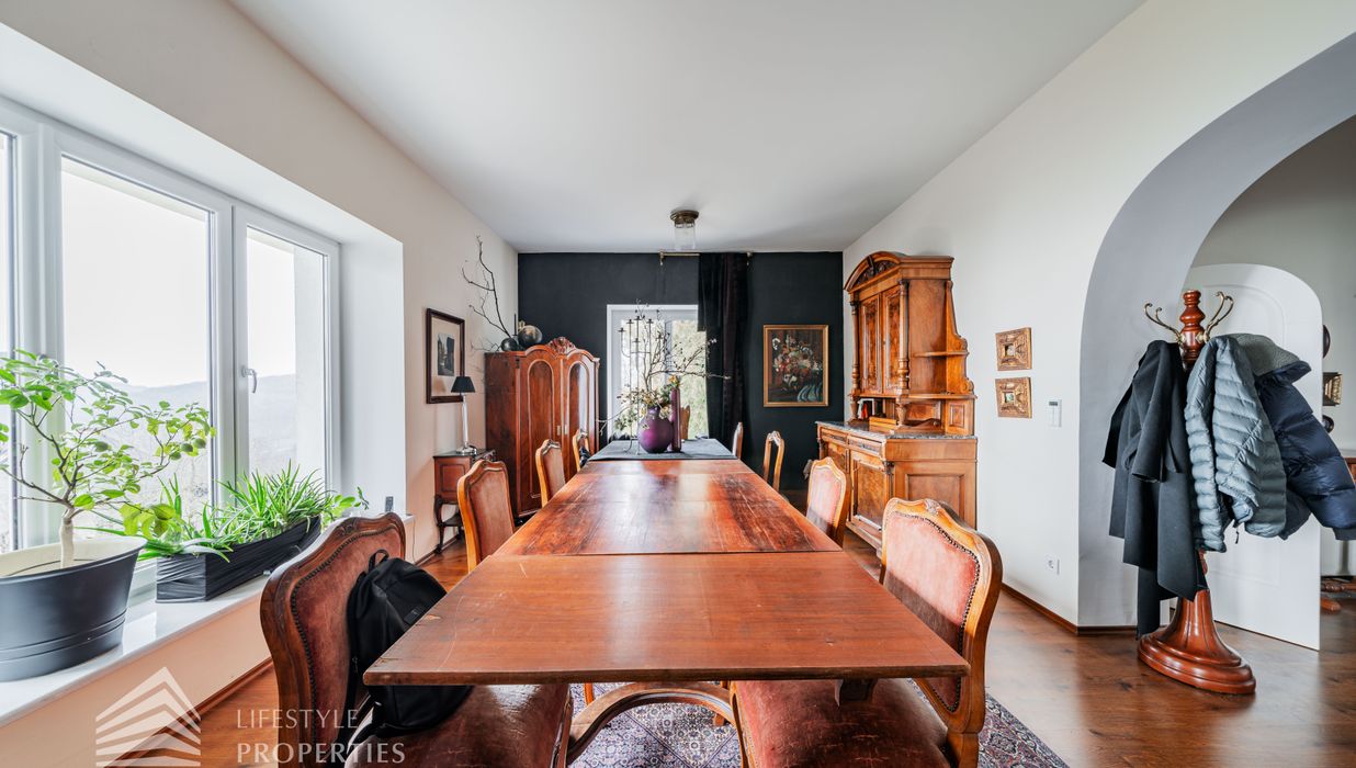 Das traumhafte Anwesen wurde im Jahr 1877 auf einem Grundstück mit einer unglaublichen Fläche von ca. 2.870 m² erbaut und befindet sich in absoluter Toplage von Döbling. Die Immobilie bietet eine Wohnfläche von ca. 327 m² und wurde im Jahr 2010 generalsaniert. Sie erstreckt sich über einen bewohnbaren, ebenerdigen Keller, ein Erdgeschoss, ein Obergeschoss und ein Dachgeschoss und teilt sich auf in acht Zimmer, vier Bäder, einen Fitnessraum, ein Abstellraum, zwei Schrankräume und ein Gäste-WC. In den Haupträumen treffen Sie auf hochwertigen Parkett sowie Marmor, die Nassräume sind gefliest. Zusätzlich verfügt das Anwesen über eine Garage mit Platz für drei Autos sowie über fünf Außenstellplätze. Die Highlights des Objekts sind zweifelsohne der weitläufige Garten und der atemberaubende Ausblick bis hin zum Schneeberg.