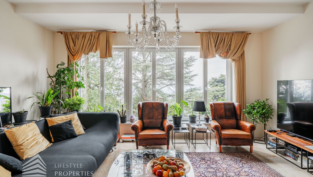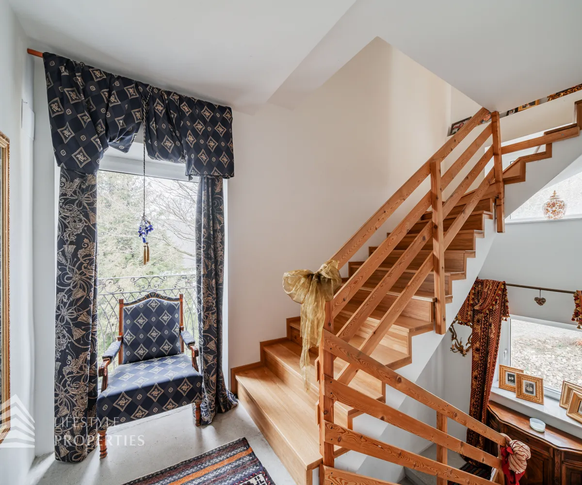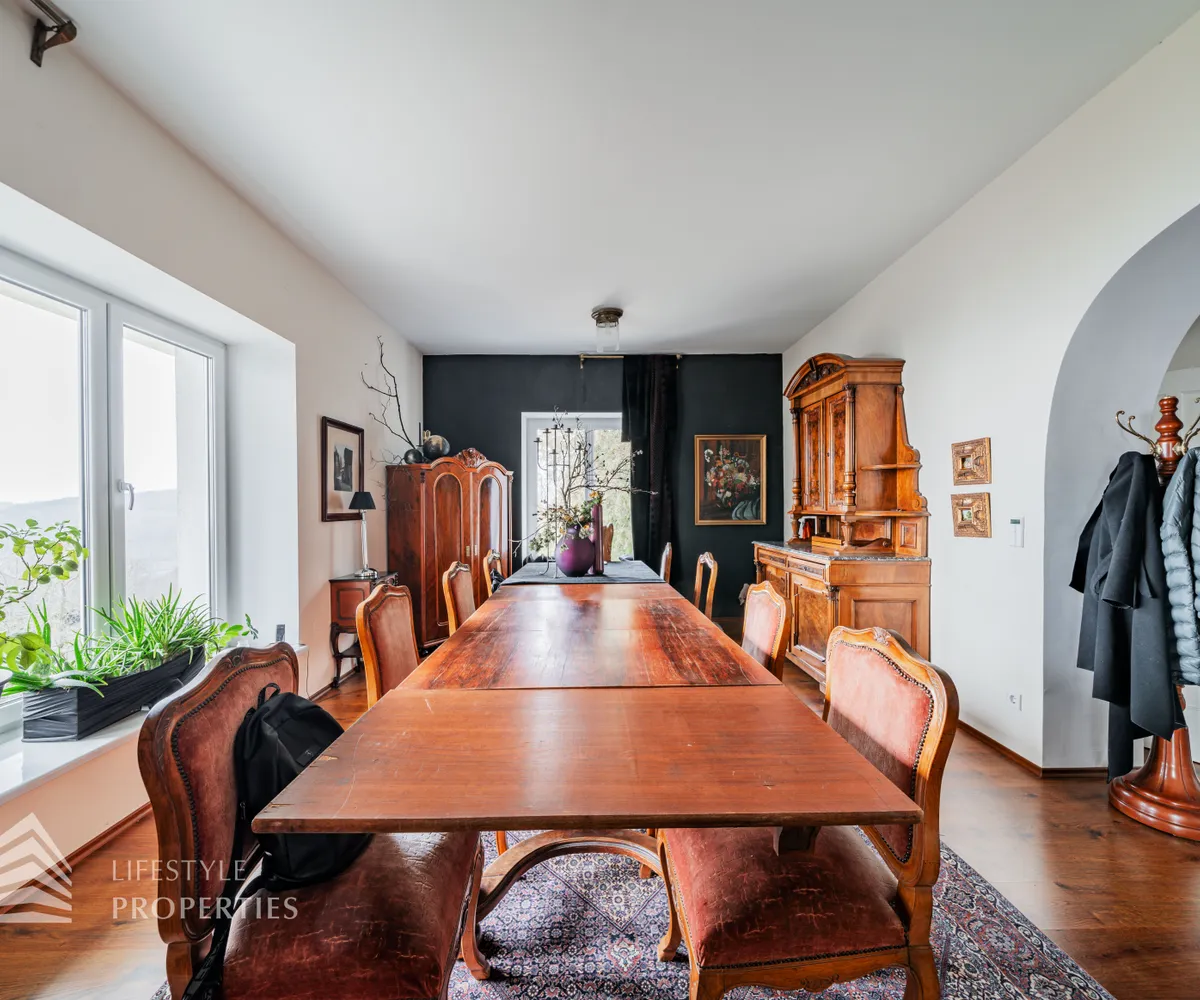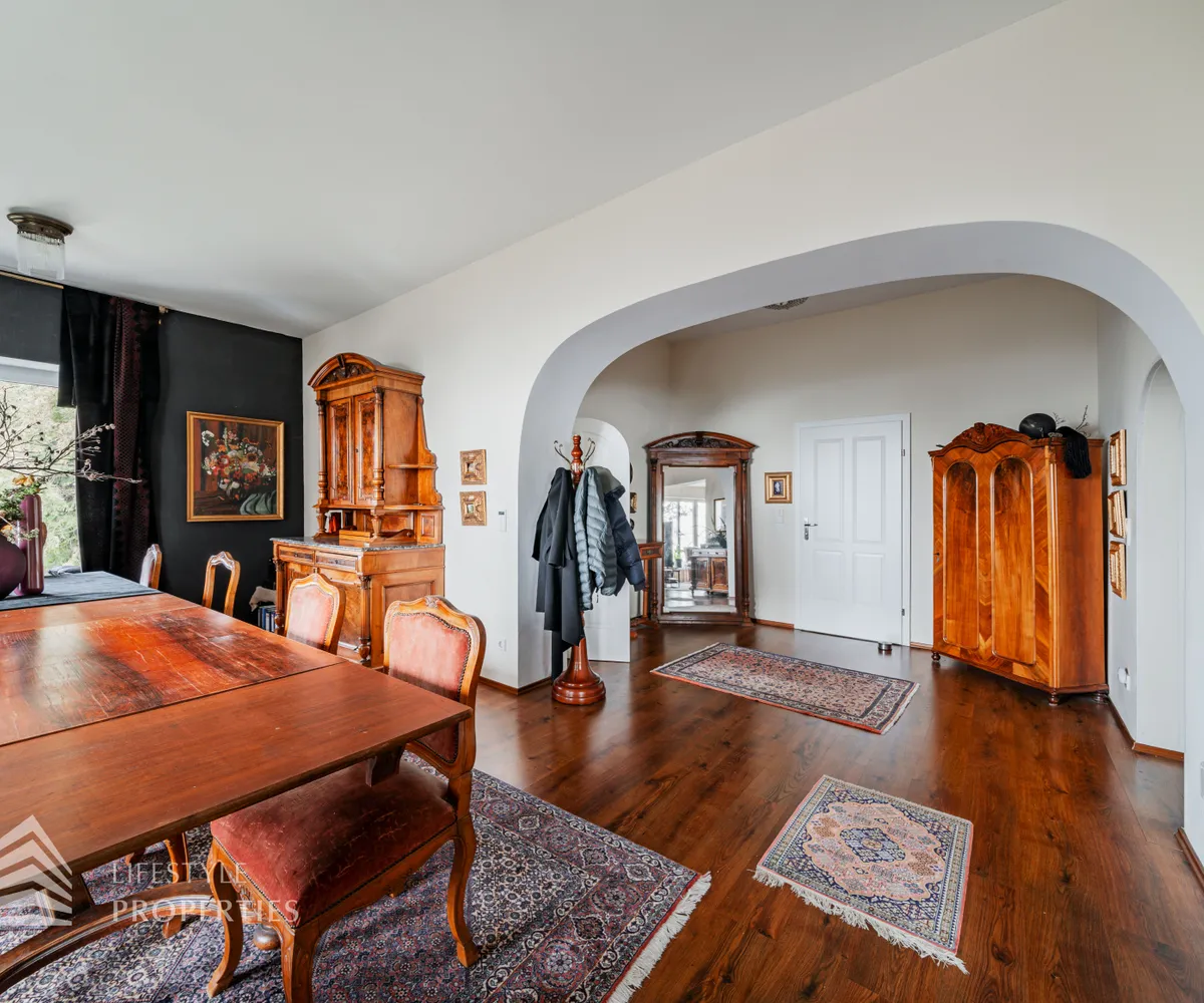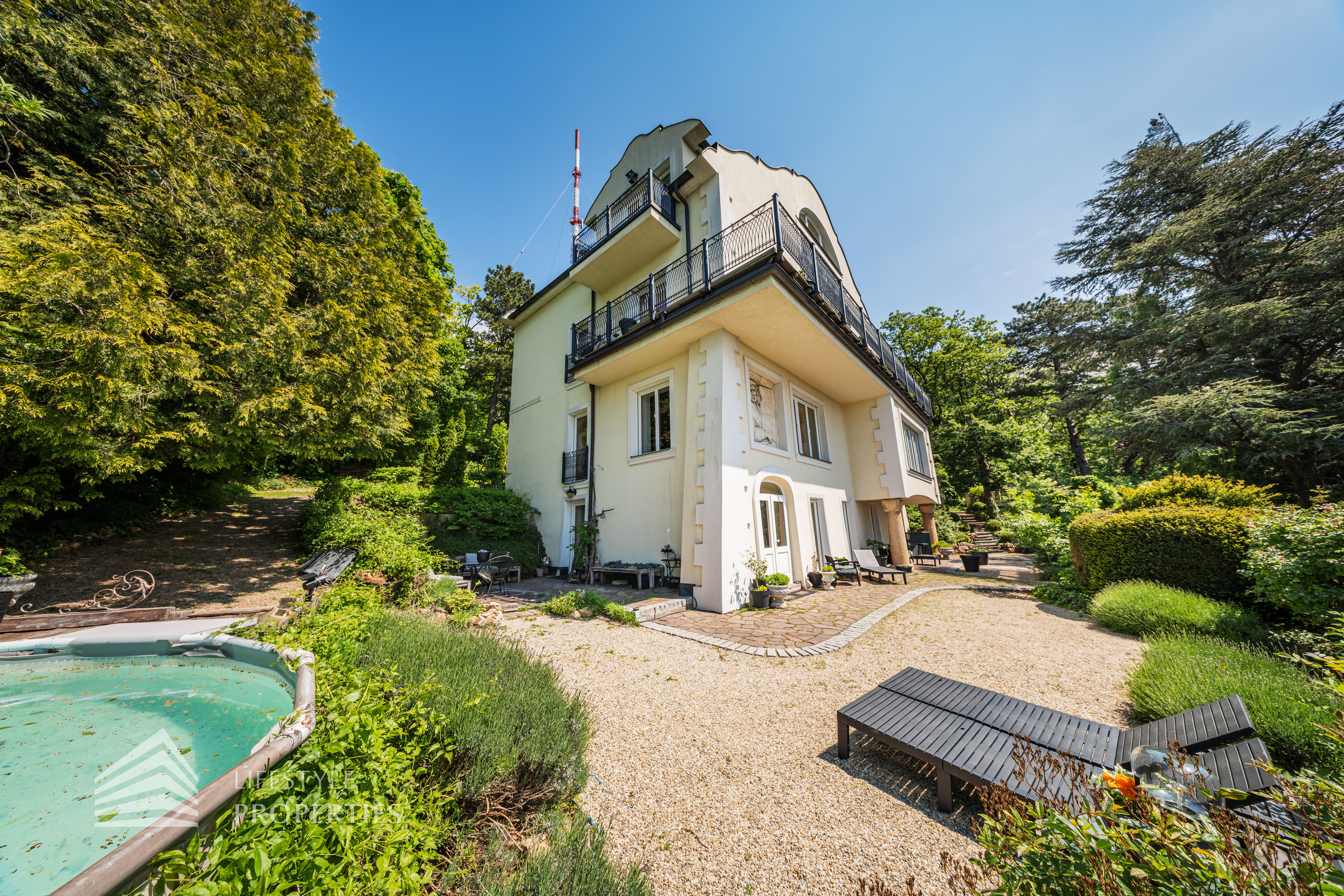 Das traumhafte Anwesen wurde im Jahr 1877 auf einem Grundstück mit einer unglaublichen Fläche von ca. 2.870 m² erbaut und befindet sich in absoluter Toplage von Döbling. Die Immobilie bietet eine Wohnfläche von ca. 327 m² und wurde im Jahr 2010 generalsaniert. Sie erstreckt sich über einen bewohnbaren, ebenerdigen Keller, ein Erdgeschoss, ein Obergeschoss und ein Dachgeschoss und teilt sich auf in acht Zimmer, vier Bäder, einen Fitnessraum, ein Abstellraum, zwei Schrankräume und ein Gäste-WC. In den Haupträumen treffen Sie auf hochwertigen Parkett sowie Marmor, die Nassräume sind gefliest. Zusätzlich verfügt das Anwesen über eine Garage mit Platz für drei Autos sowie über fünf Außenstellplätze. Die Highlights des Objekts sind zweifelsohne der weitläufige Garten und der atemberaubende Ausblick bis hin zum Schneeberg.
