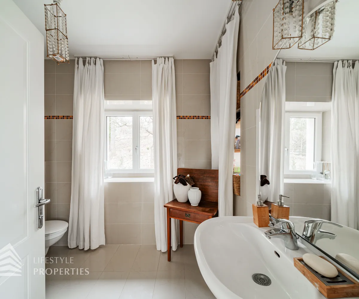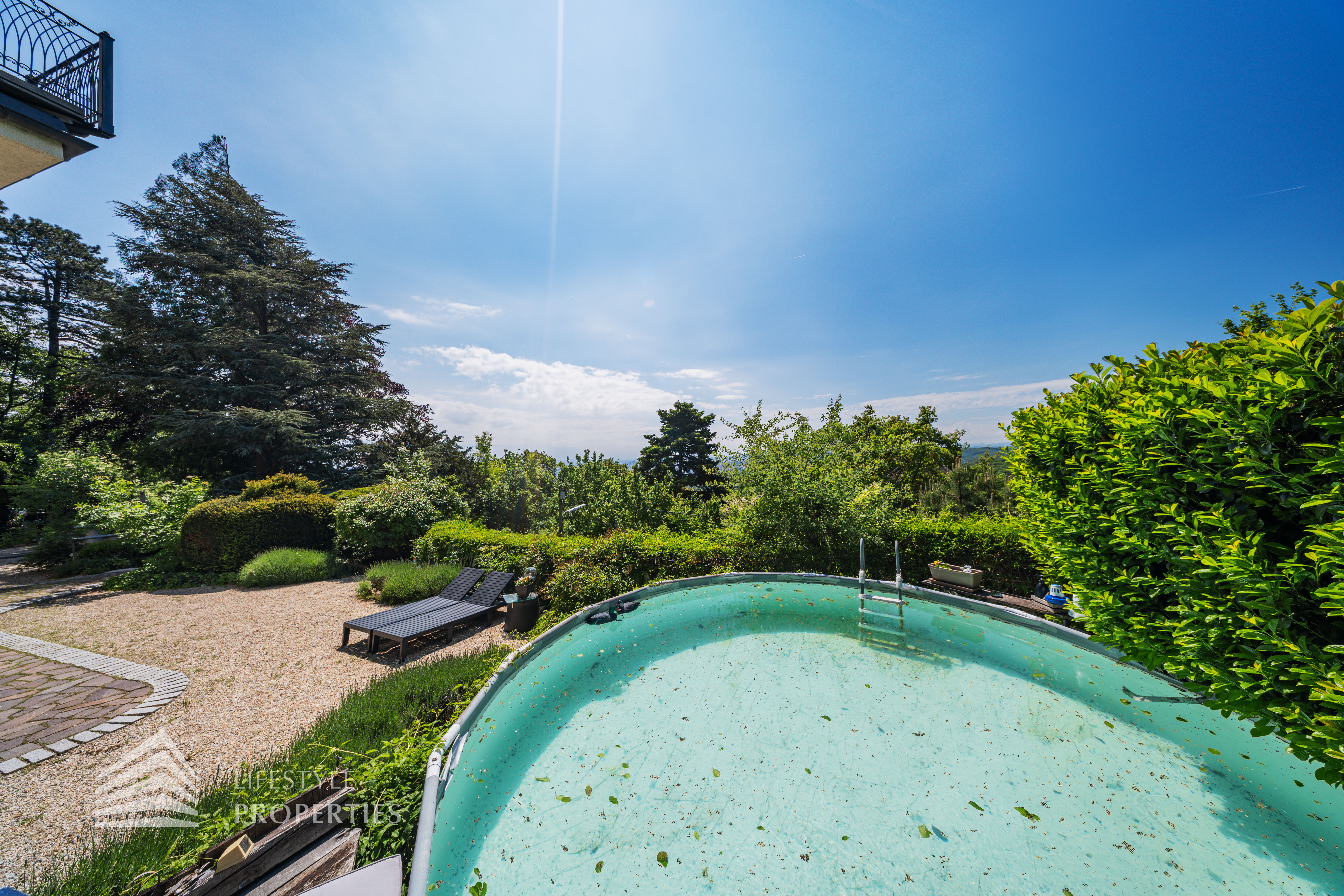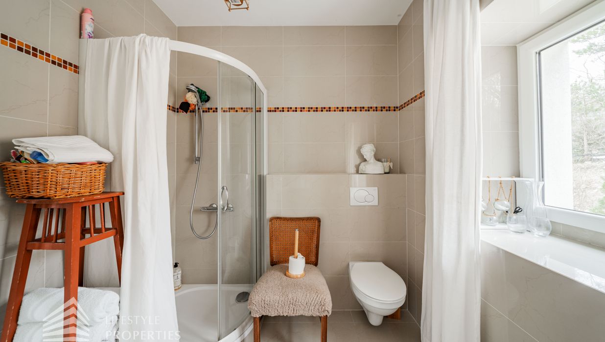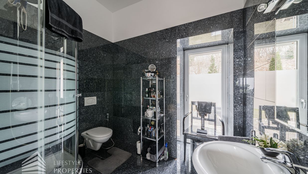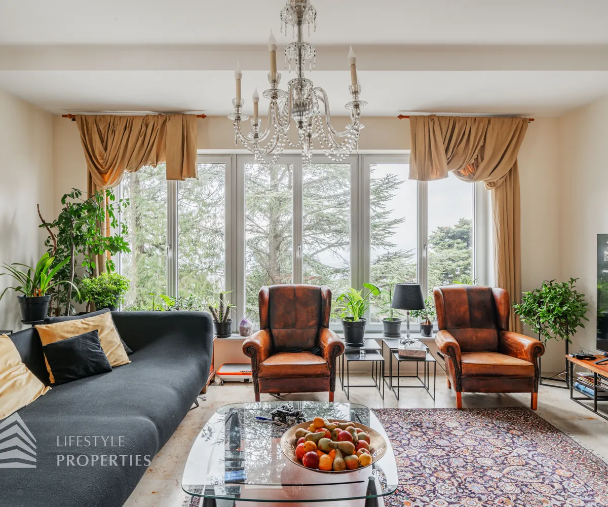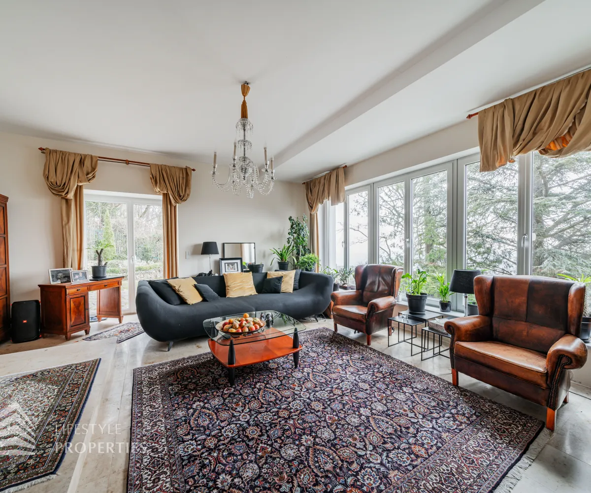 Das traumhafte Anwesen wurde im Jahr 1877 auf einem Grundstück mit einer unglaublichen Fläche von ca. 2.870 m² erbaut und befindet sich in absoluter Toplage von Döbling. Die Immobilie bietet eine Wohnfläche von ca. 327 m² und wurde im Jahr 2010 generalsaniert. Sie erstreckt sich über einen bewohnbaren, ebenerdigen Keller, ein Erdgeschoss, ein Obergeschoss und ein Dachgeschoss und teilt sich auf in acht Zimmer, vier Bäder, einen Fitnessraum, ein Abstellraum, zwei Schrankräume und ein Gäste-WC. In den Haupträumen treffen Sie auf hochwertigen Parkett sowie Marmor, die Nassräume sind gefliest. Zusätzlich verfügt das Anwesen über eine Garage mit Platz für drei Autos sowie über fünf Außenstellplätze. Die Highlights des Objekts sind zweifelsohne der weitläufige Garten und der atemberaubende Ausblick bis hin zum Schneeberg.