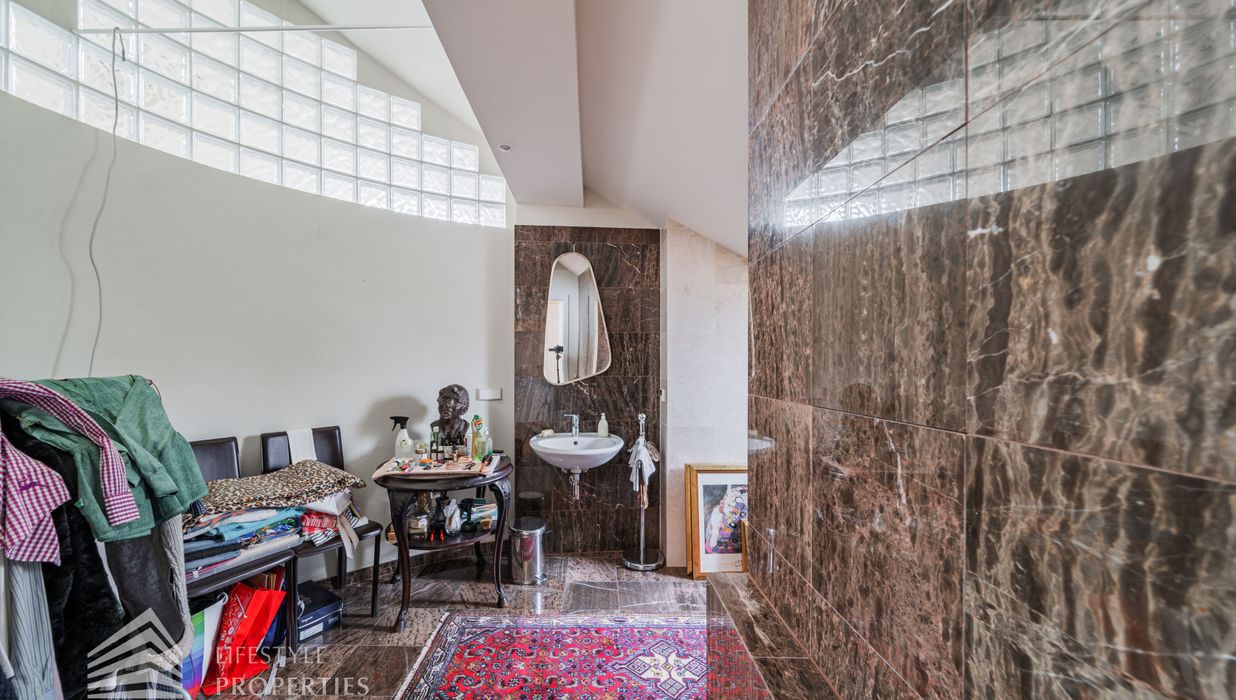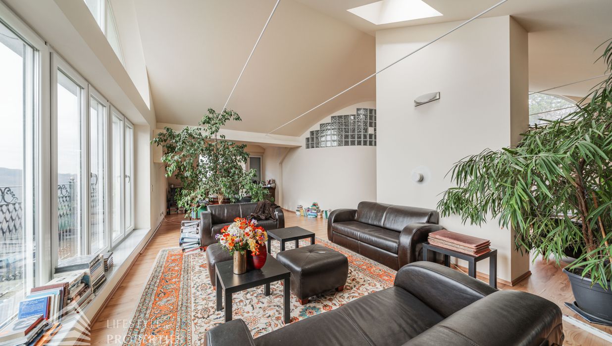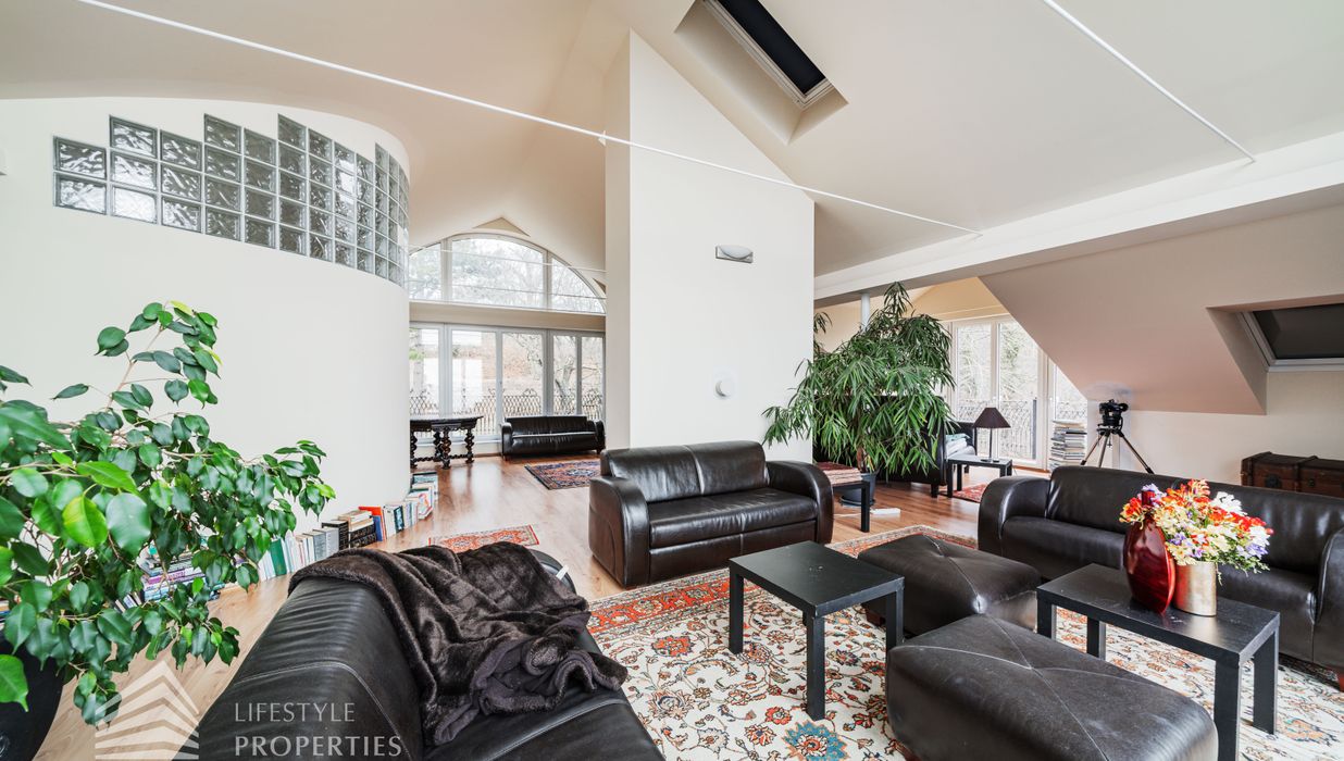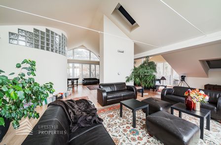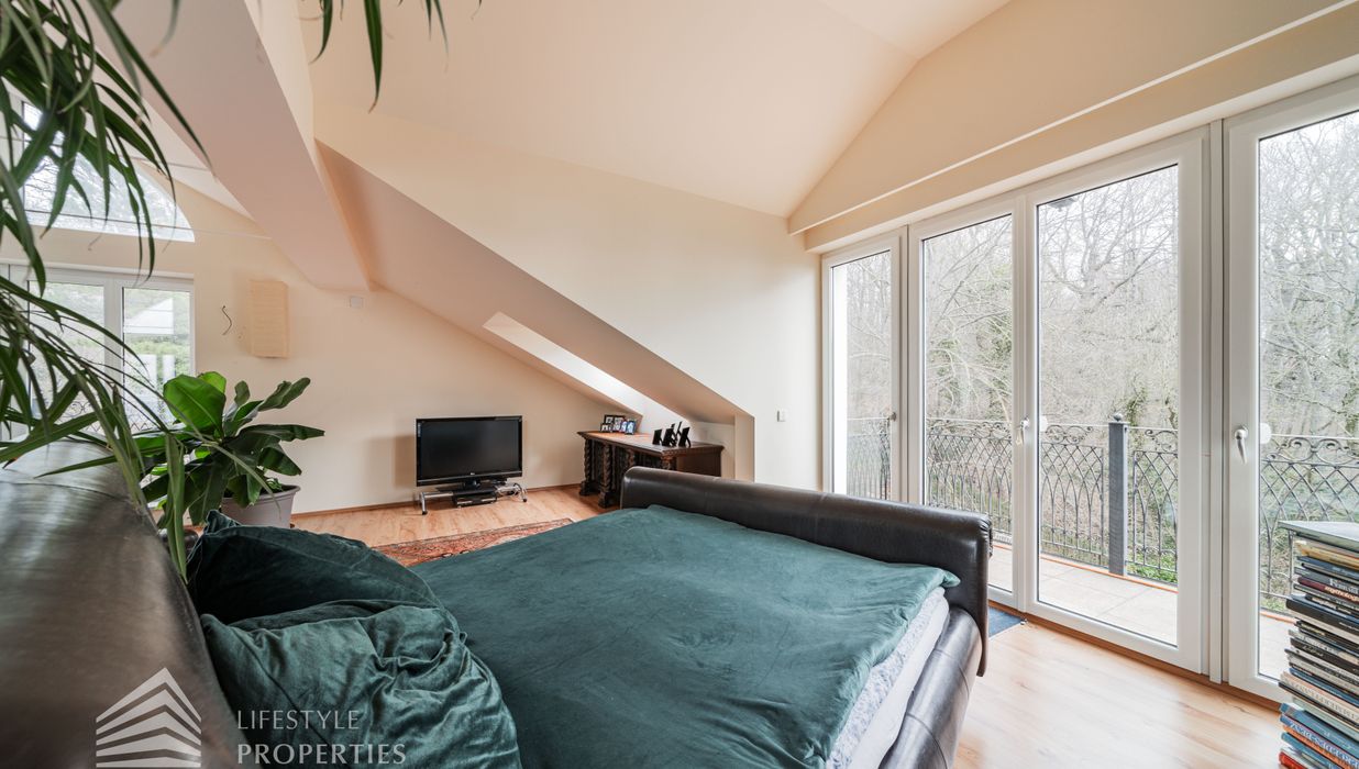 Das loftartige Dachgeschoss erstreckt sich über ca. 111 m², welches unzählige Gestaltungsmöglichkeiten bietet. Eine große Fensterfront bietet Ihnen einen einmaligen Ausblick und lässt den Raum sehr hell und einladend erscheinen. Separat befindet sich ein Badezimmer, welches derzeit über ein Waschbecken und eine Toilette verfügt. Hier gibt es die Möglichkeit, eine Badewanne anzuschließen. Wie in den Plänen ersichtlich, gibt es außerdem, die Möglichkeit einen Personenaufzug einbauen zu lassen. Die Immobilie verfügt über eine Klimaanlage, die Sie im Sommer angenehm kühlt. Beheizt wird die Immobile mittels Fußbodenheizung und Kamin im Erdgeschoss.