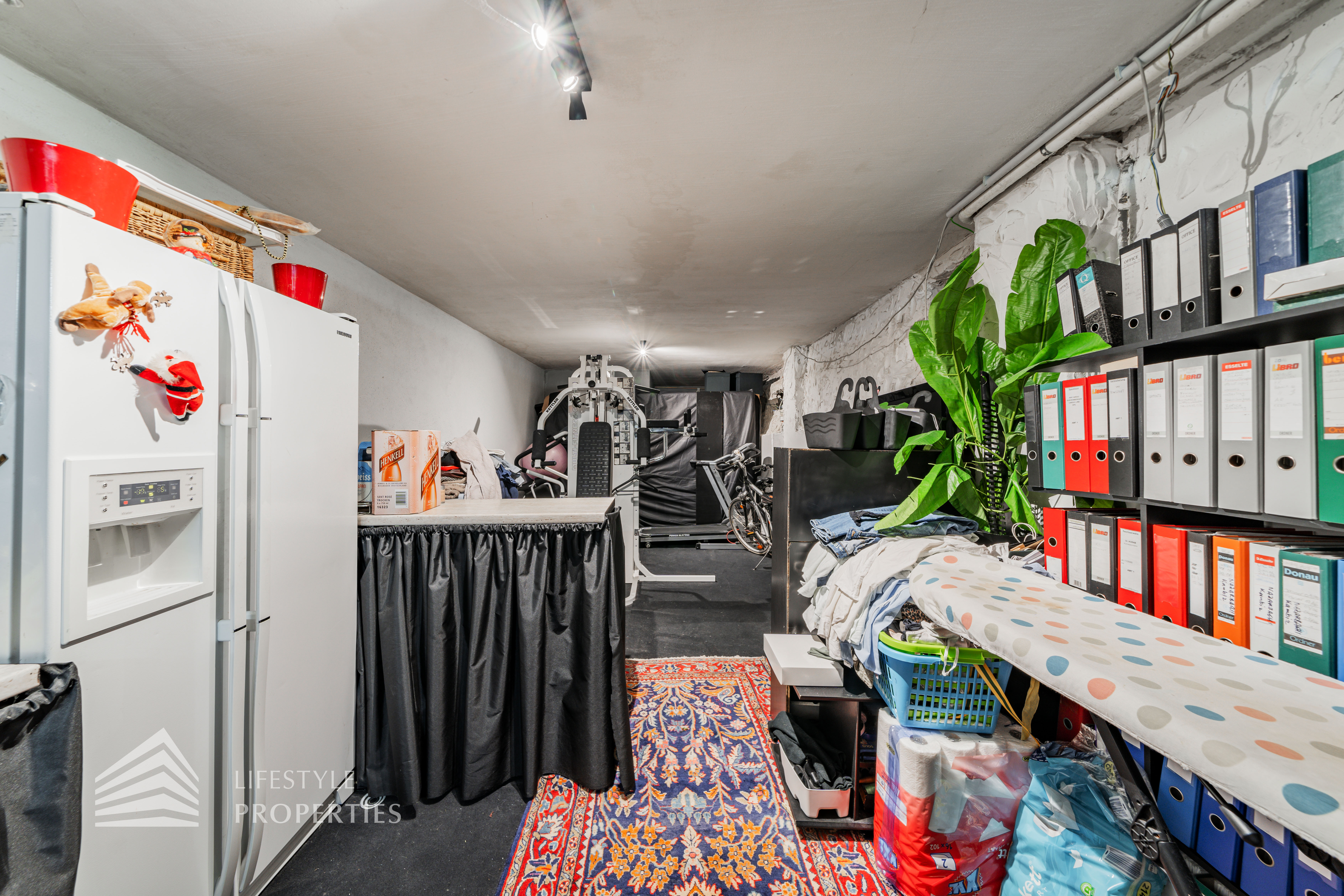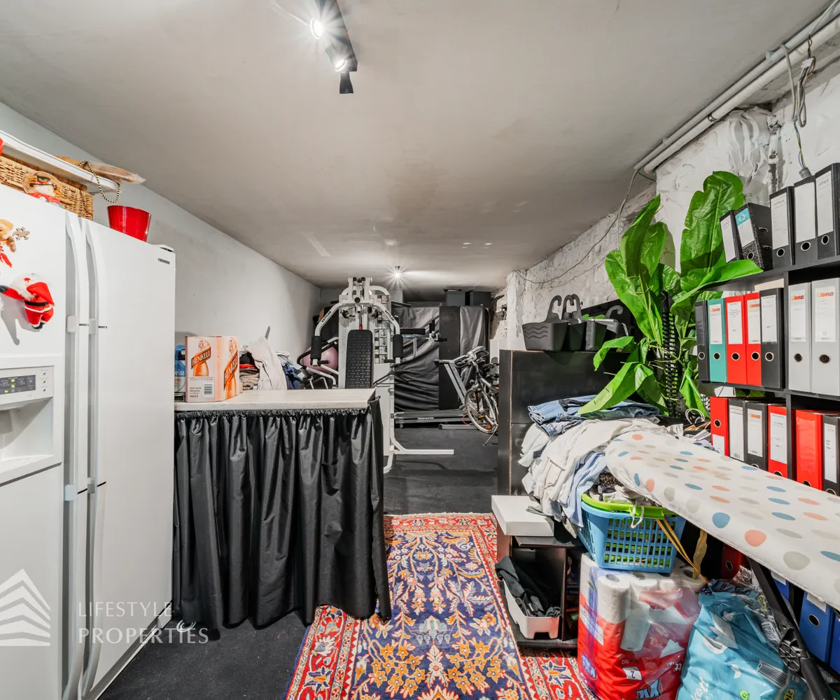 Sie betreten die Immobilie und befinden sich im ebenerdigen Keller. Über einen Gang erreichen Sie hier zentral alle Räumlichkeiten. Ihnen stehen ein Zimmer, ein Zimmer mit einer Küche in der Nische, ein Fitnessraum, ein Abstellraum und ein Bad mit WC zur Verfügung. Von hier aus gelangen Sie außerdem auf eine Terrasse sowie in den Garten, von welchem aus Sie einen atemberaubenden Fernblick genießen können.