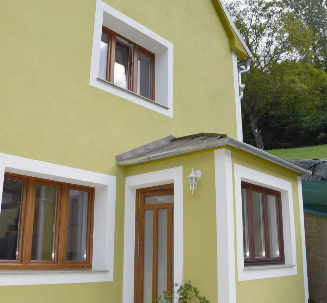 Über die Einfahrt, die genügend Platz für 4 PKWs bereit hält, gelangt man über die schöne Terrasse zum Hauseingang an der Westseite, denn ein weiterer Eingang befindet sich an der Ostseite.