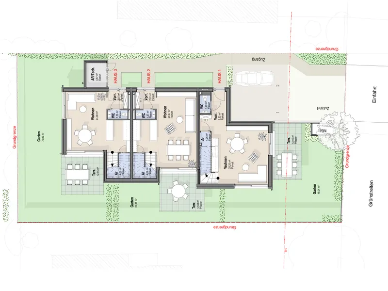 Grundstück: Auf einem großzügigen Grundstück von 515m² erhebt sich diese Villa. Ein exklusives Wohngefühl am Rande der Stadt ist garantiert. Der Garten bietet die Möglichkeit, einen großzügigen Outdoor-Pool zu errichten und so einen privaten Rückzugsort für Entspannung und Erholung zu schaffen.