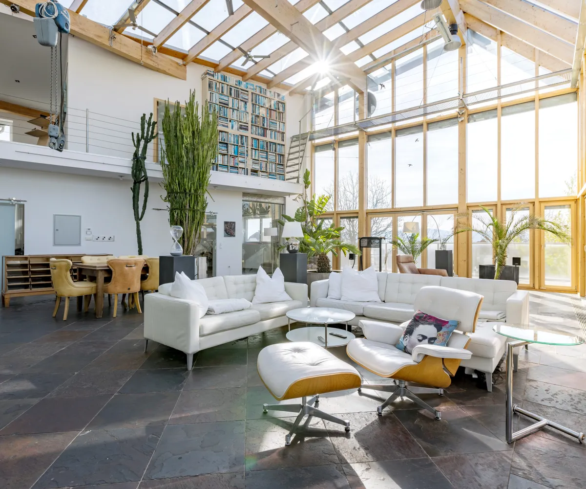 gänzlich verglaste und offene Wohnzimmer
