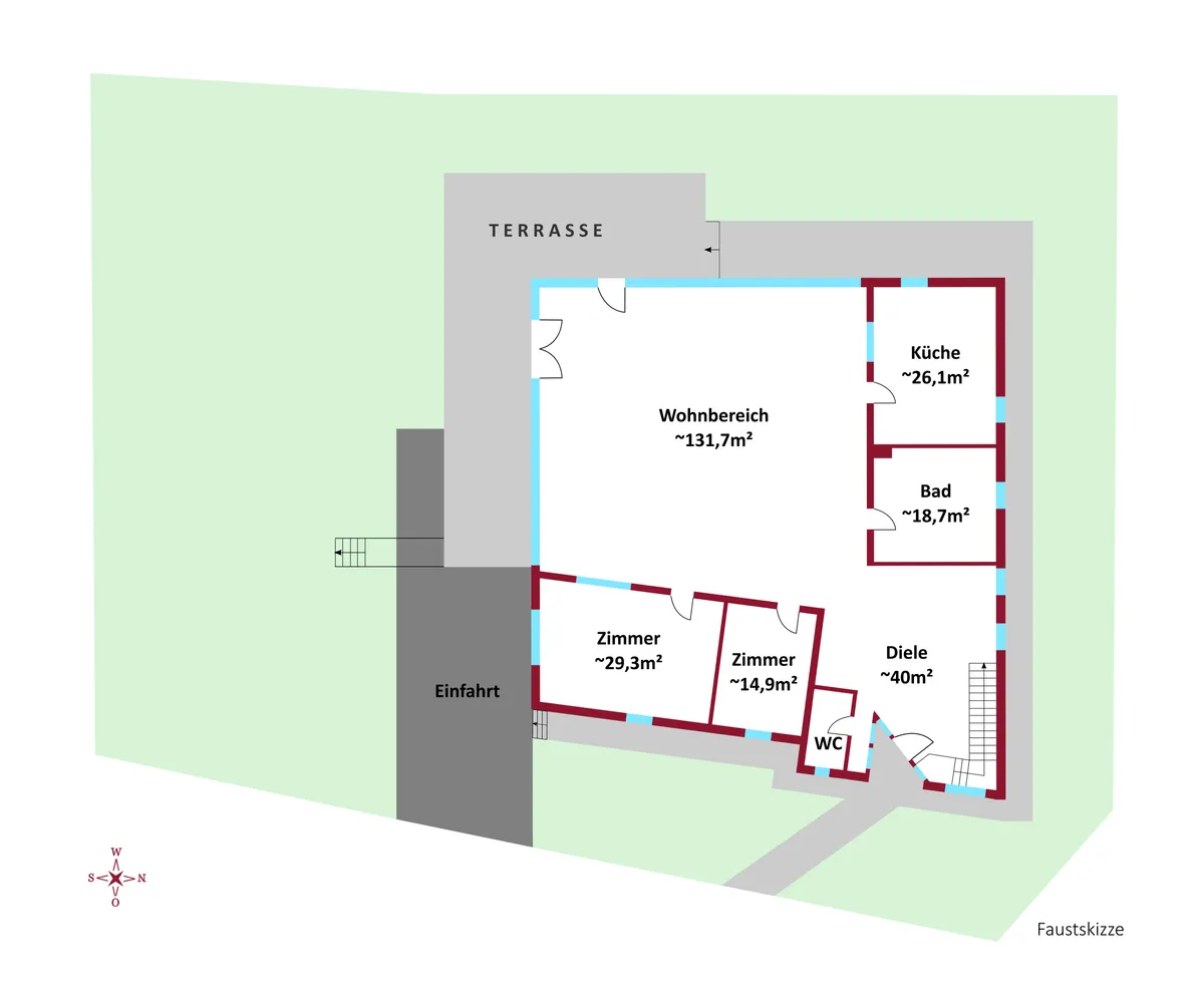 sehr gut strukturierten ~ 420 m²