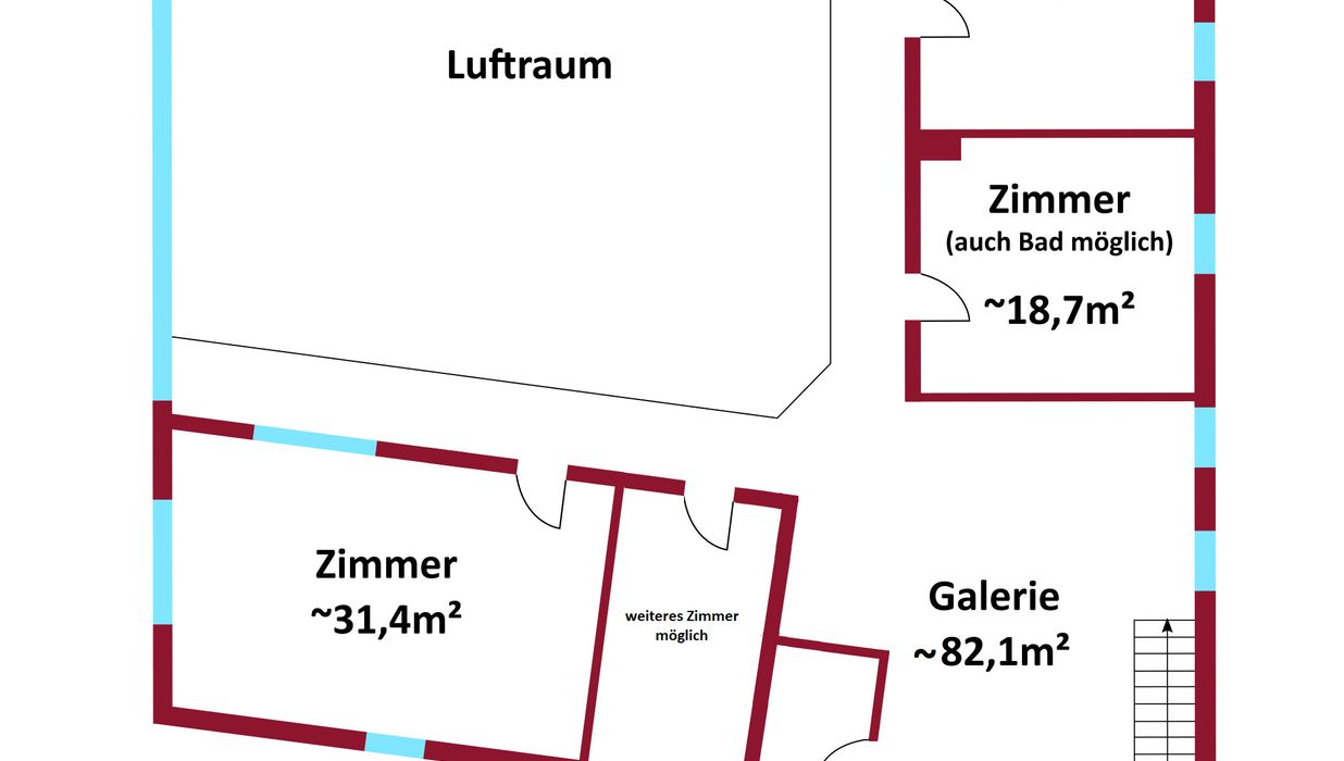 Es besteht zudem die Möglichkeit, durch geringe Adaptierungsarbeiten ein weiteres Zimmer im Obergeschoss dazuzugewinnen. Einen Überblick darüber verschafft Ihnen unser Alternativplan.