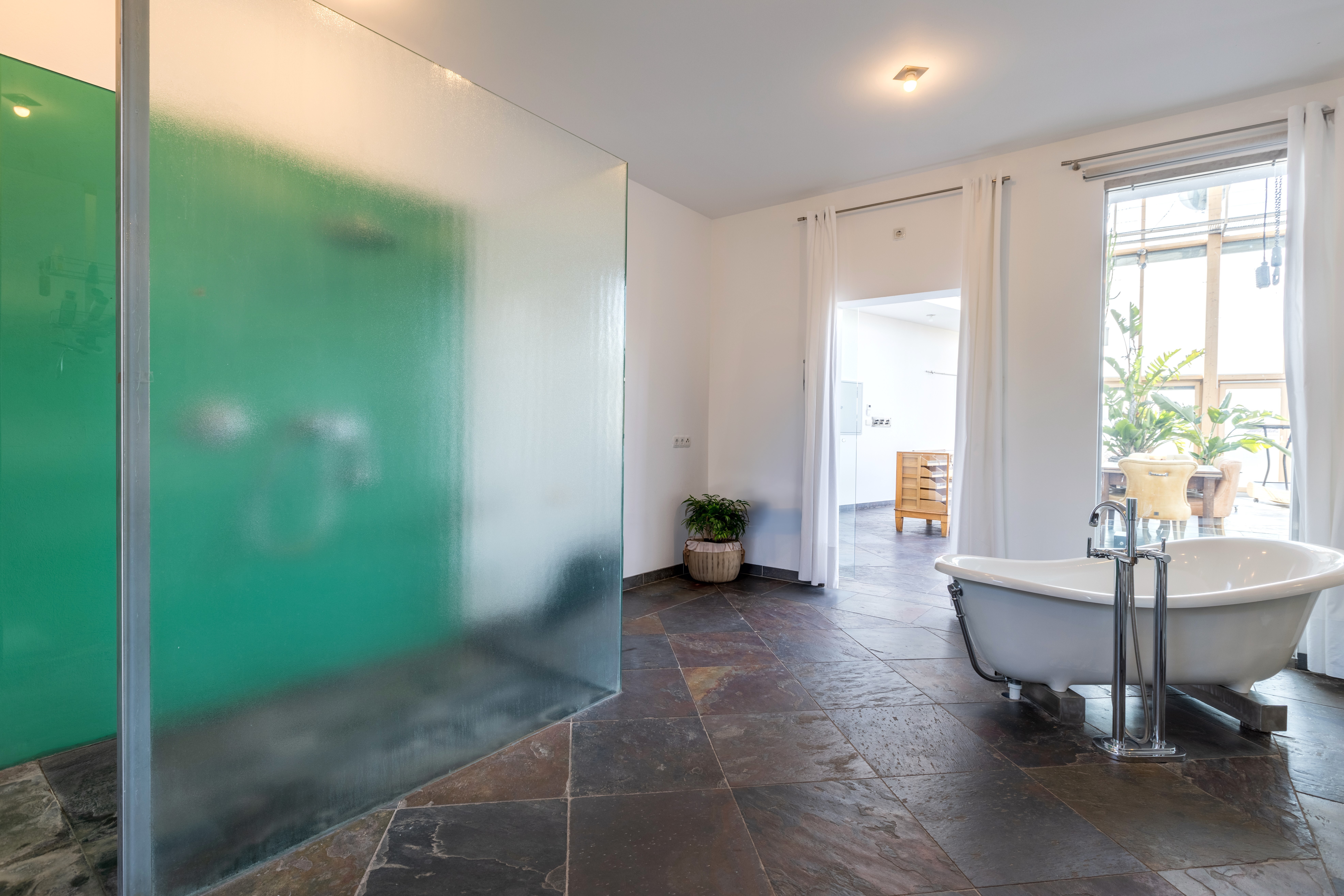 gänzlich verglaste und offene Wohnzimmer