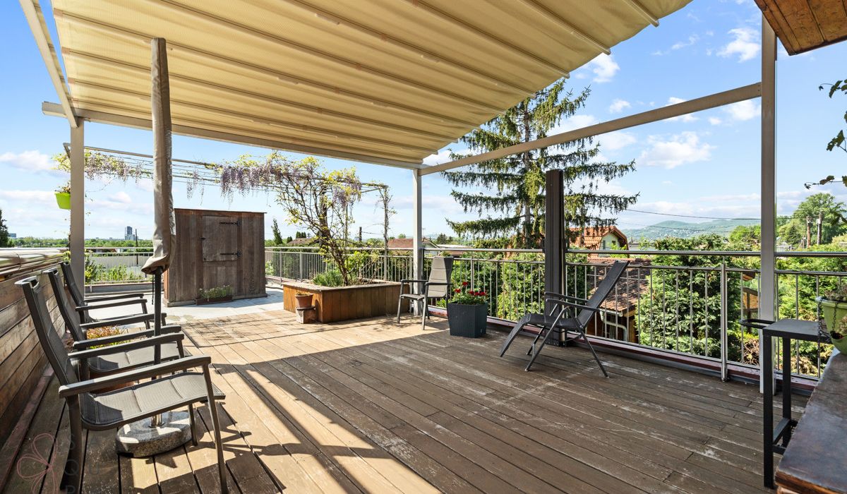 •Krovna terasa sa pogledom na zelenilo (Kahlenberg) – sa pergolom i glicinijama koje stvaraju prirodan hlad