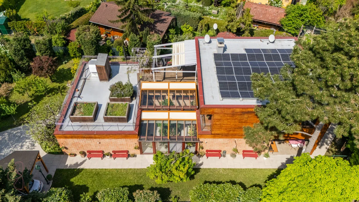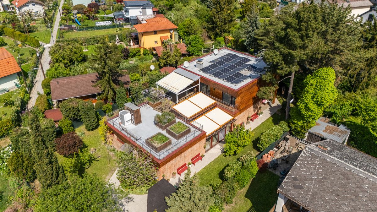 Dieses Haus wurde für die Zukunft gebaut: barrierefrei, energieeffizient und mit der Möglichkeit zur vollständigen Autarkie in der Energieversorgung. Die elektrische Versorgung der Wärmepumpe wird zum Großteil durch die Photovoltaikanlage gedeckt – dadurch sind die Betriebskosten für ein Haus dieser Größe außergewöhnlich niedrig.