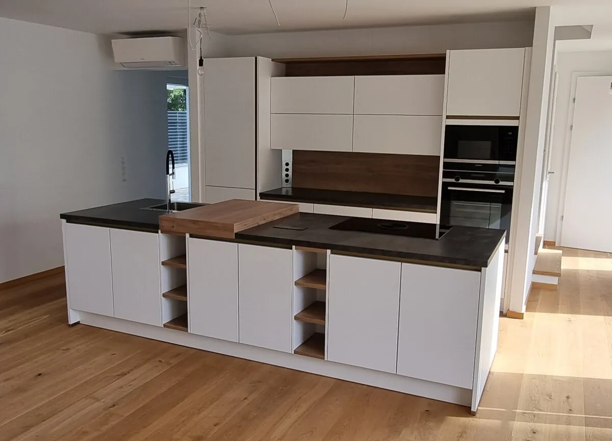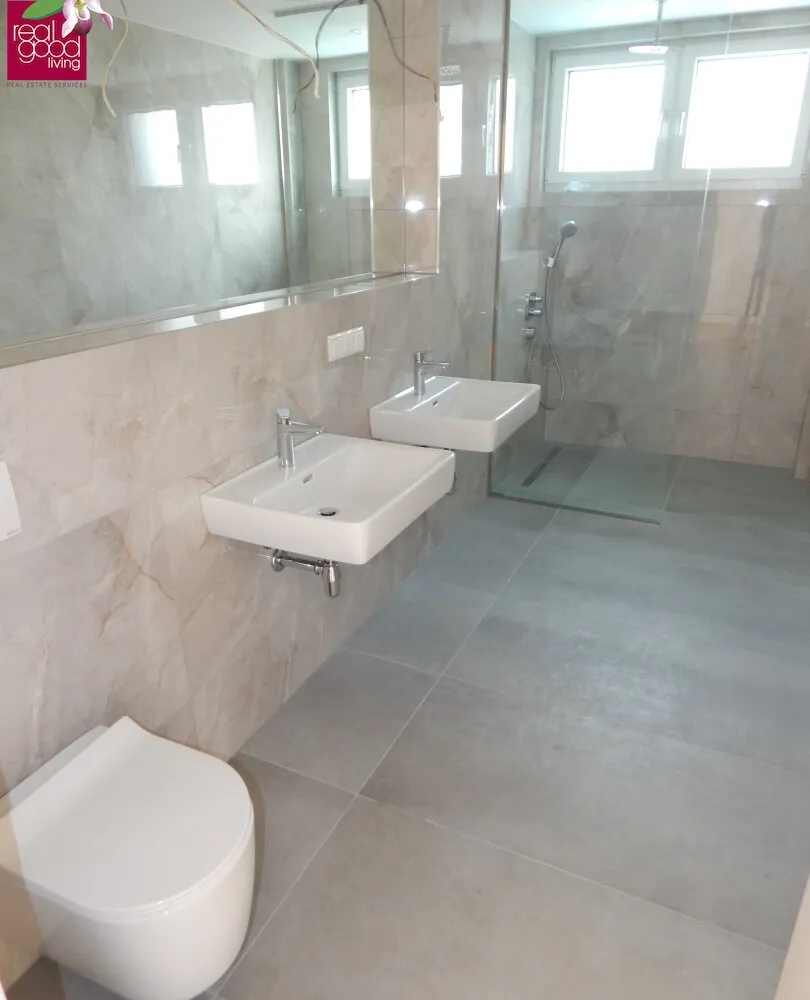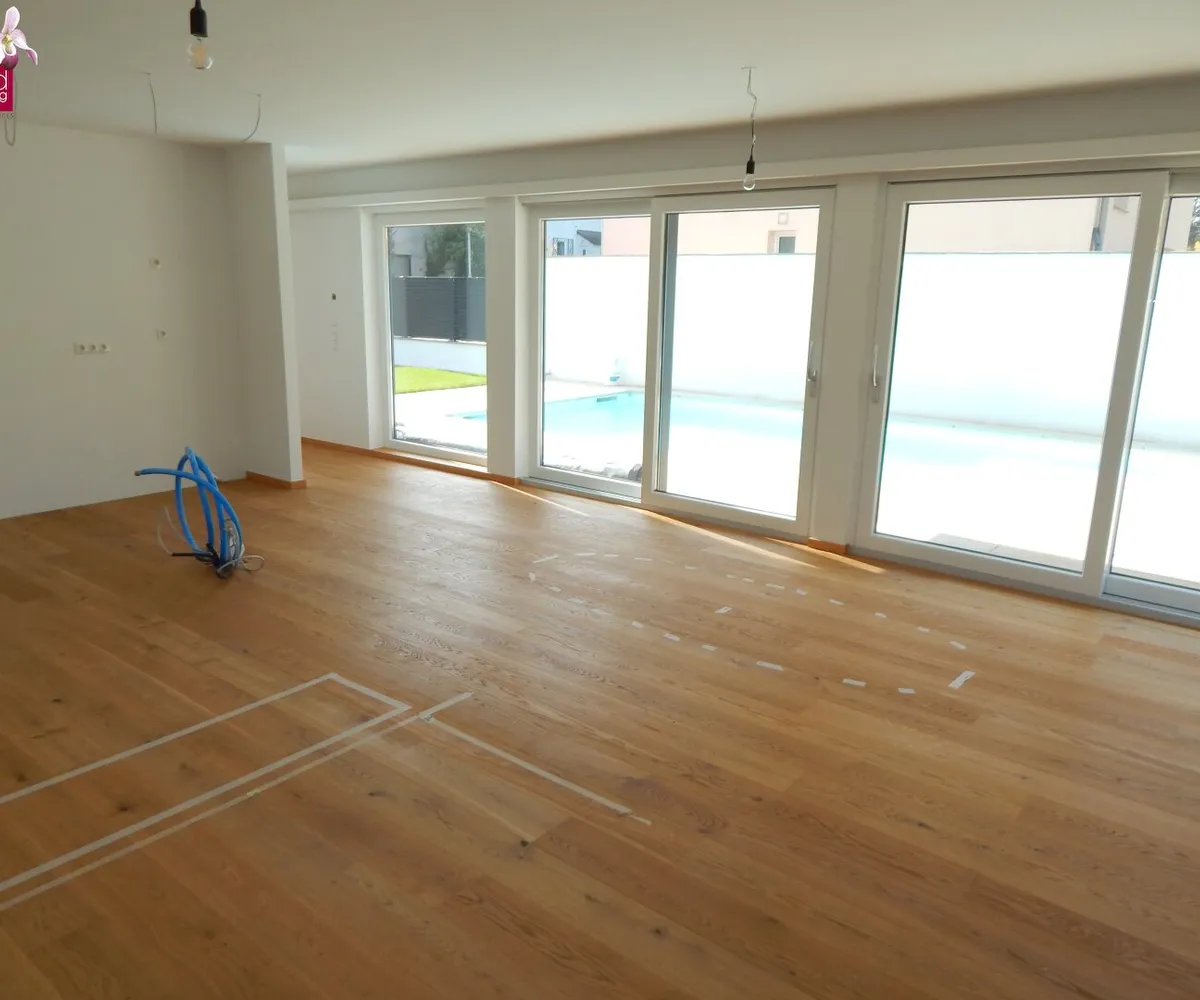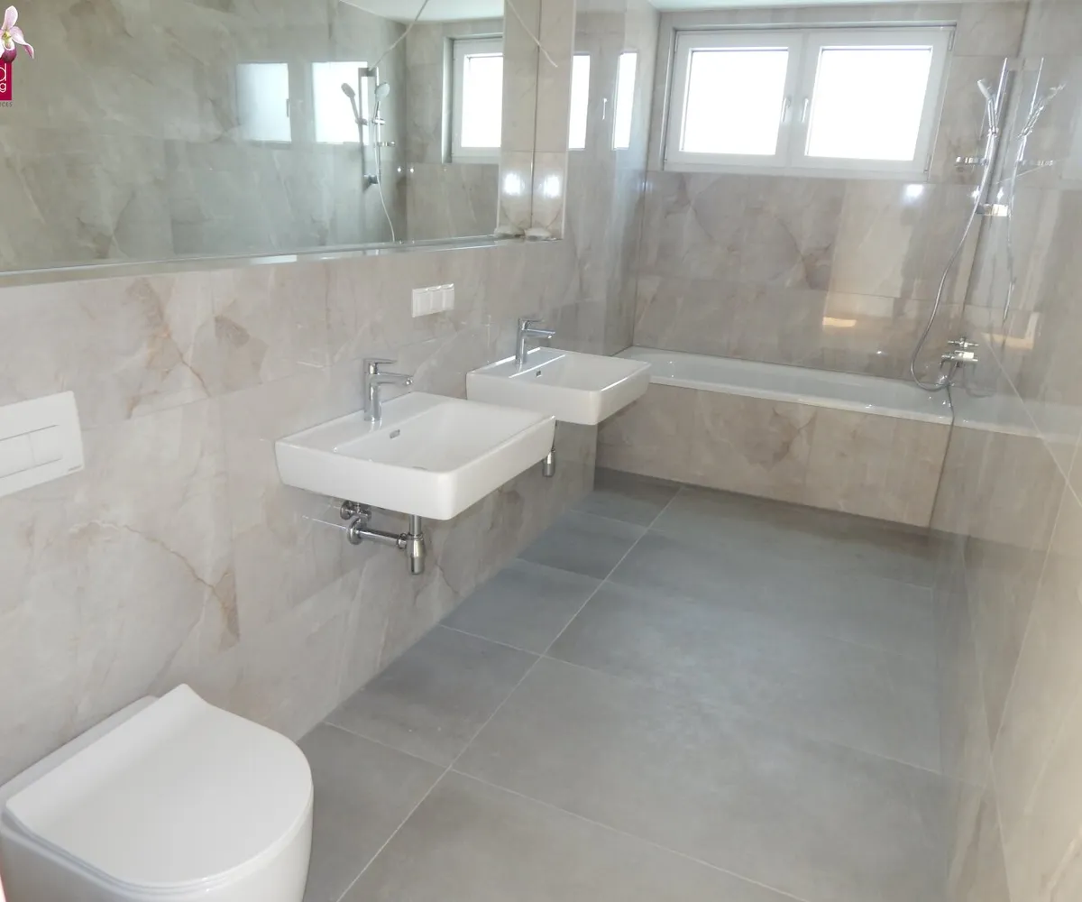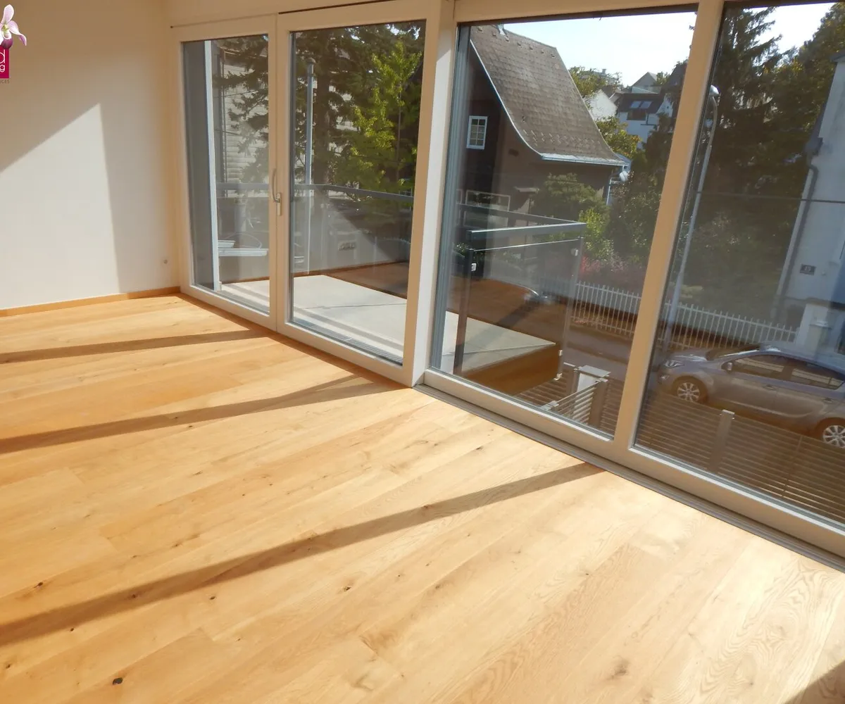 Fliesen in Nassräumen, Echtholzparkett in Wohn- & Schlafbereichen