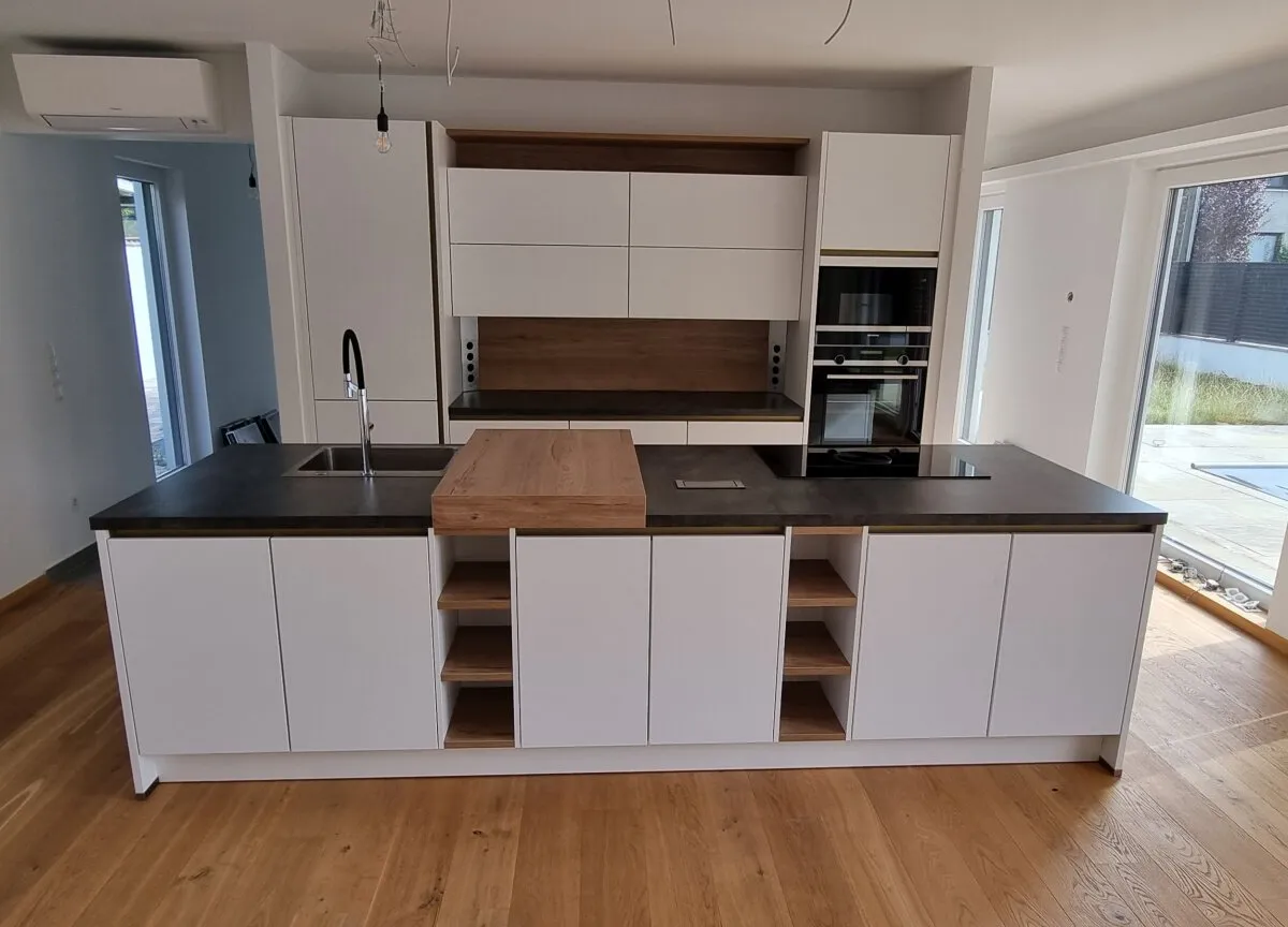 Großzügiger Wohn-/Essbereich mit offener Küche und direktem Gartenzugang