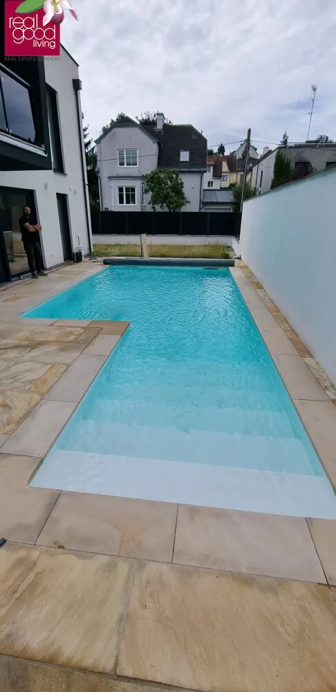 Das Haus überzeugt mit einer durchdachten Raumaufteilung auf drei Wohnebenen plus Vollkeller, hochwertiger Ausstattung und einem traumhaften Garten mit Pool.