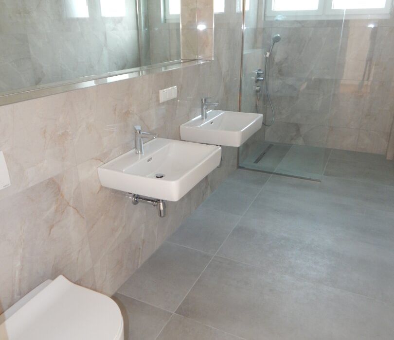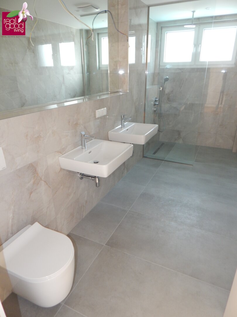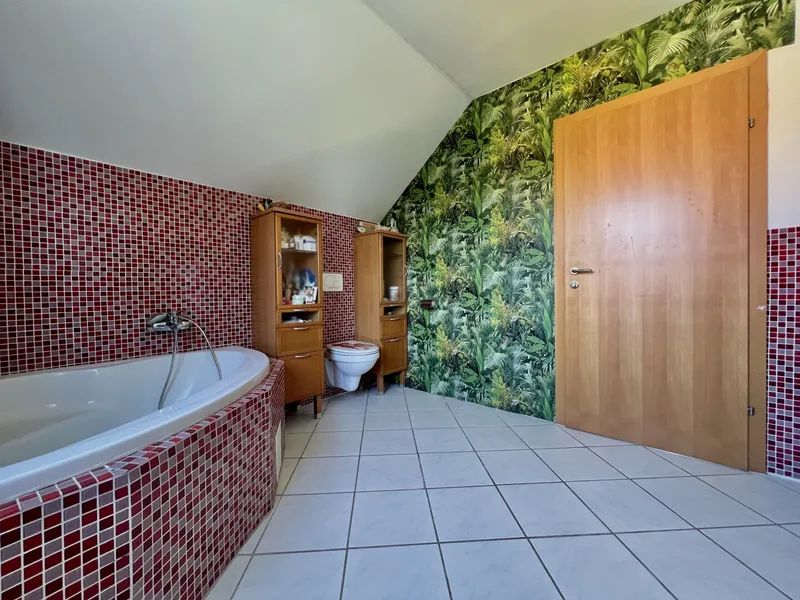 großes Zimmer mit Zugang zu den Terrassen, Bad mit Wanne-Dusche WC, Gang mit Zugang Terrasse