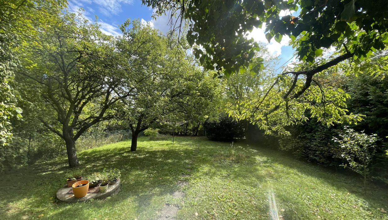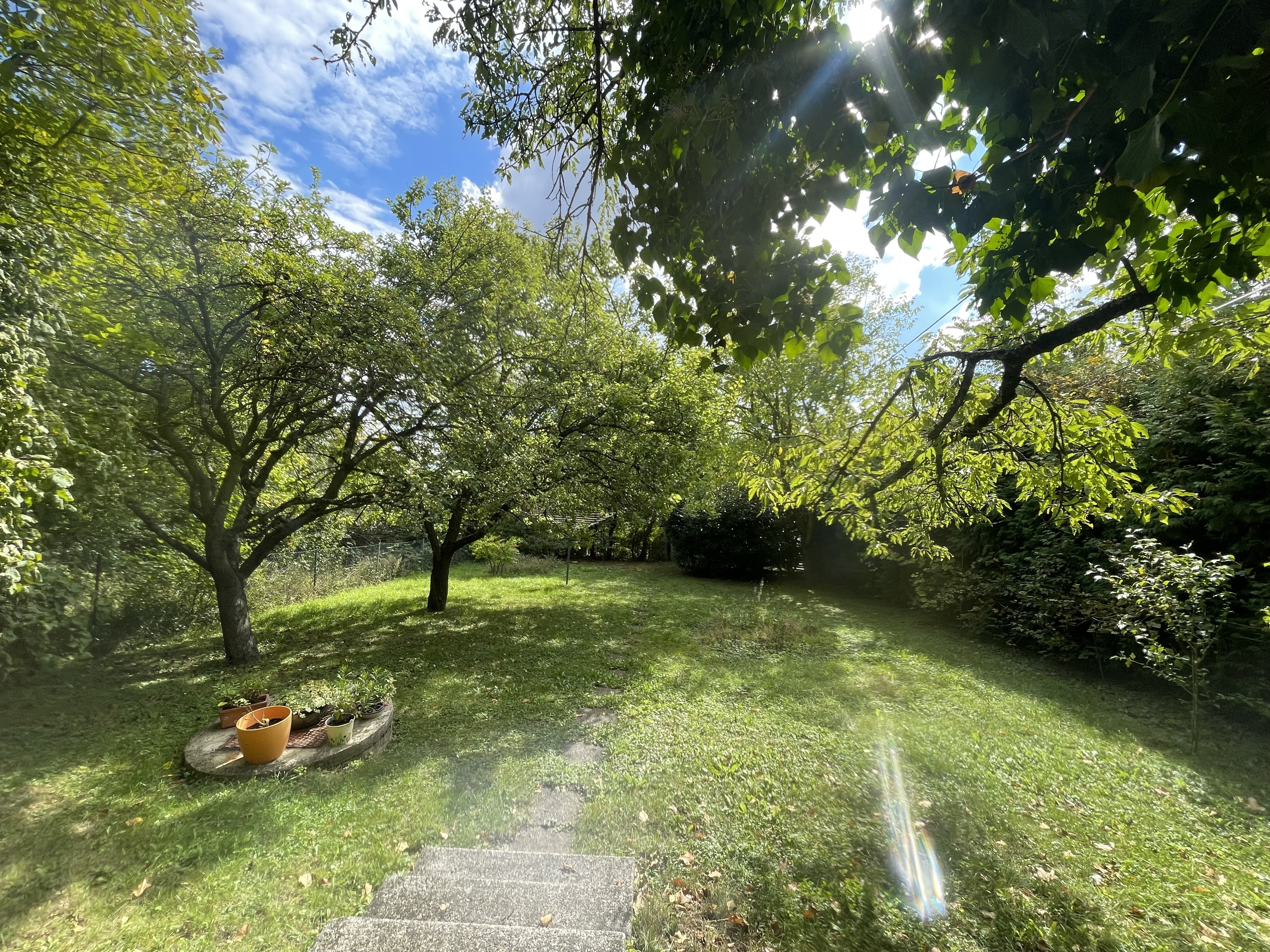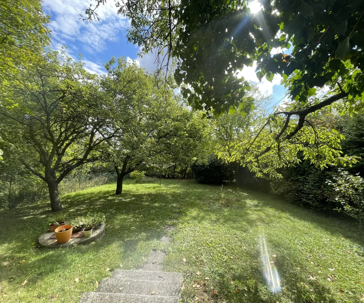 Der großzügige Garten mit altem Baumbestand umgibt das Haus von beiden Seiten und schafft ein außergewöhnlich ruhiges, naturnahes Ambiente – ideal zum Entspannen, Gärtnern oder als Rückzugsort vom städtischen Alltag. Diese Liegenschaft ist eine einmalige Gelegenheit, sich eine grüne Oase in Stadtnähe zu sichern.