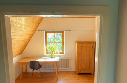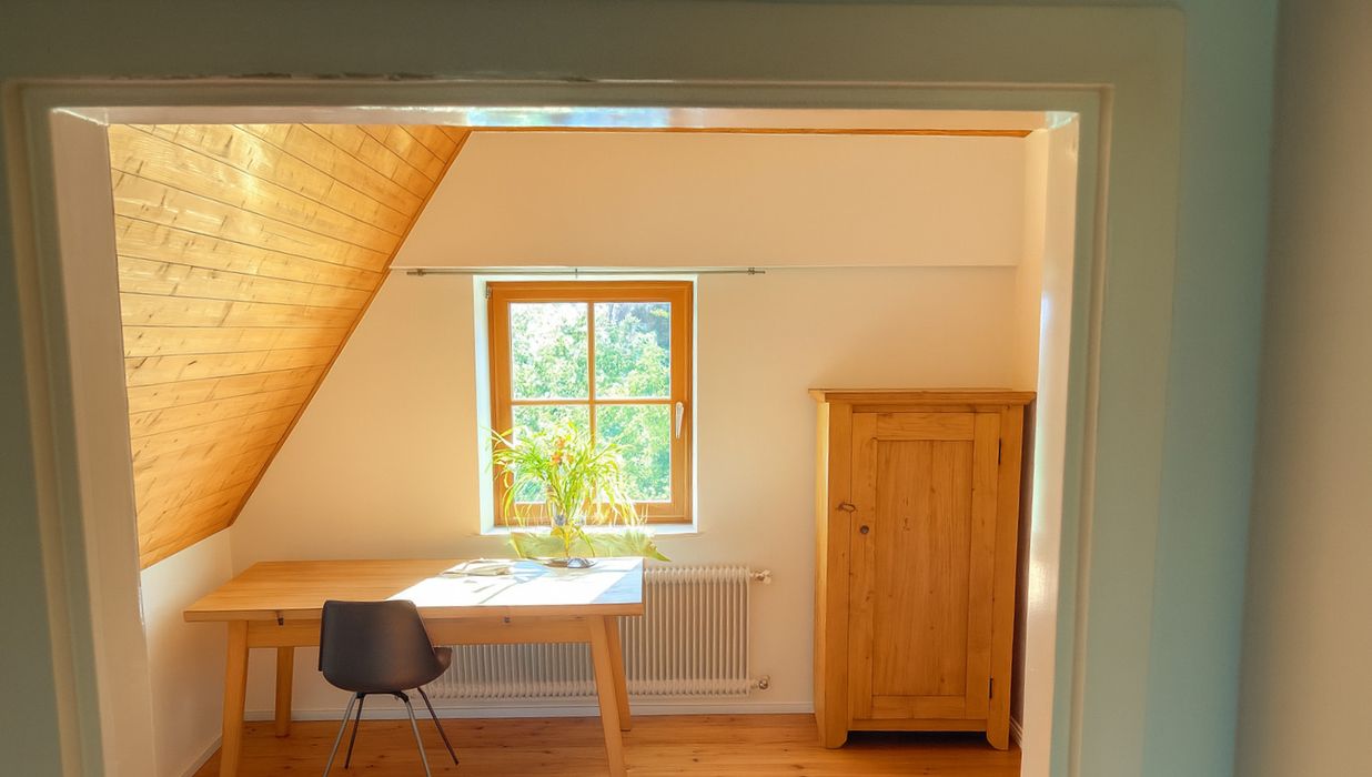 Das in massiver Bauweise errichtete Haus bietet auf zwei Ebenen eine gemütliche Wohnatmosphäre. Im Erdgeschoss befindet sich ein einladender Wohnraum mit offenem Kamin, eine Küche, ein separates WC sowie ein Vorraum mit Treppenaufgang in das Obergeschoss. Dort erwarten Sie zwei Zimmer sowie eine Schlafnische bzw. ein Schrankraum. Der Keller verfügt über Lagerräume für Heizöl und Brennholz, eine Werkstatt sowie ein Badezimmer mit Wanne und Waschbecken.