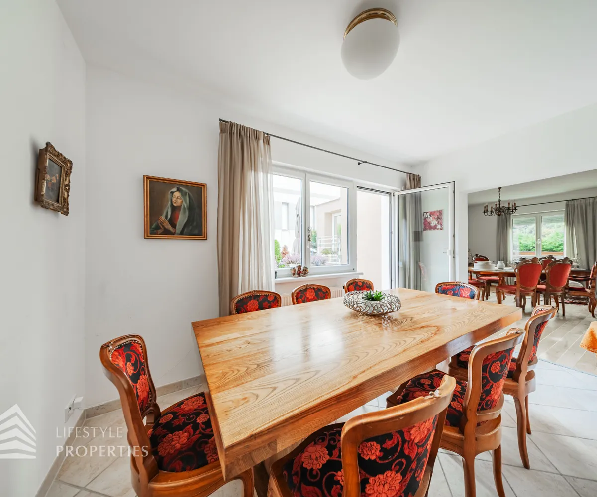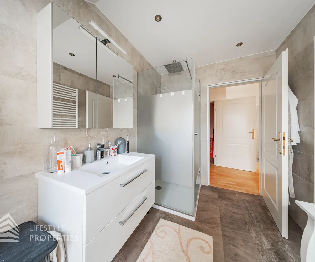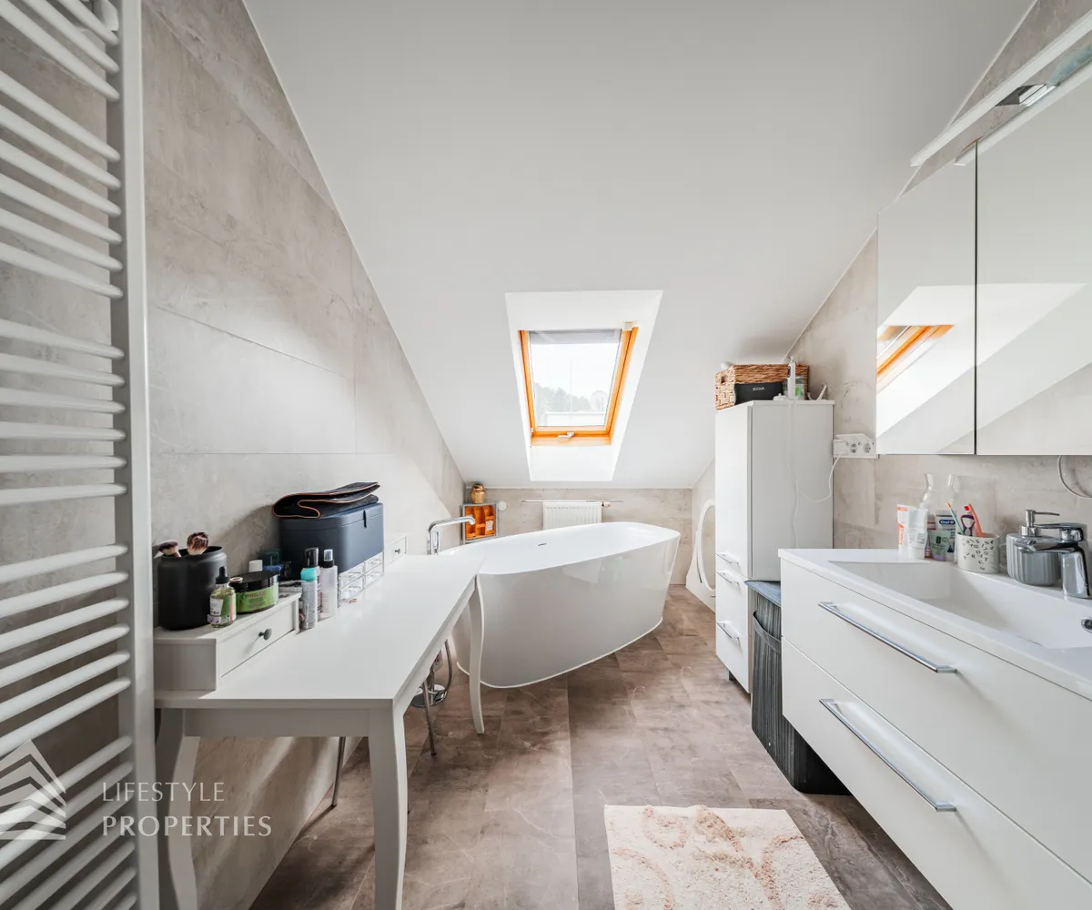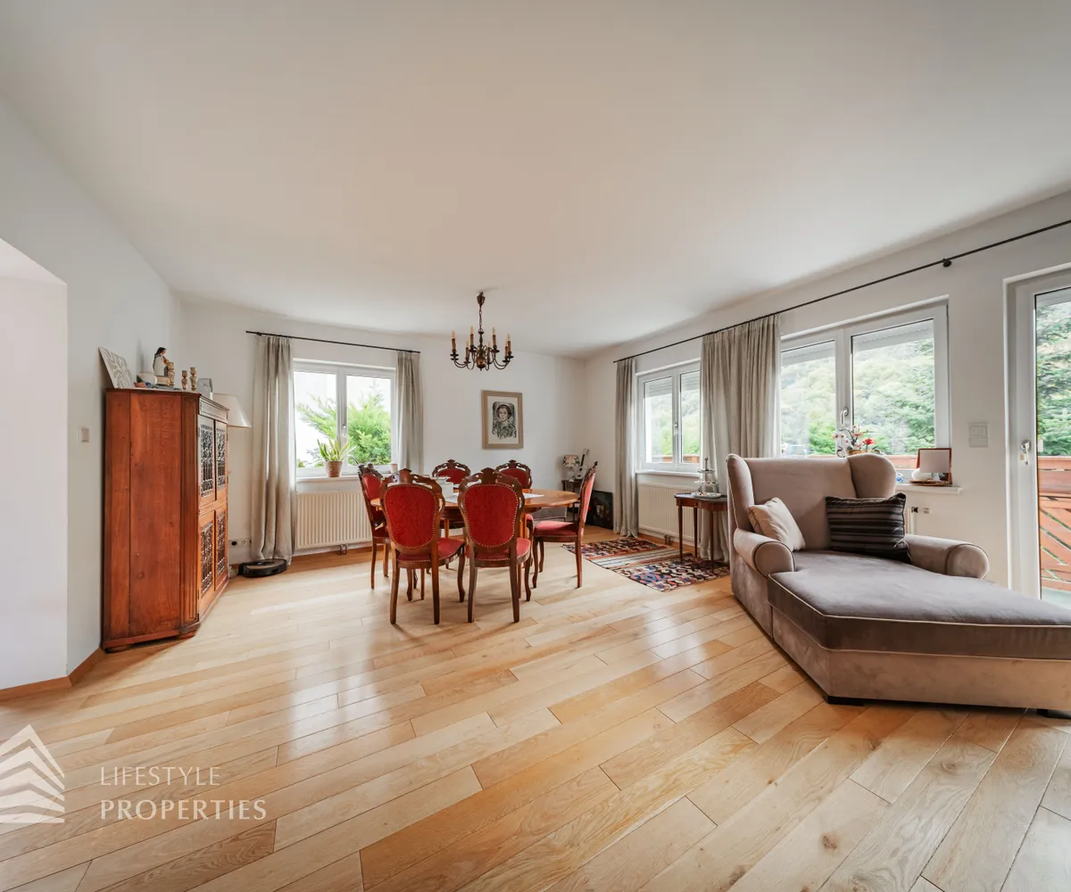 Die Villa mit einer Nutzfläche von ca. 348 m² vereint Luxus, Natur und Flexibilität auf einzigartige Weise. Eingebettet in ein ruhiges Grundstück von über ca. 1.098 m², bietet sie großzügige Räume, maßgefertigte Einbaumöbel, modernste Technik und absolute Privatsphäre, ein Zuhause, das höchsten Wohnkomfort und eleganten Lebensstil harmonisch verbindet. Das Haus unterteilt sich ein Kellergeschoss, ein Erdgeschoss und ein Dachgeschoss und bietet 7 Zimmer, 3 Bäder, 2 Küchen, eine Garage, einen Haustechnikraum, Kellerräume sowie mehrer Abstellräume. Technisch überzeugt die Villa durch eine Gasheizung kombiniert mit Fußbodenheizung und Radiatoren, einen 200-Liter-Warmwasserspeicher, hochwertige Internorm-Fenster, ergänzt durch Velux-Dachfenster, elektrische Außenrollläden an den Terrassentüren und manuelle Rollos an den übrigen Fenstern. Eine Alarmanlage schützt das gesamte Haus. Maßgefertigte Einbaumöbel nach Wunsch sind im Kaufpreis enthalten; ein Teil des weiteren hochwertigen Inventars kann ebenfalls übernommen werden. Die hochwertigen Böden aus Parkett, Fliesen und Naturstein verleihen dem Haus zeitlose Eleganz.