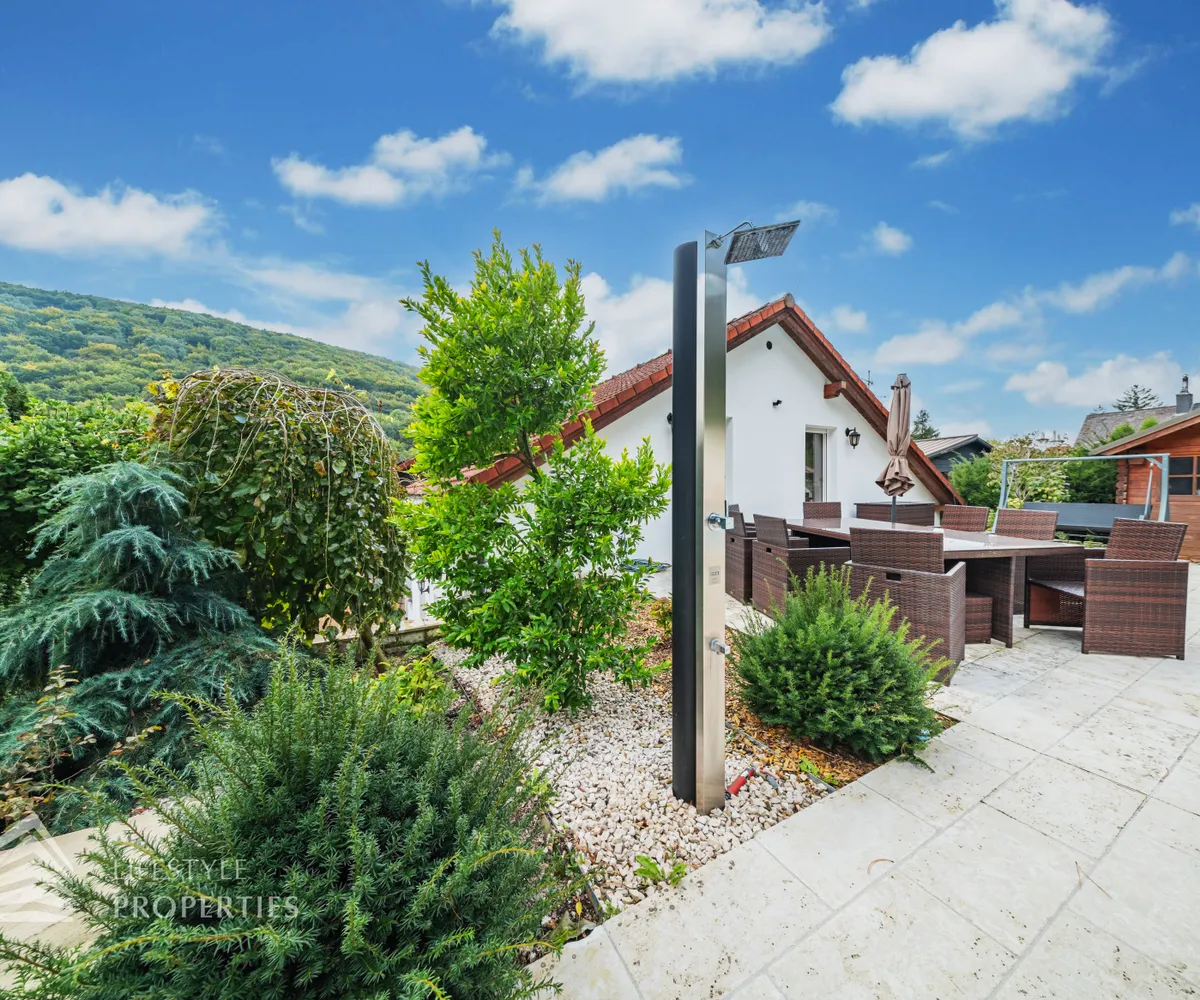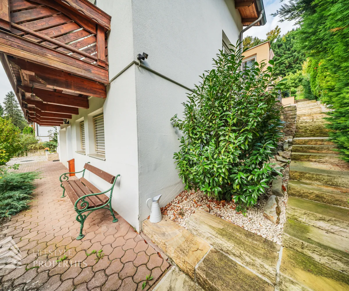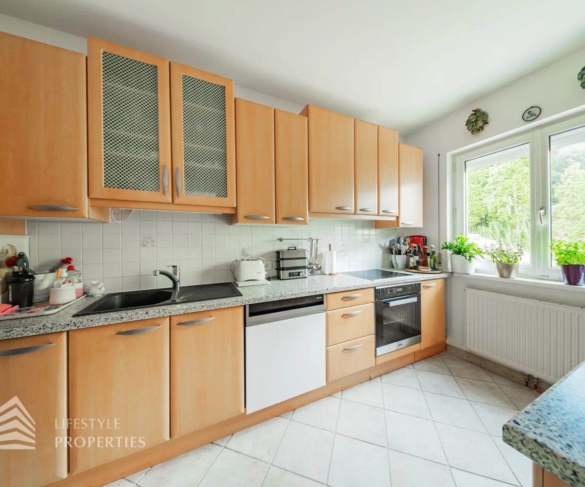 Das Anwesen bietet mehrere Terrassen und einen Balkon, verteilt auf Erd- und Obergeschoss, sowie insgesamt ca. 4 Stellplätze in der Garage. Die ruhige Lage am Waldrand des 14. Bezirks von Penzing garantiert absolute Privatsphäre und gleichzeitig kurze Wege in die Stadt. Einkaufsmöglichkeiten, Schulen, Kindergärten und Restaurants sind in wenigen Minuten erreichbar, während die Nähe zum Wienerwald vielfältige Freizeitmöglichkeiten eröffnet.
